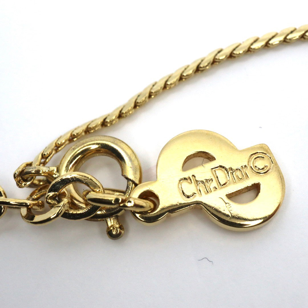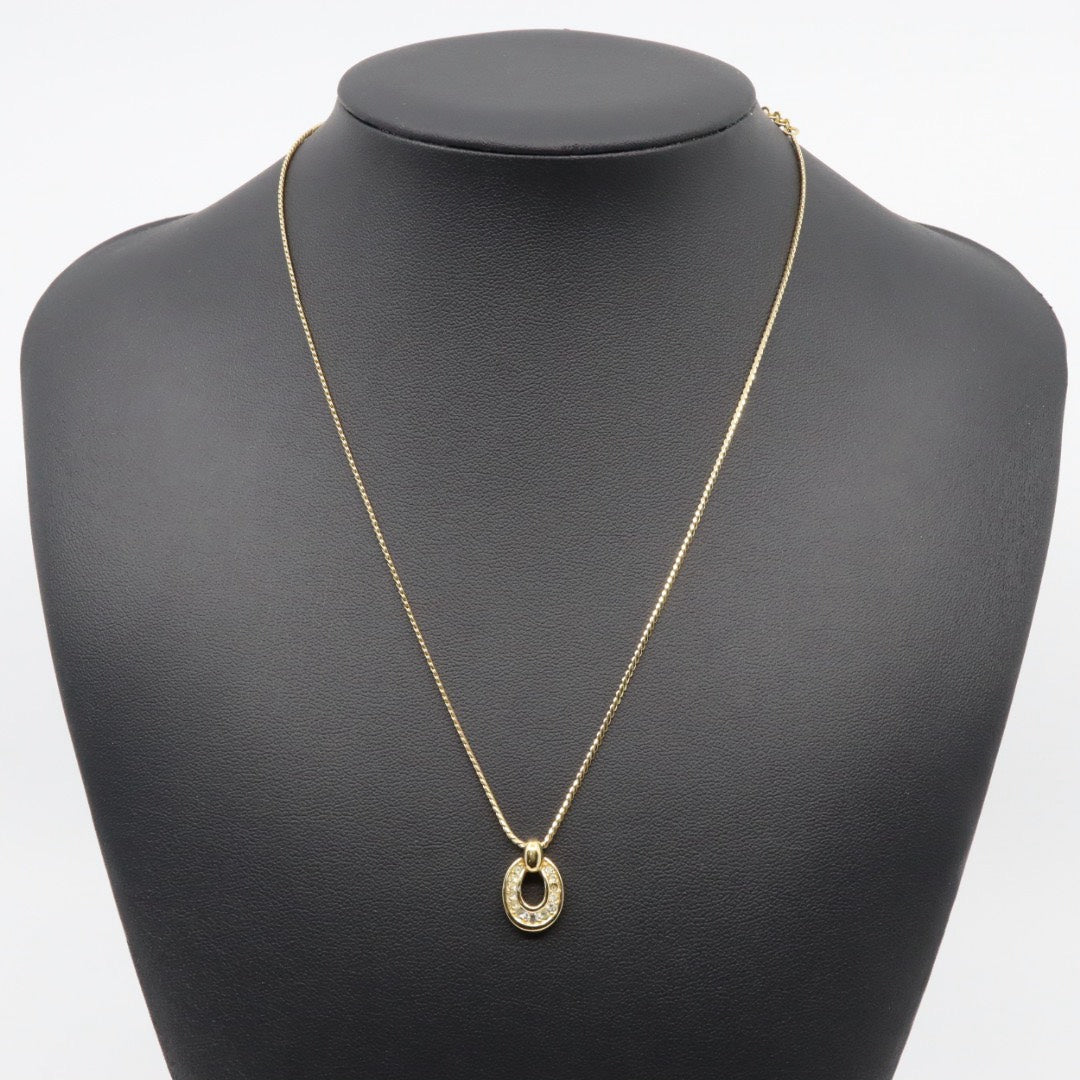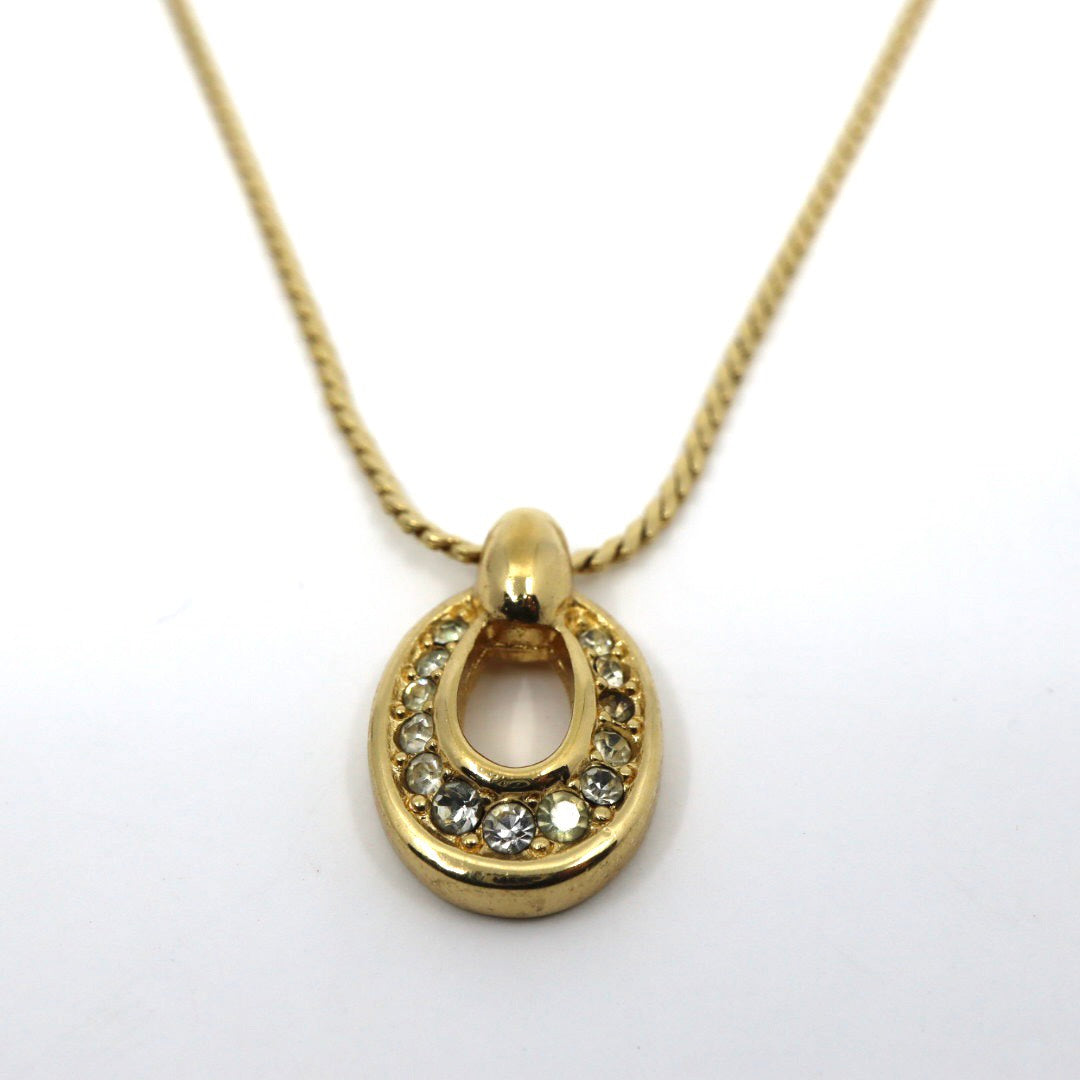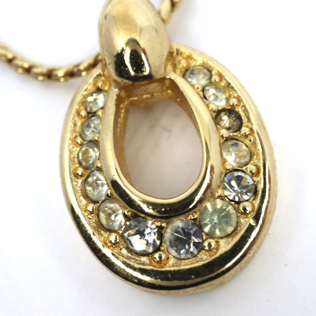 【美品】Christian Dior クリスチャンディオール ラインストーン ホースシュー サークル ネックレス ゴールドカラー GP ペンダント ヴィンテージジュエリー アクセサリー レディース I4