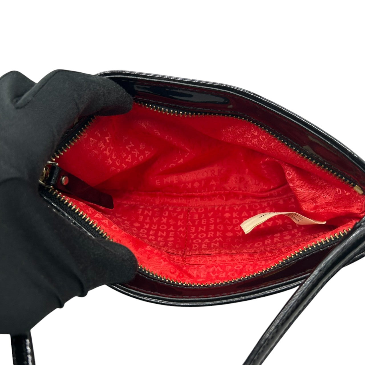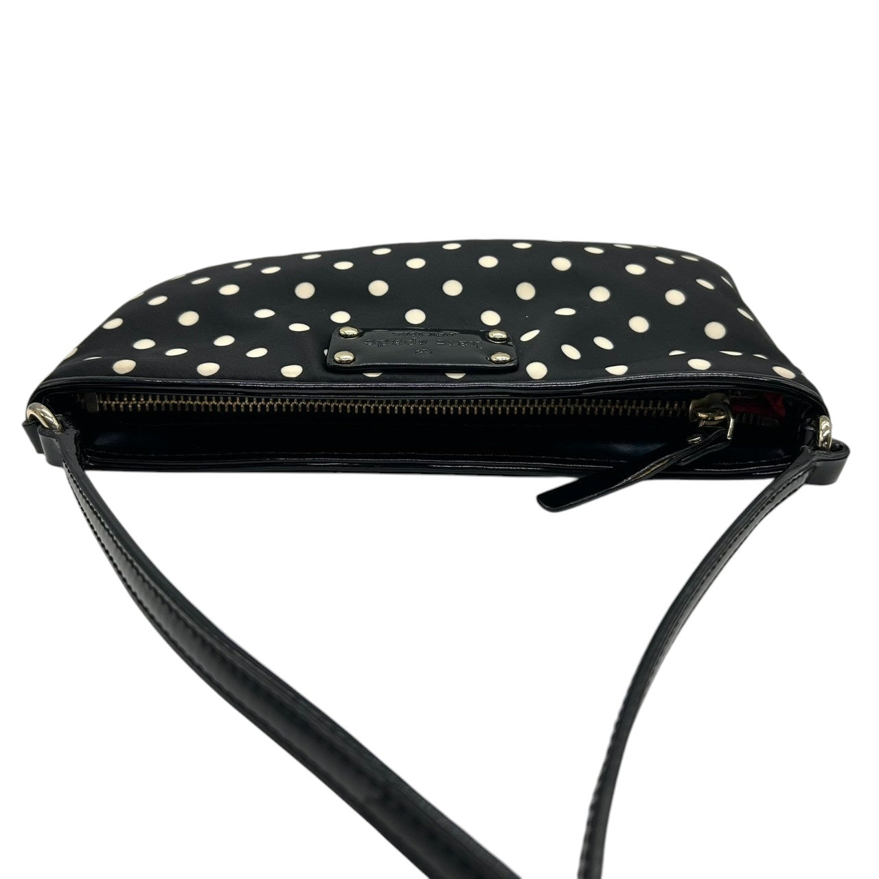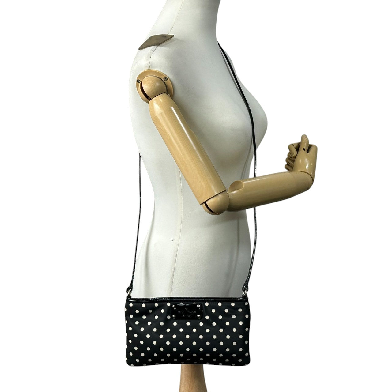 【美品】ケイトスペード ドット柄 ショルダーバッグ ナイロン パテントレザー ブラック ホワイト レディース kate spade new york ポシェット 斜め掛け可 ロゴプレート ミニバッグ フェミニンデザイン U6