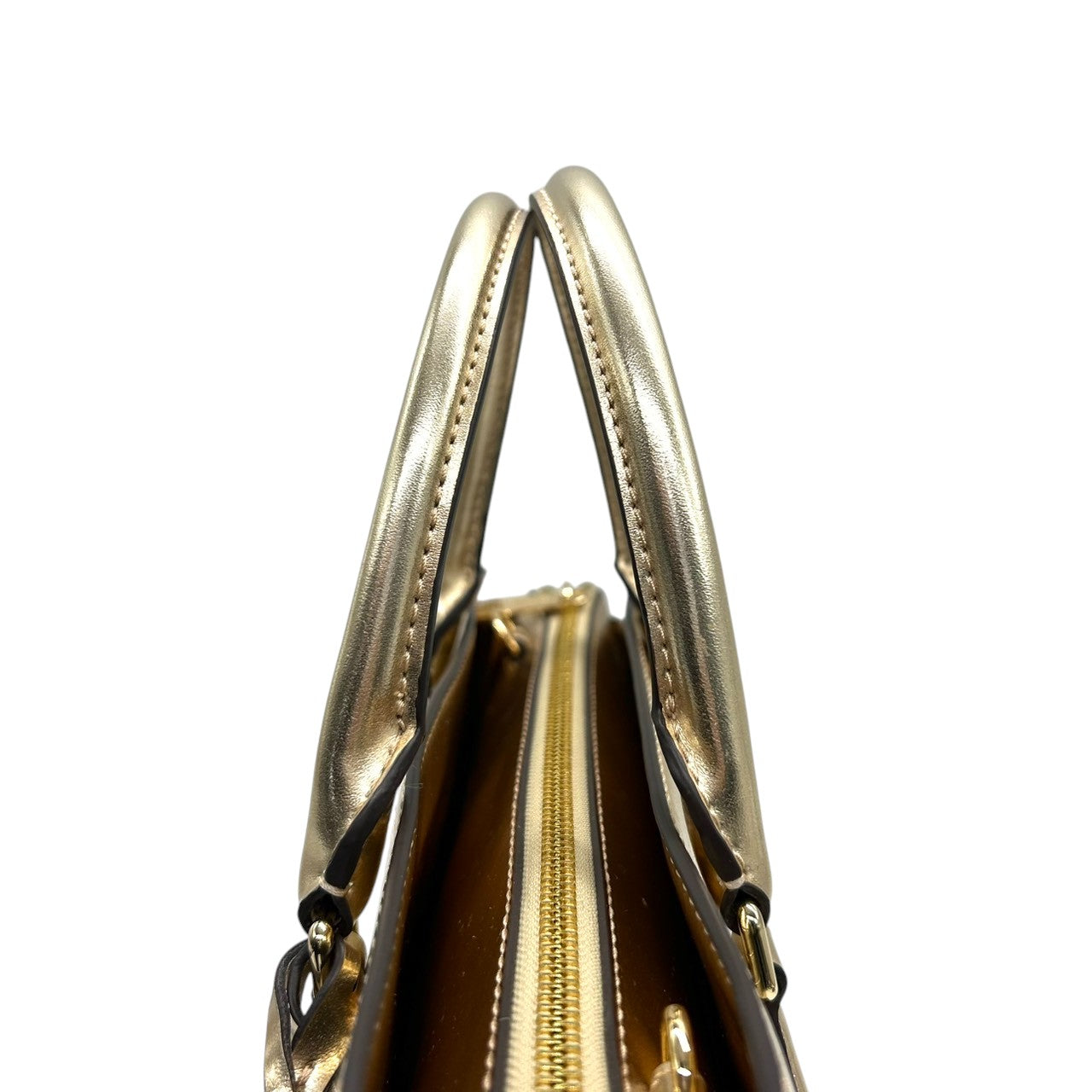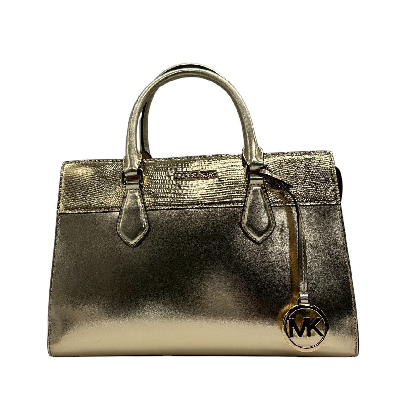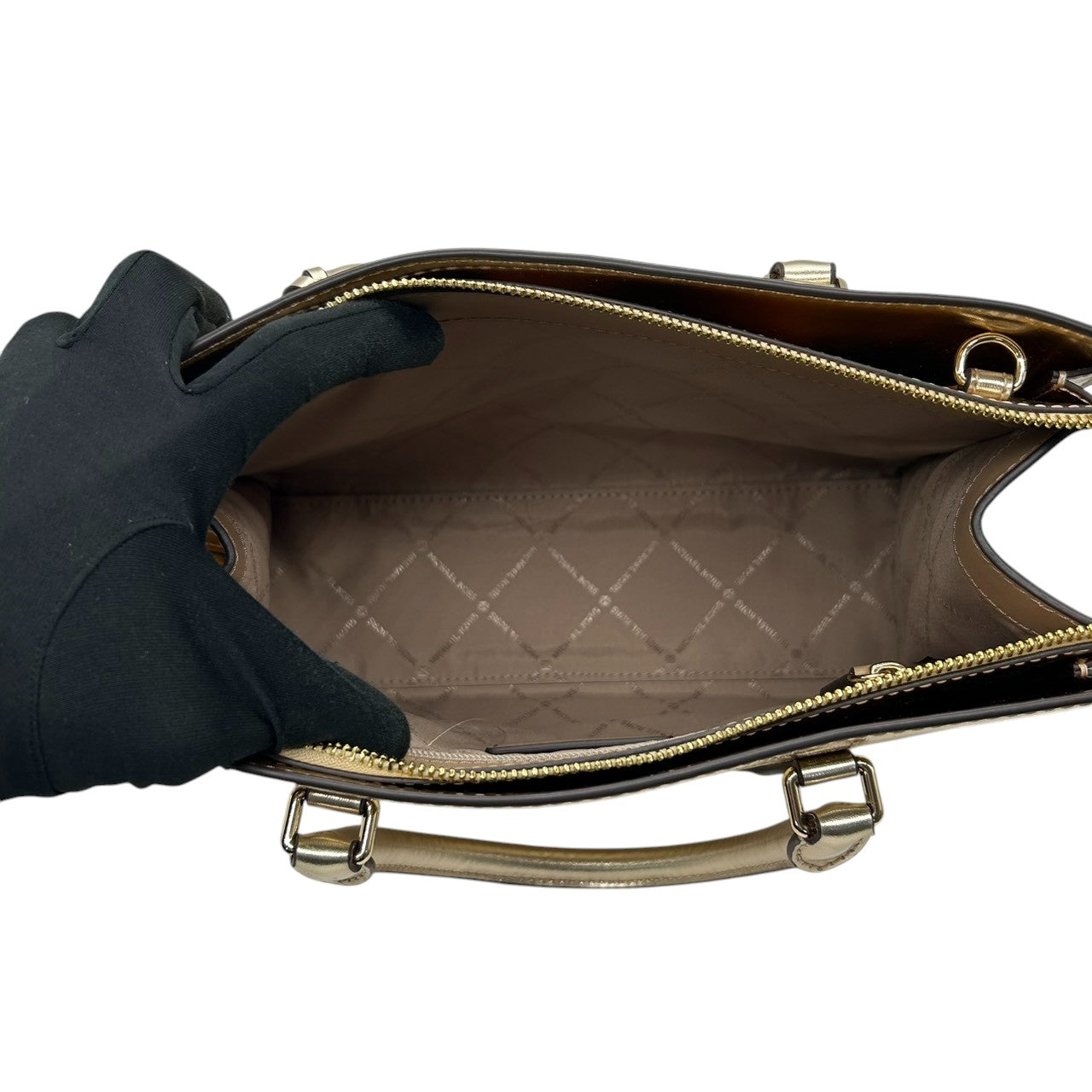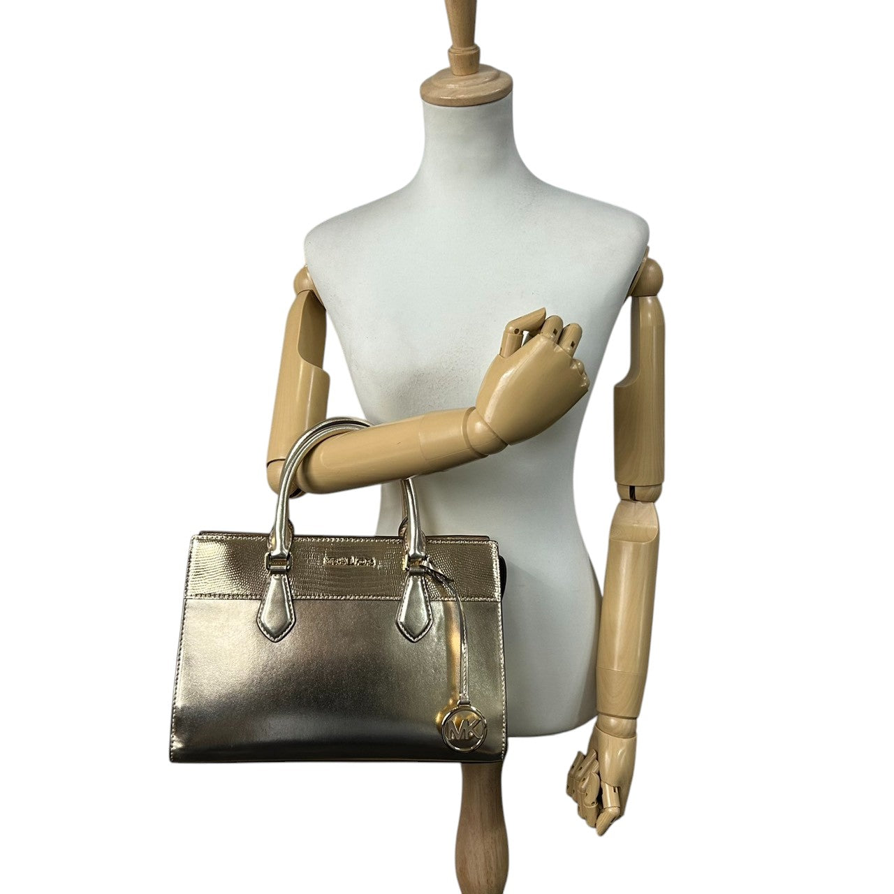 【美品】マイケルコース 2WAY ハンドバッグ ショルダーバッグ ゴールド PVC 型押しレザー エレガント MKロゴチャーム レディース 斜め掛け可 自立可 MICHAEL KORS 通勤通学 パーティバッグ ゴージャス サッチェル s34