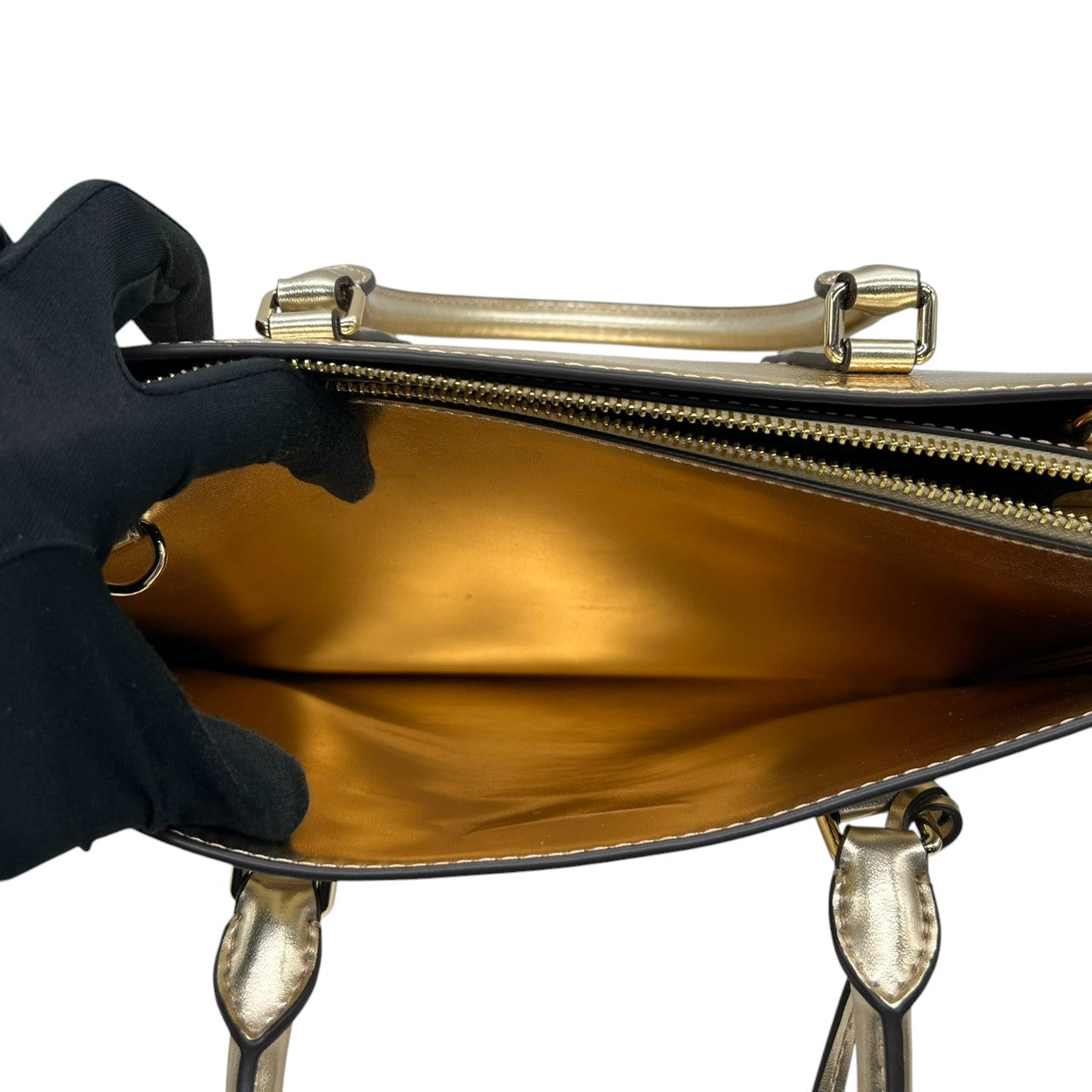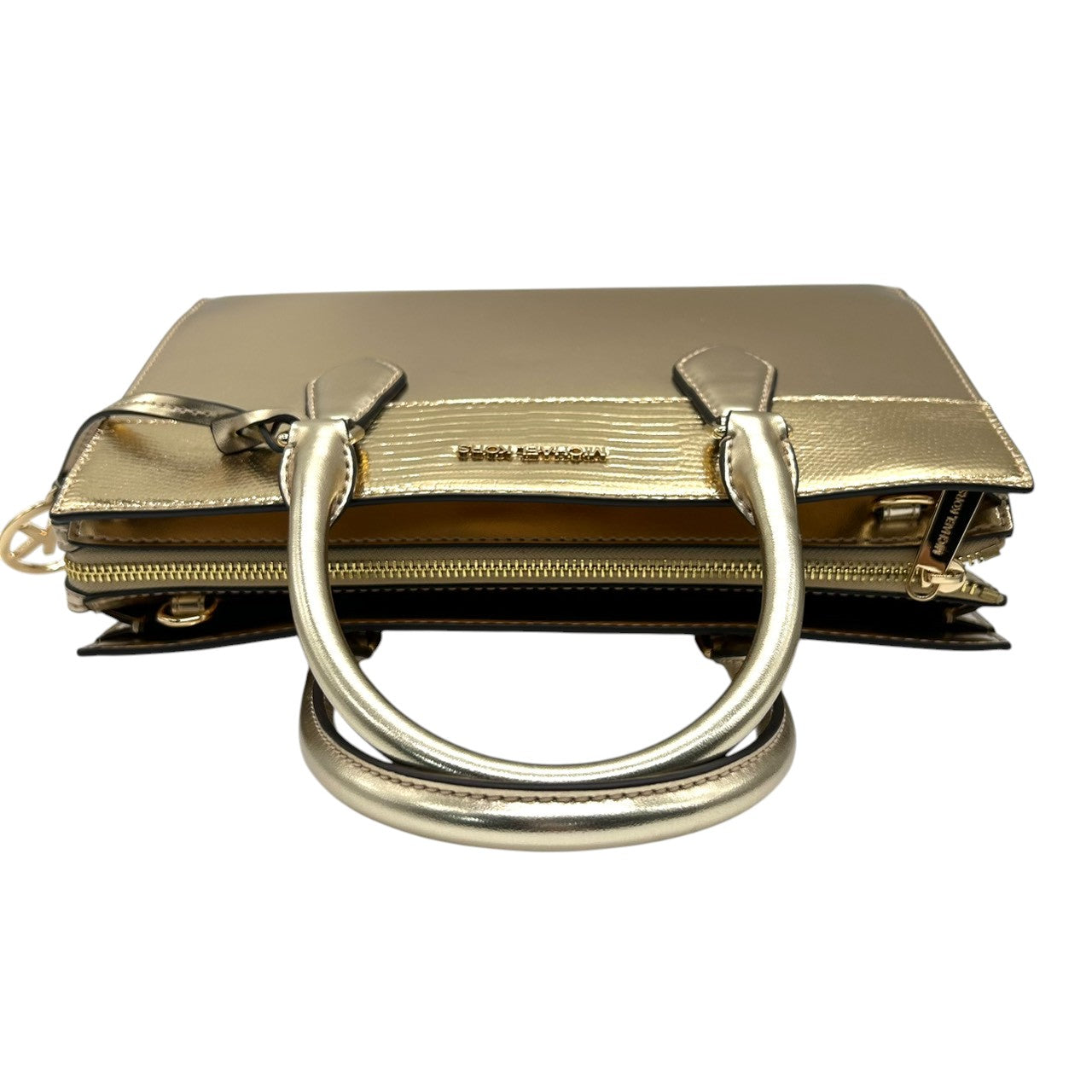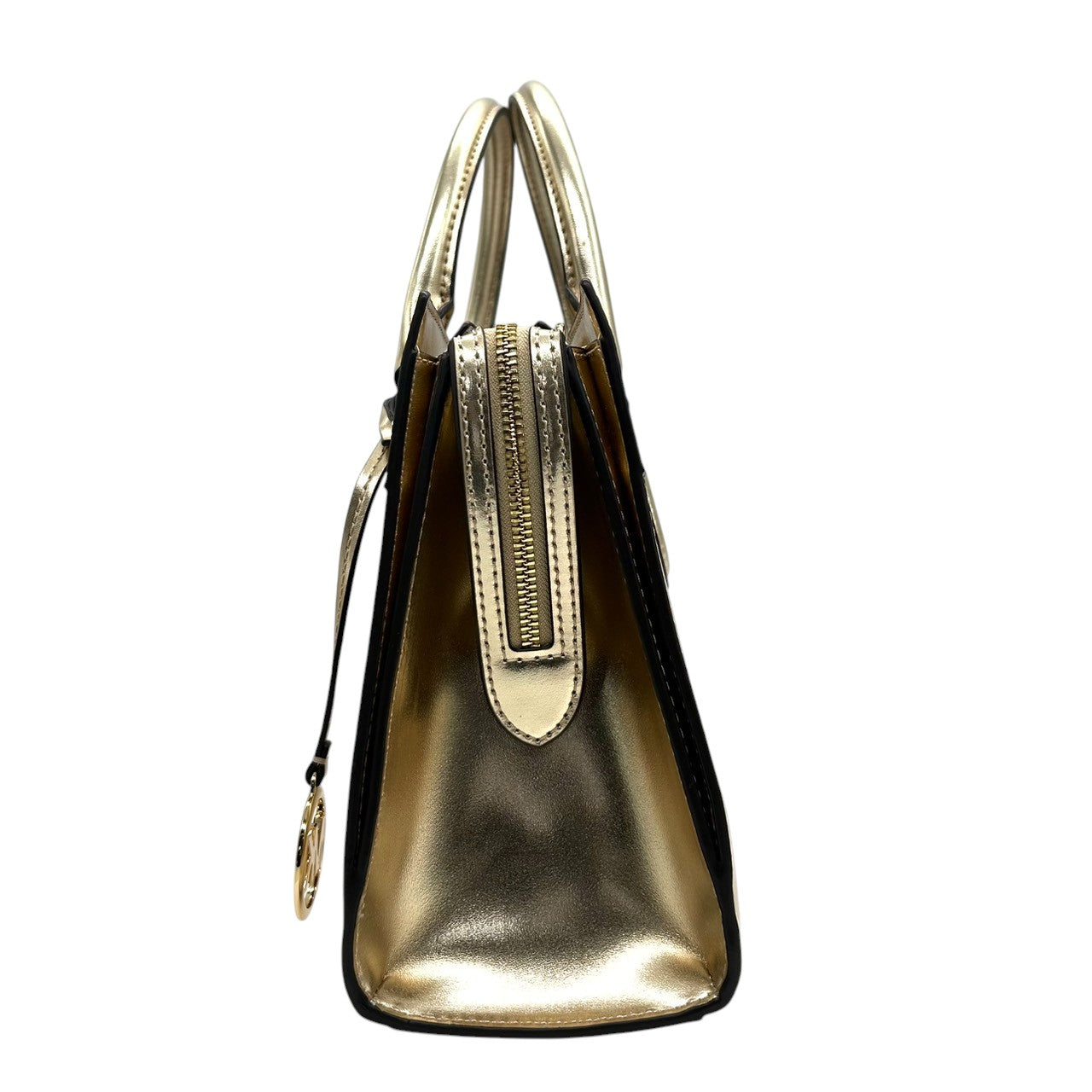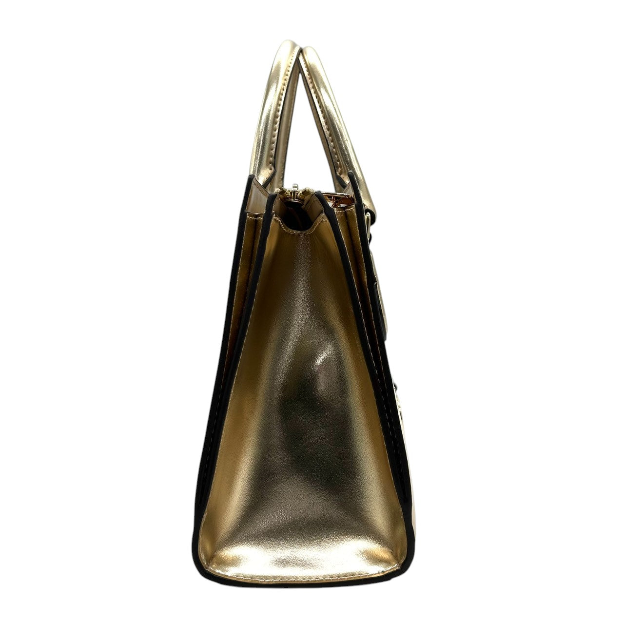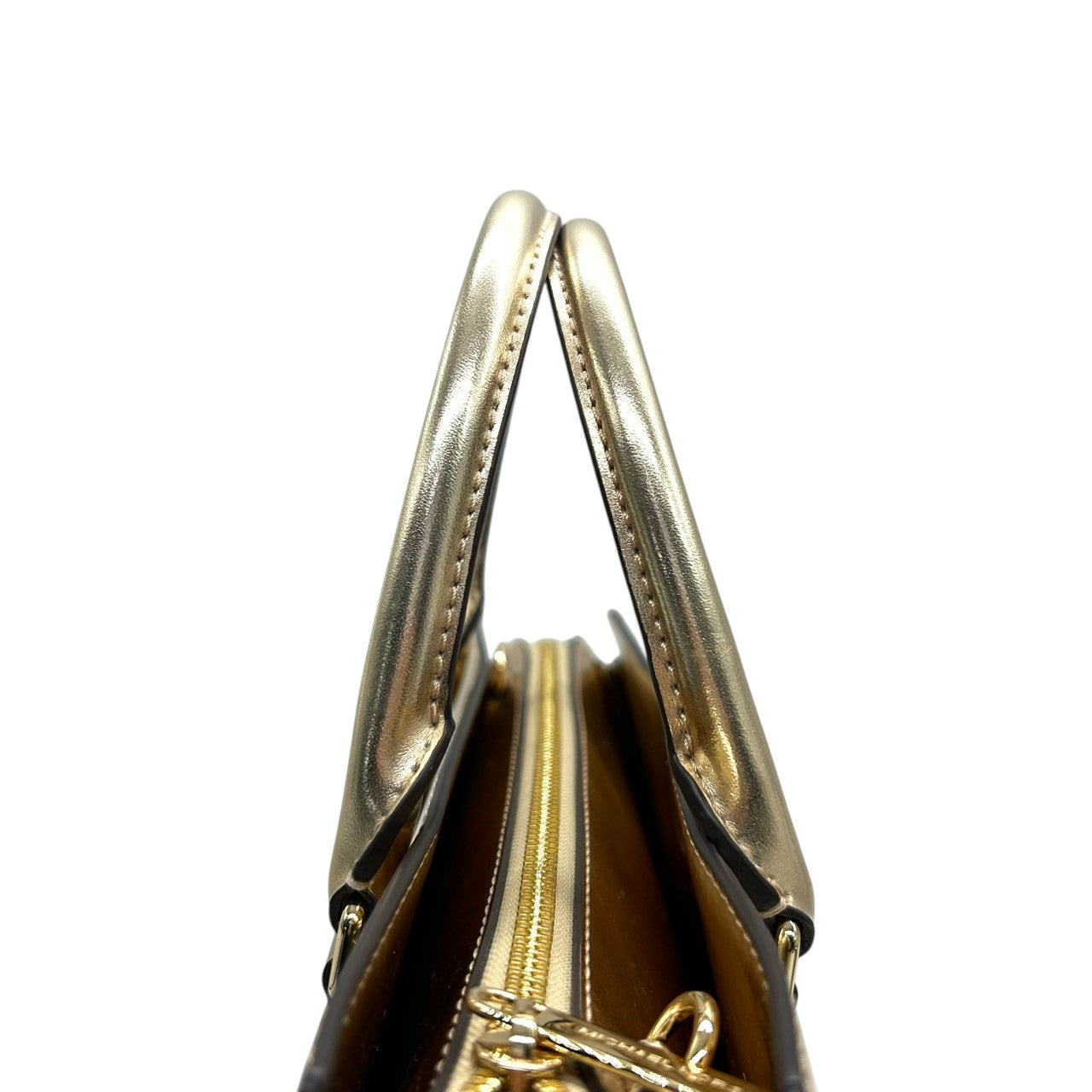 【美品】マイケルコース 2WAY ハンドバッグ ショルダーバッグ ゴールド PVC 型押しレザー エレガント MKロゴチャーム レディース 斜め掛け可 自立可 MICHAEL KORS 通勤通学 パーティバッグ ゴージャス サッチェル s34