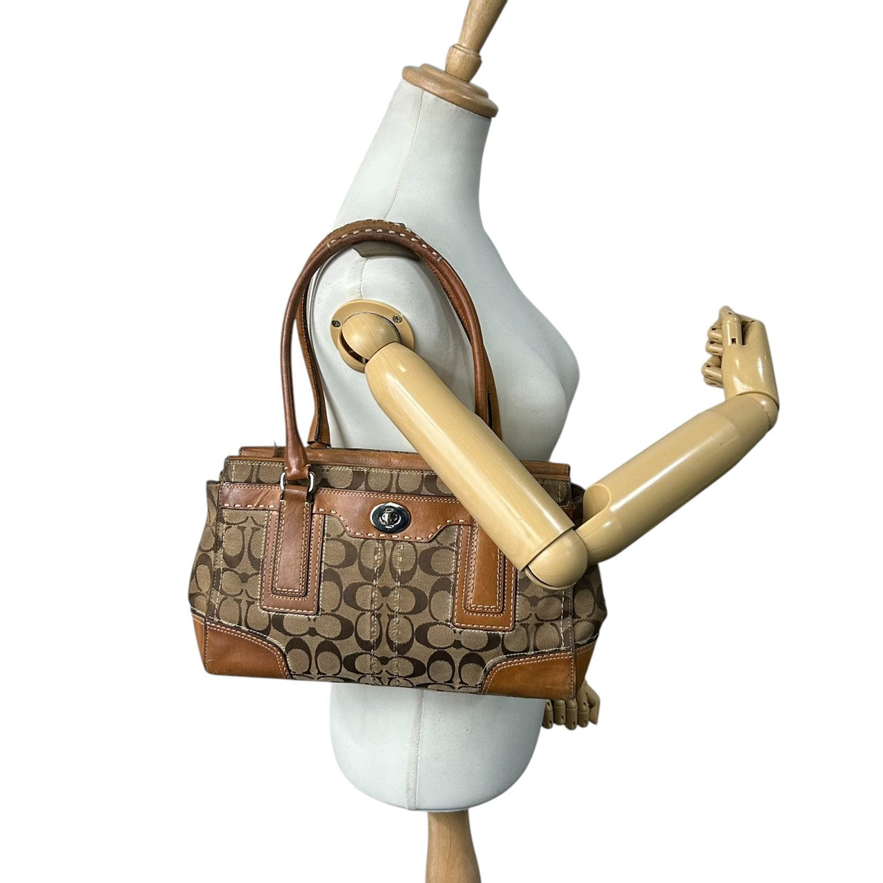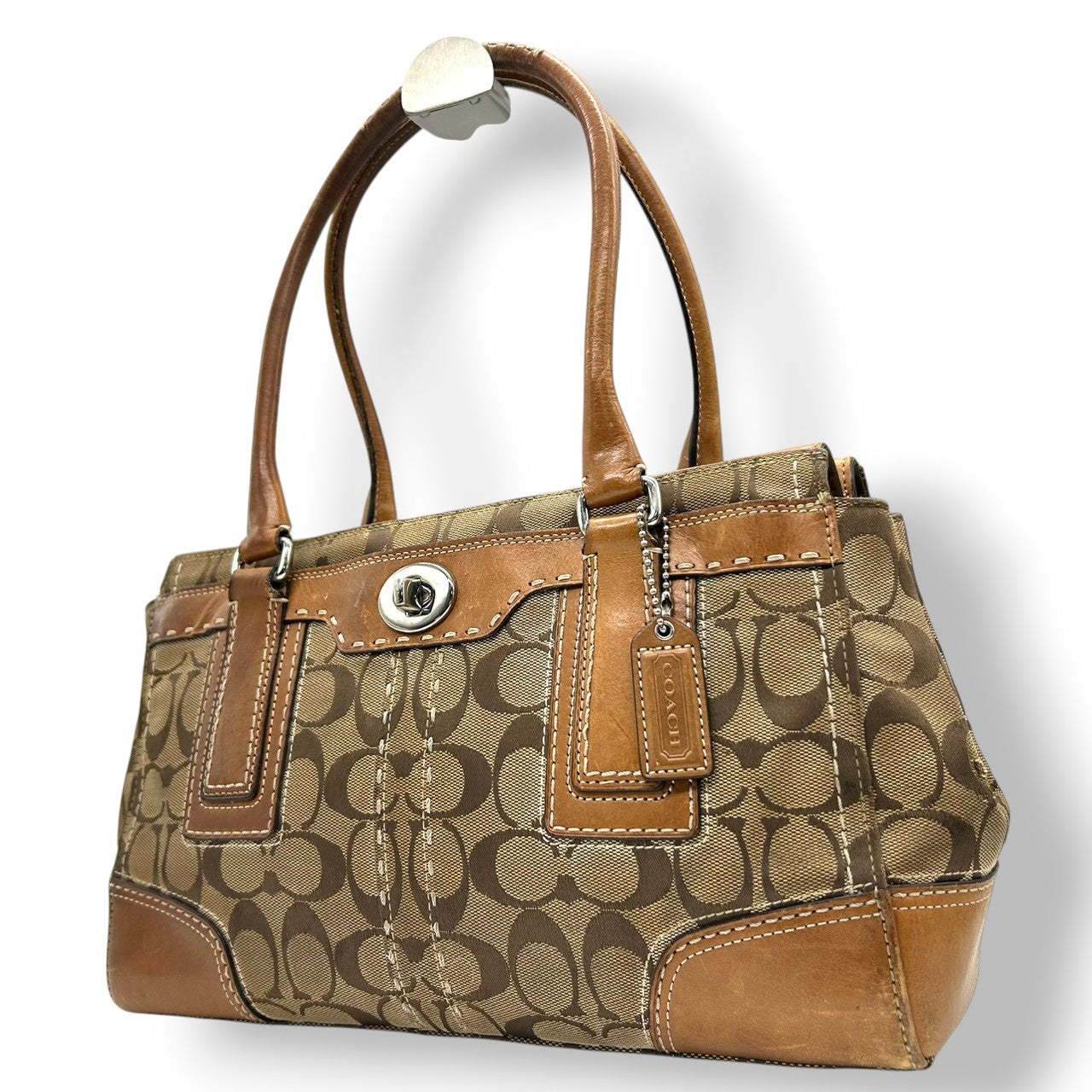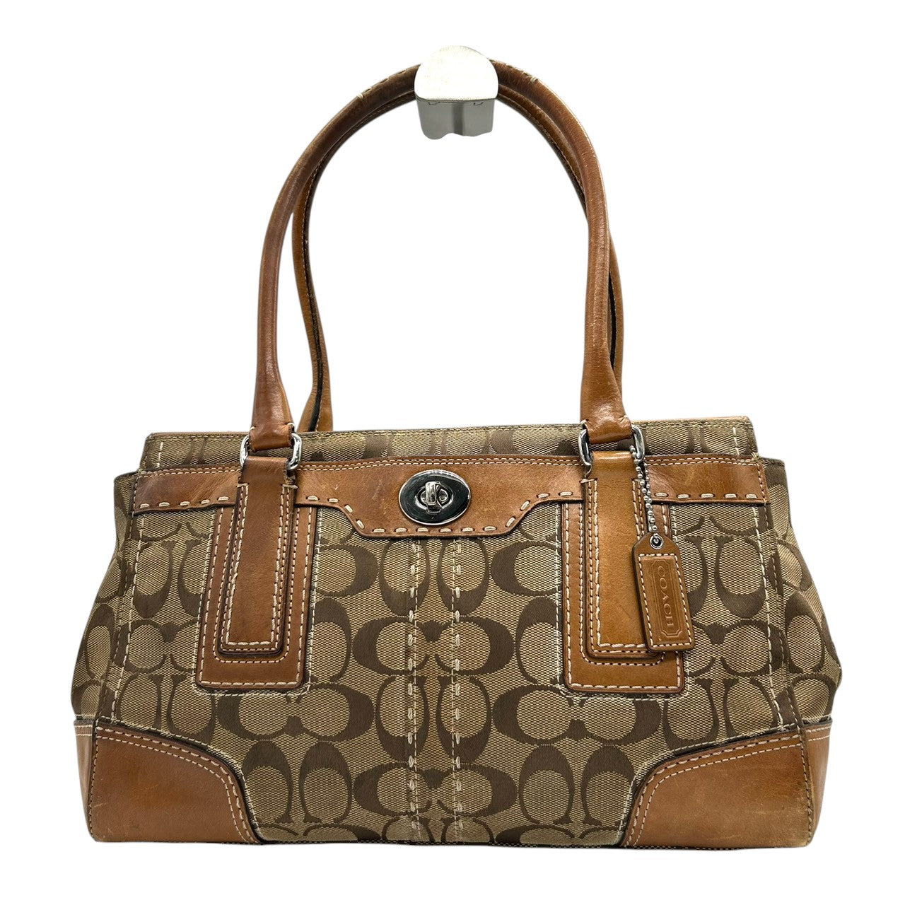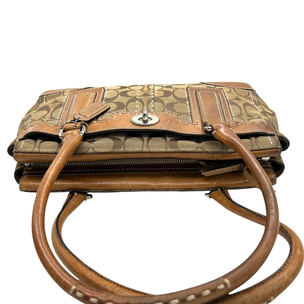 コーチ ハンプトンズ シグネチャー キャリーオール トートバッグ ハンドバッグ K0771-11589 キャンバス レザー ブラウン A4収納可 ターンロック レディース 通勤通学 ビジネス ワンショルダー 自立可 クラシック 定番人気モデル s39