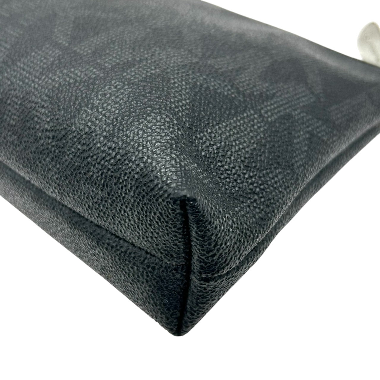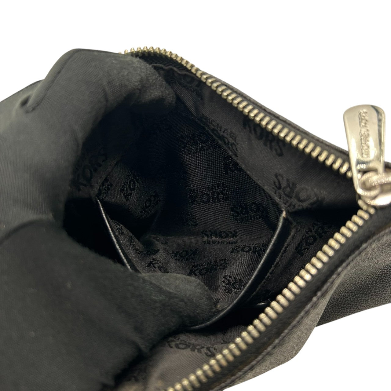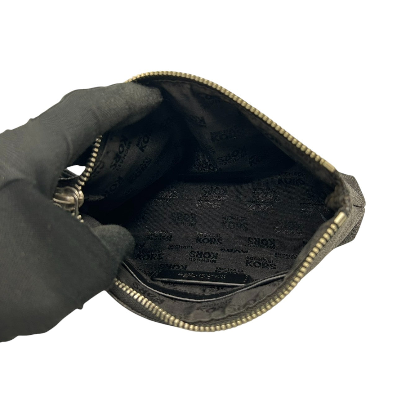 【未使用級/美品】マイケルコース シグネチャー ポーチ ブラック PVC MKロゴプレート 化粧ポーチ コスメポーチ 小物入れ トラベルポーチ 総柄 レディース MICHAEL KORS エレガント スタイリッシュ トップジップ w2