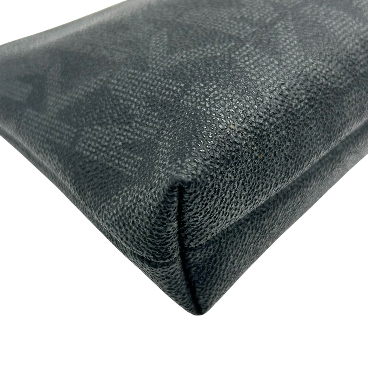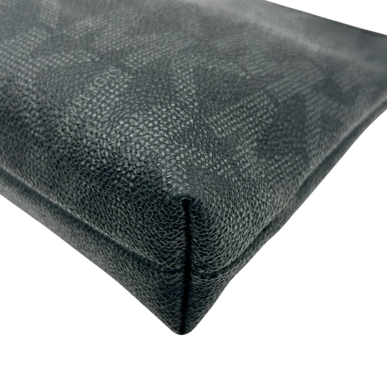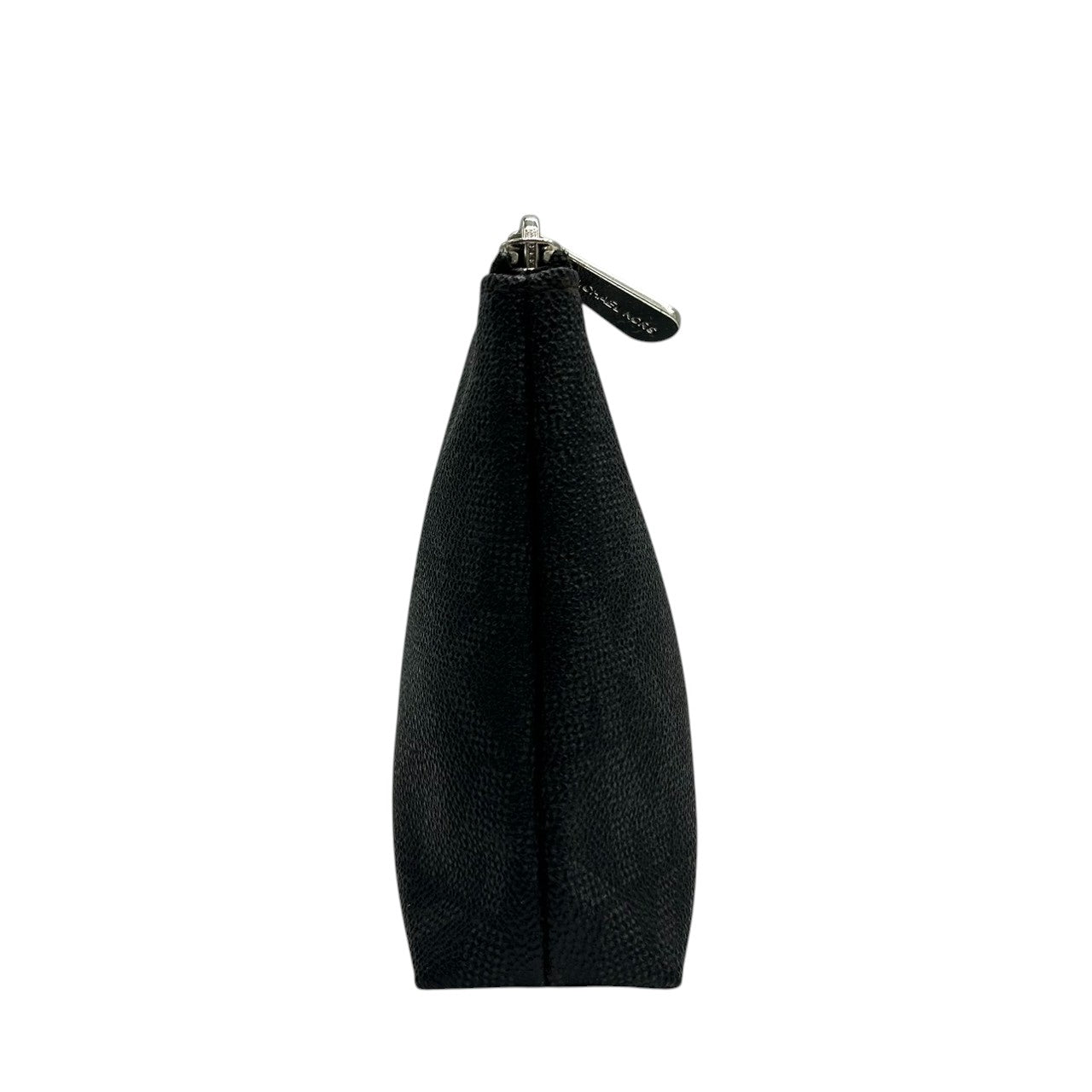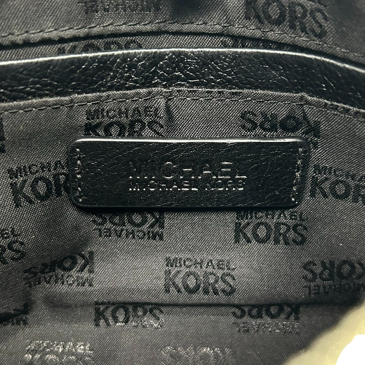 【未使用級/美品】マイケルコース シグネチャー ポーチ ブラック PVC MKロゴプレート 化粧ポーチ コスメポーチ 小物入れ トラベルポーチ 総柄 レディース MICHAEL KORS エレガント スタイリッシュ トップジップ w2