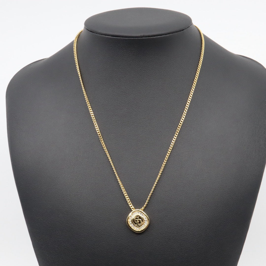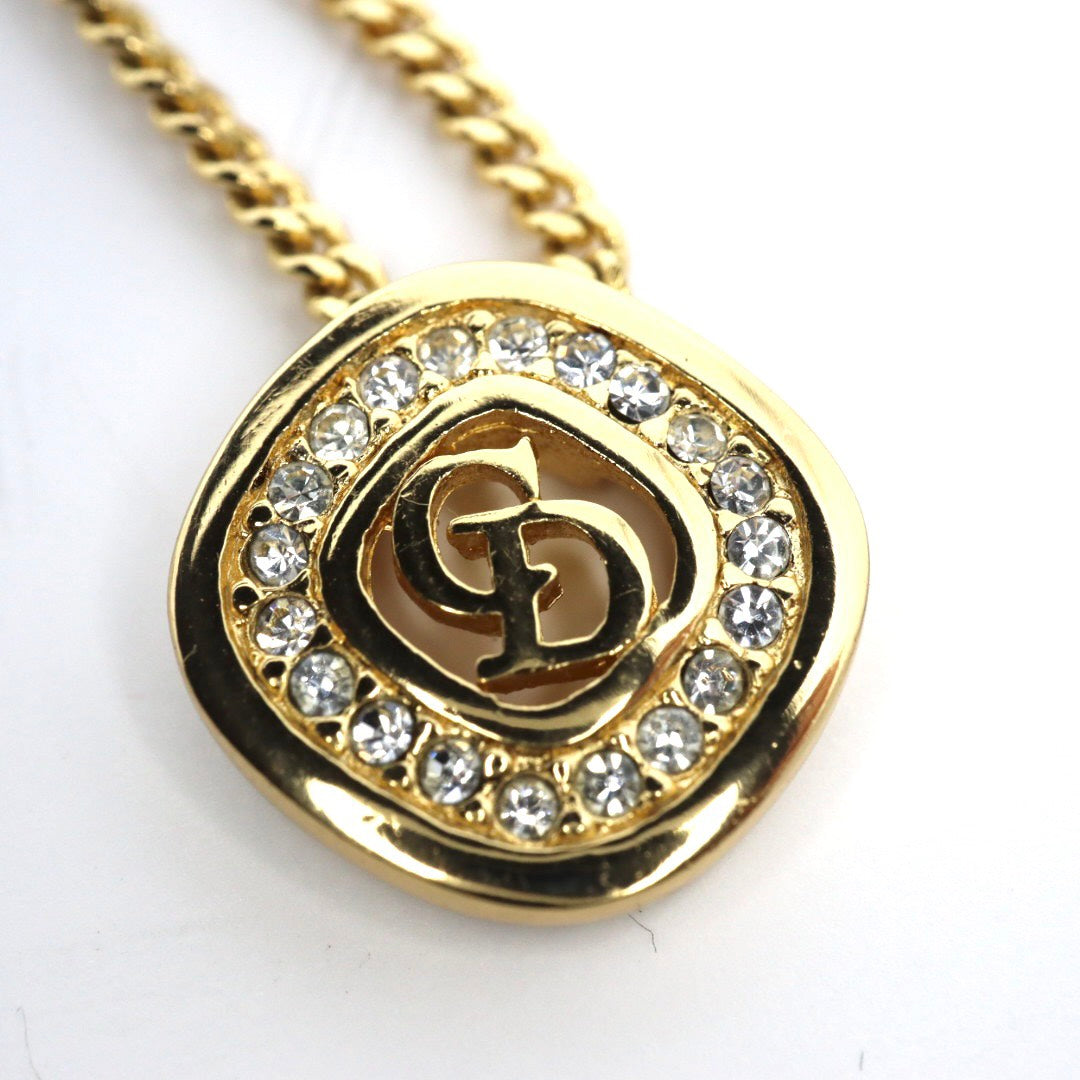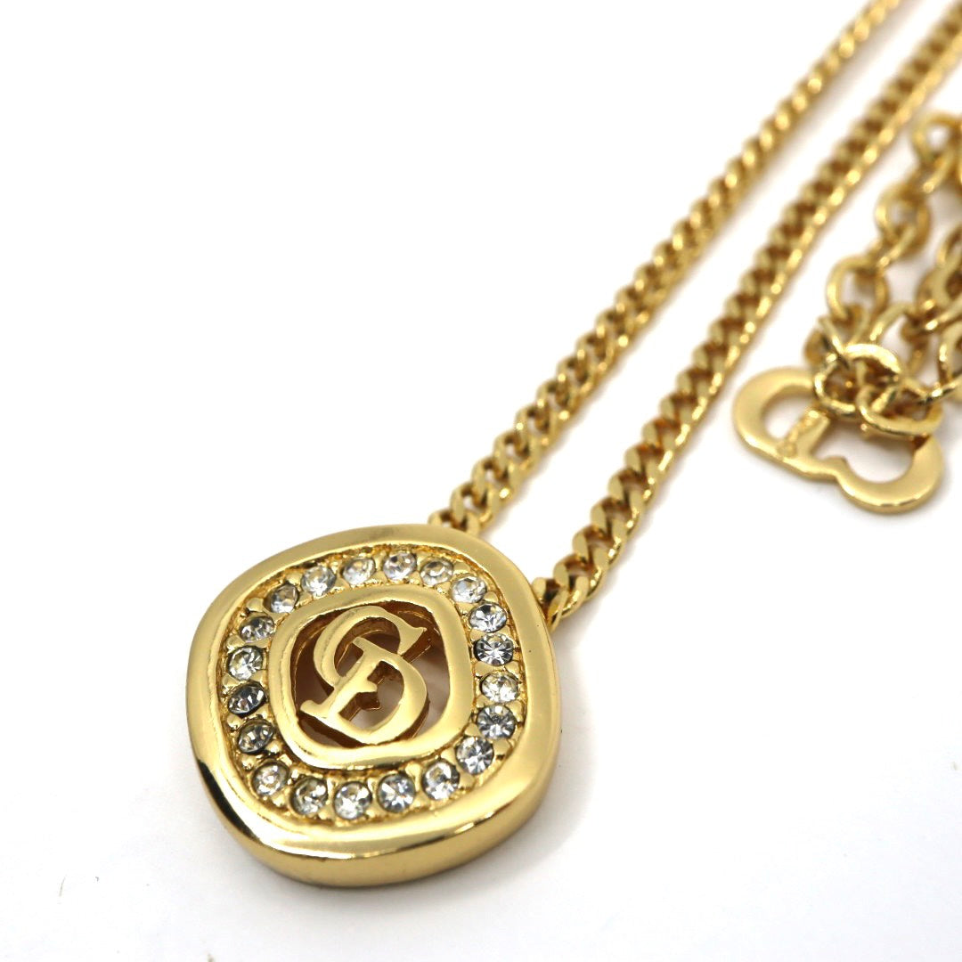 【美品】Christian Dior クリスチャンディオール ラインストーン CDロゴ ネックレス ゴールドカラー GP ペンダント ヴィンテージジュエリー アクセサリー レディース I4
