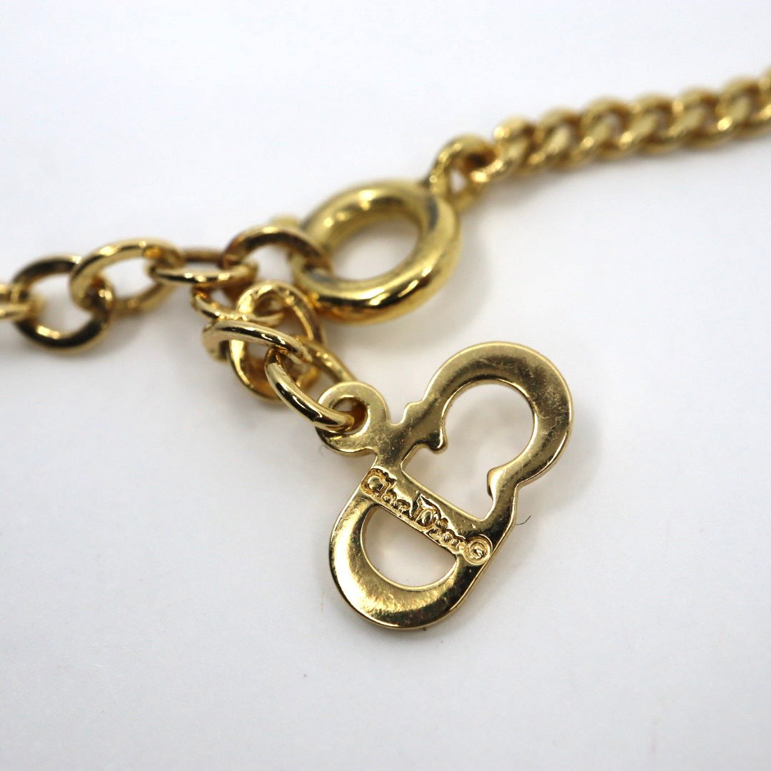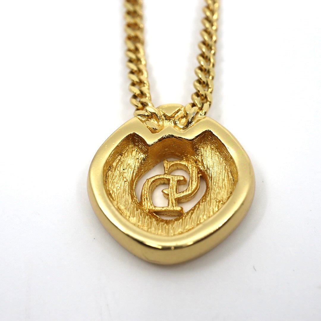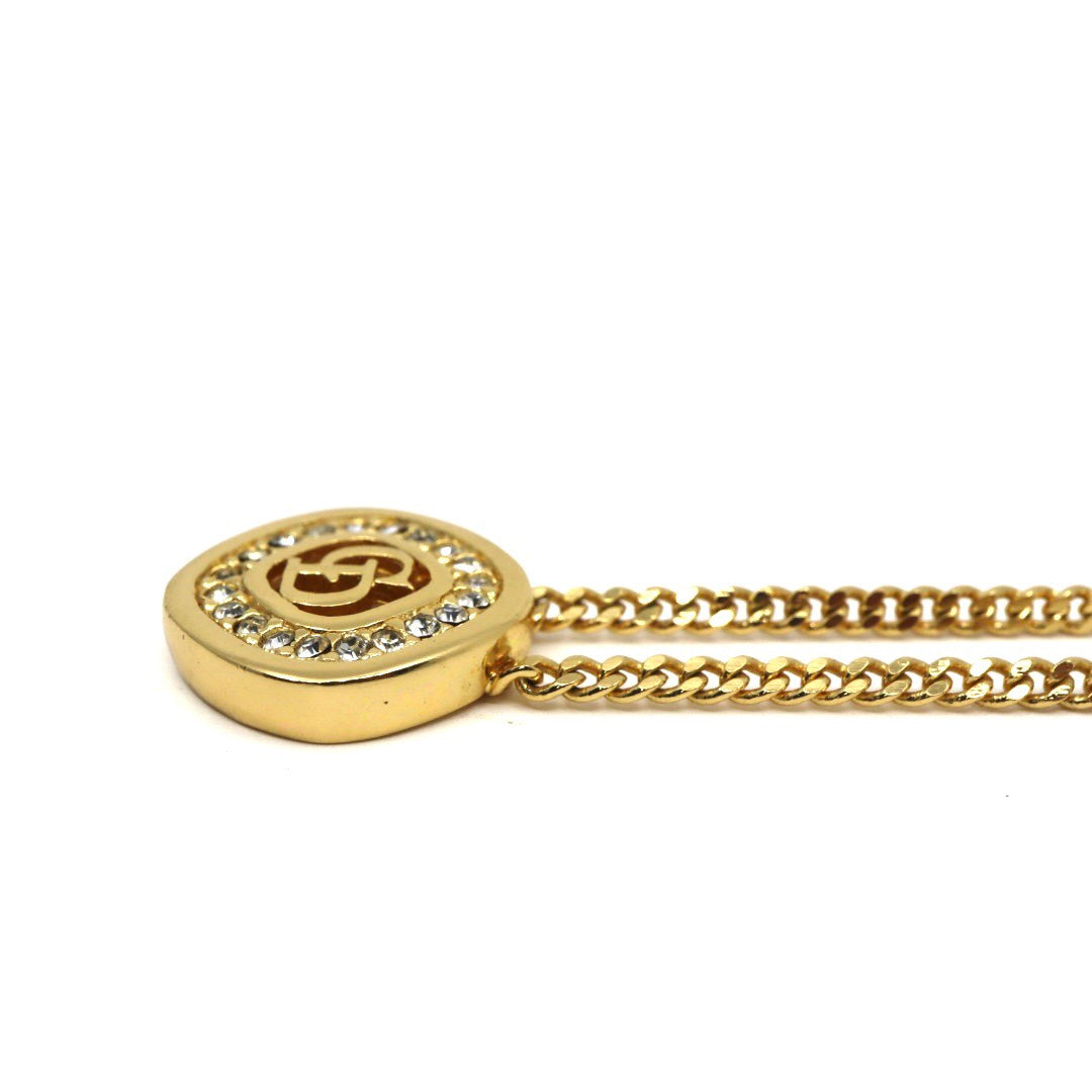 【美品】Christian Dior クリスチャンディオール ラインストーン CDロゴ ネックレス ゴールドカラー GP ペンダント ヴィンテージジュエリー アクセサリー レディース I4