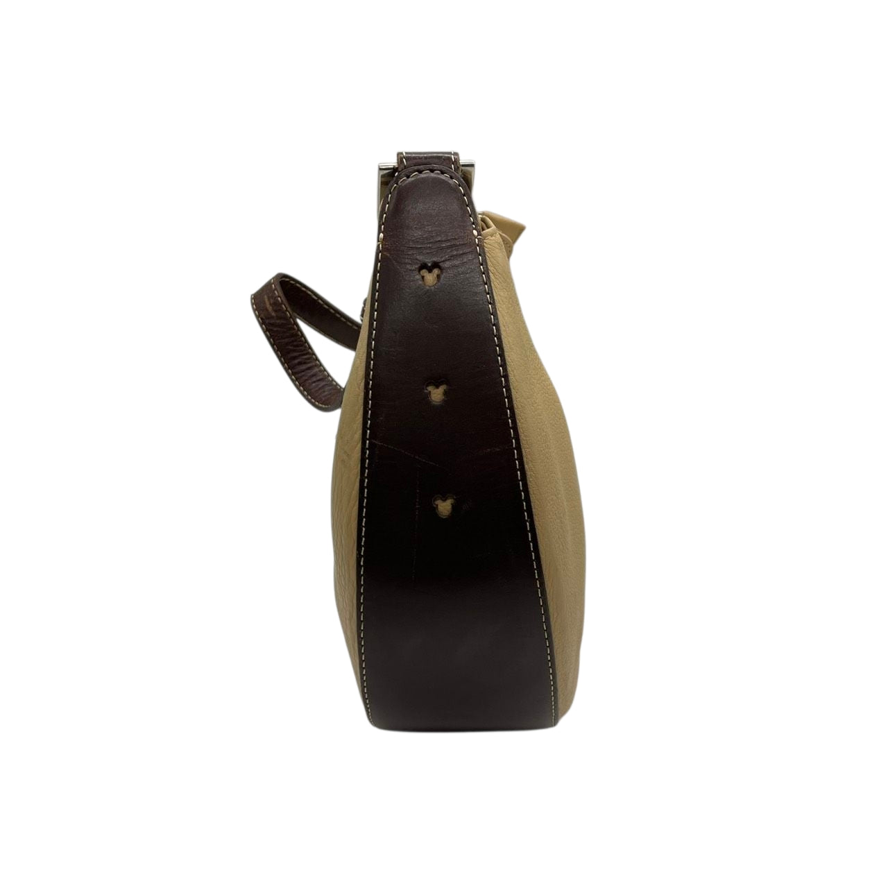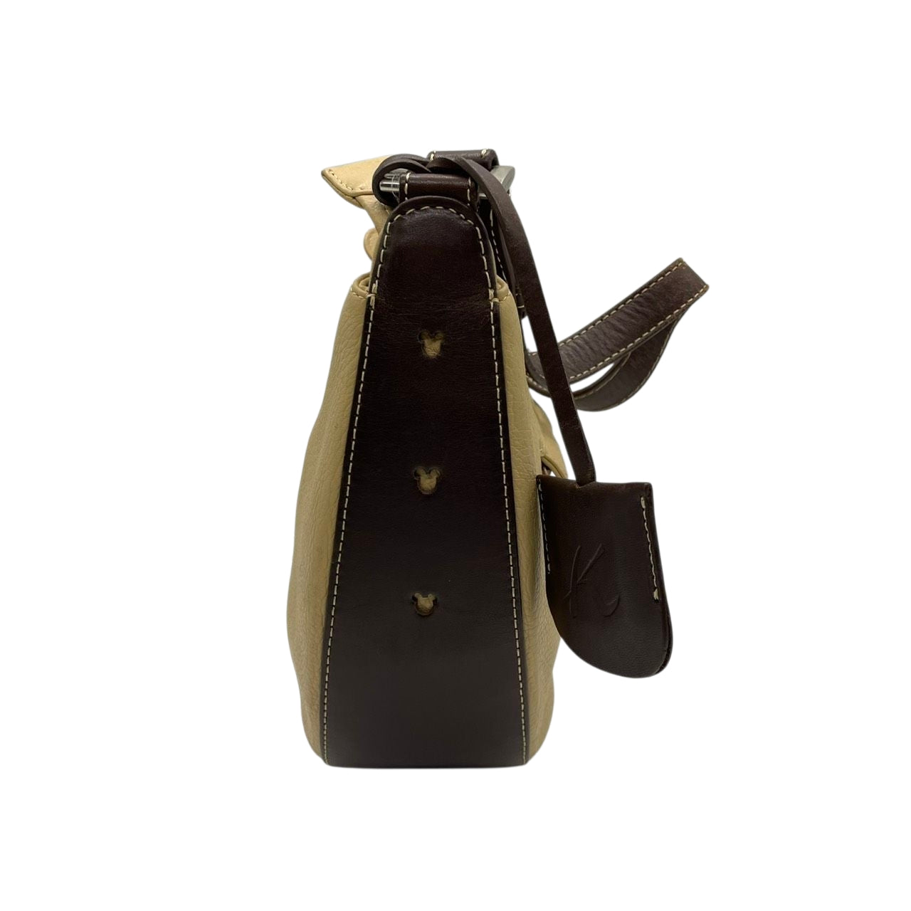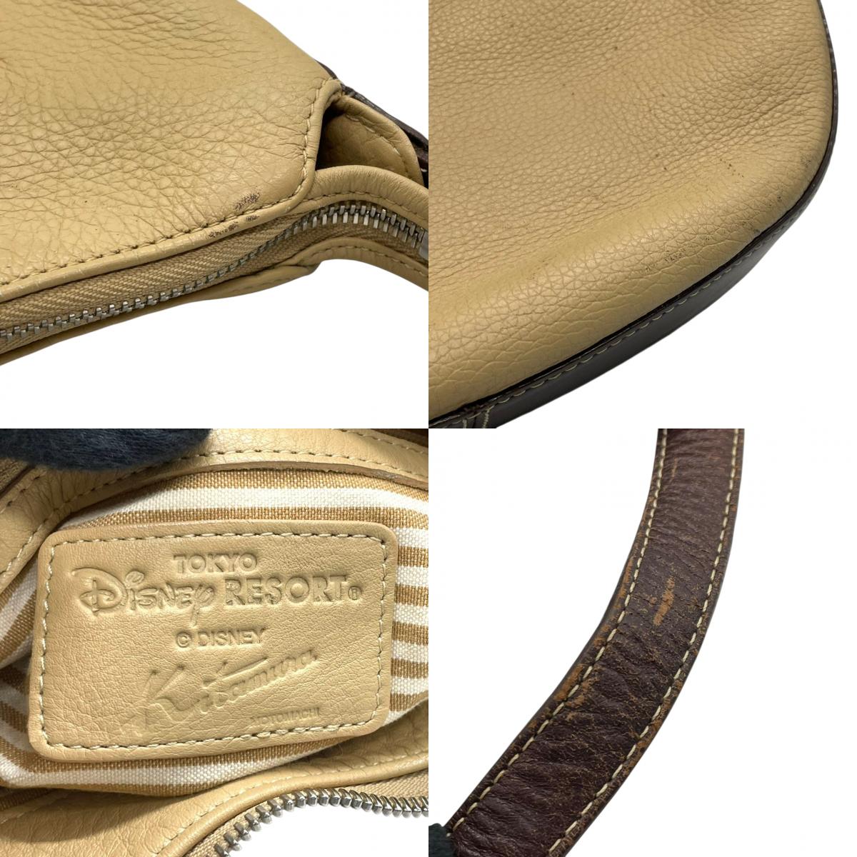 【希少コラボ】キタムラ ディズニー ワンショルダーバッグ レザー バイカラー ベージュ ブラウン レディース 肩掛け Kロゴチャーム 東京ディズニーリゾート限定 Kitamura x Disney ホーボーバッグ 日本製 U1