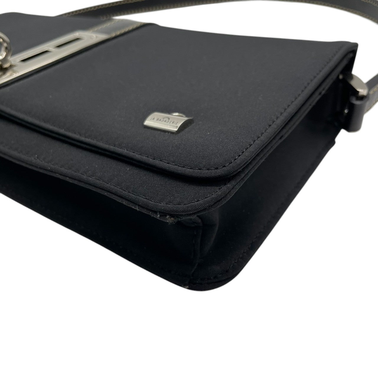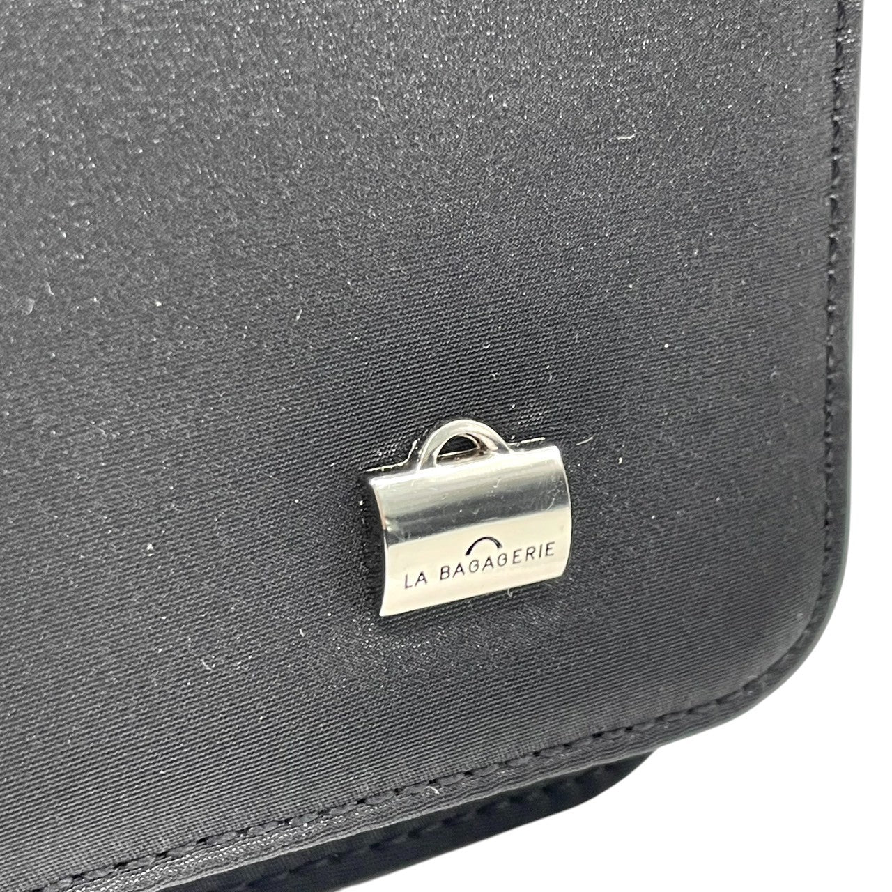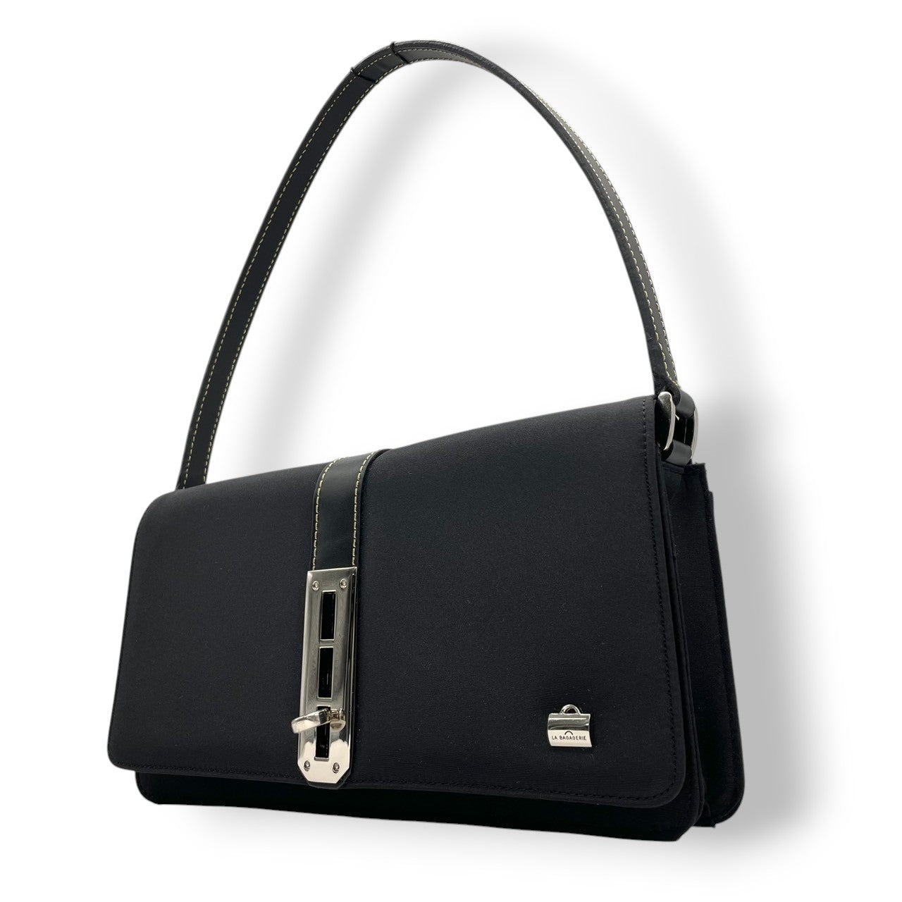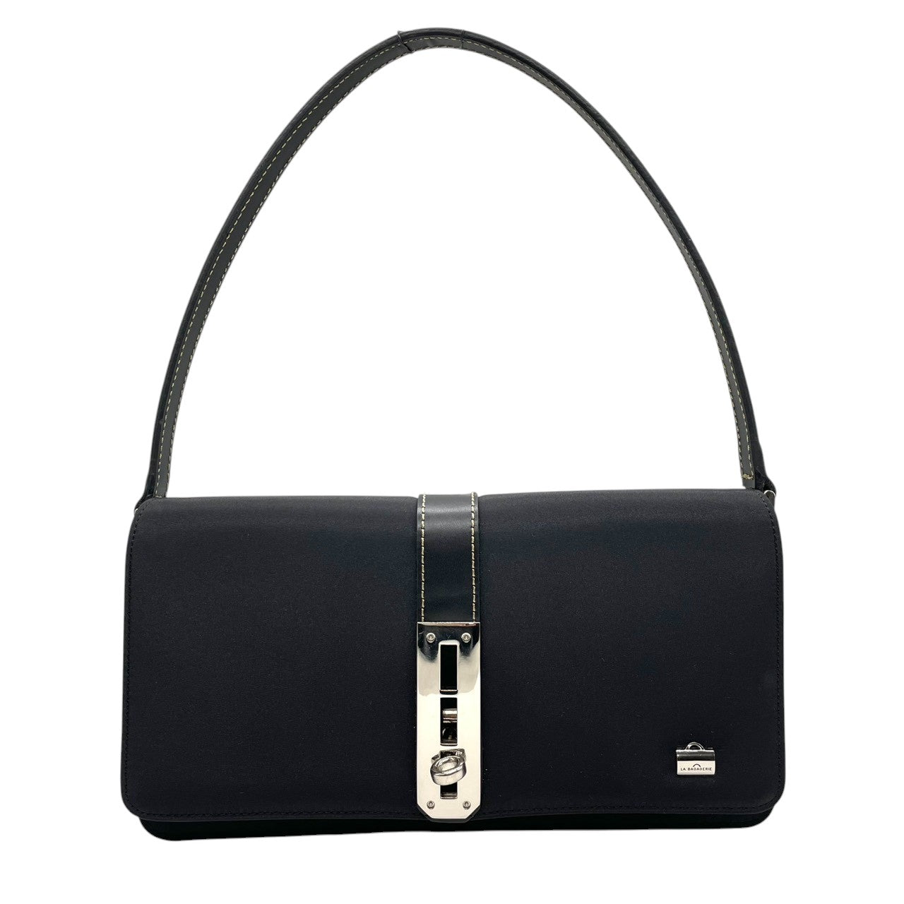 【未使用級/極美品】ラバガジェリー ターンロック ワンショルダー ハンドバッグ ナイロン レザー ブラック レディース 肩掛け可 フラップバッグ LA BAGAGERIE フォーマル エレガント フランス パリ 上品デザイン U1
