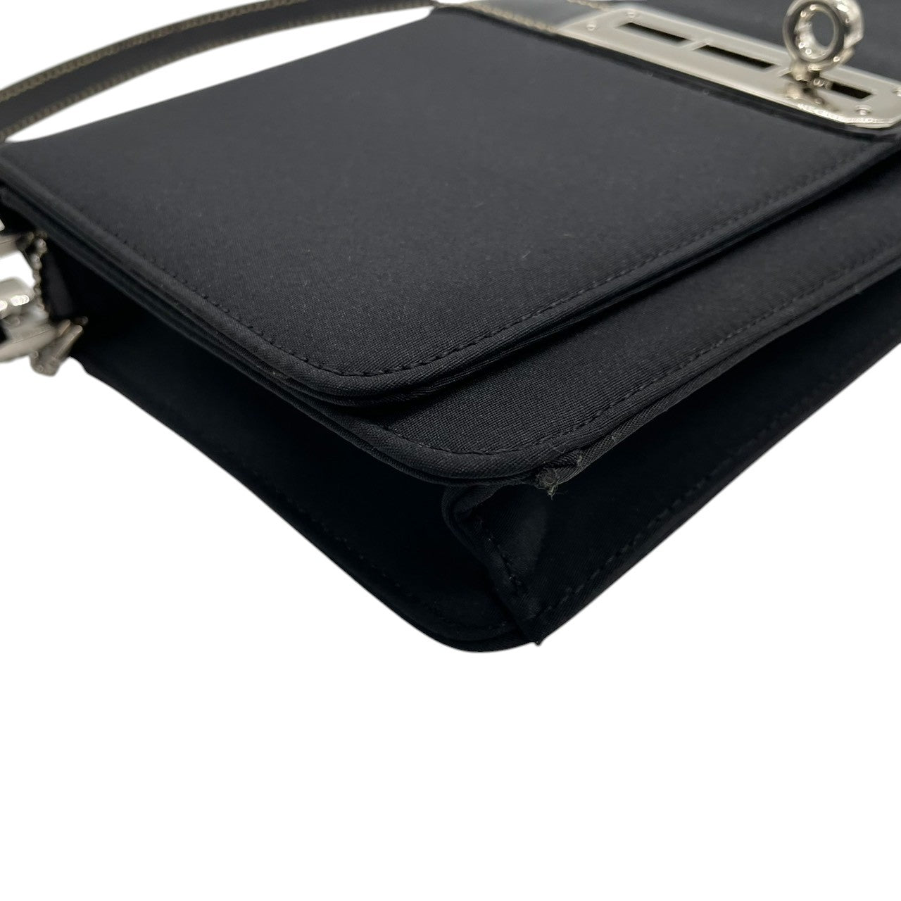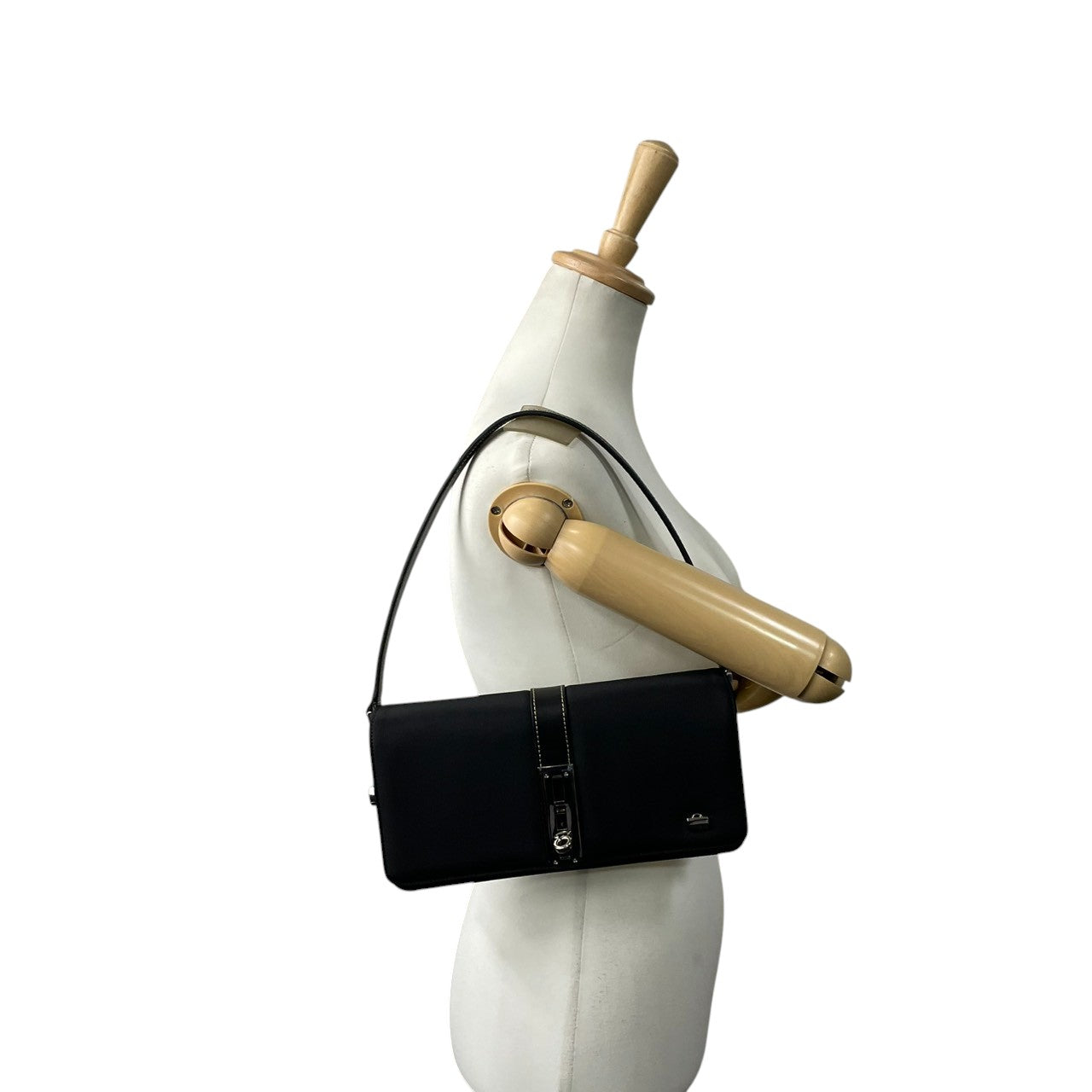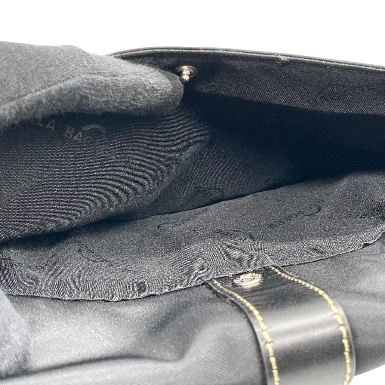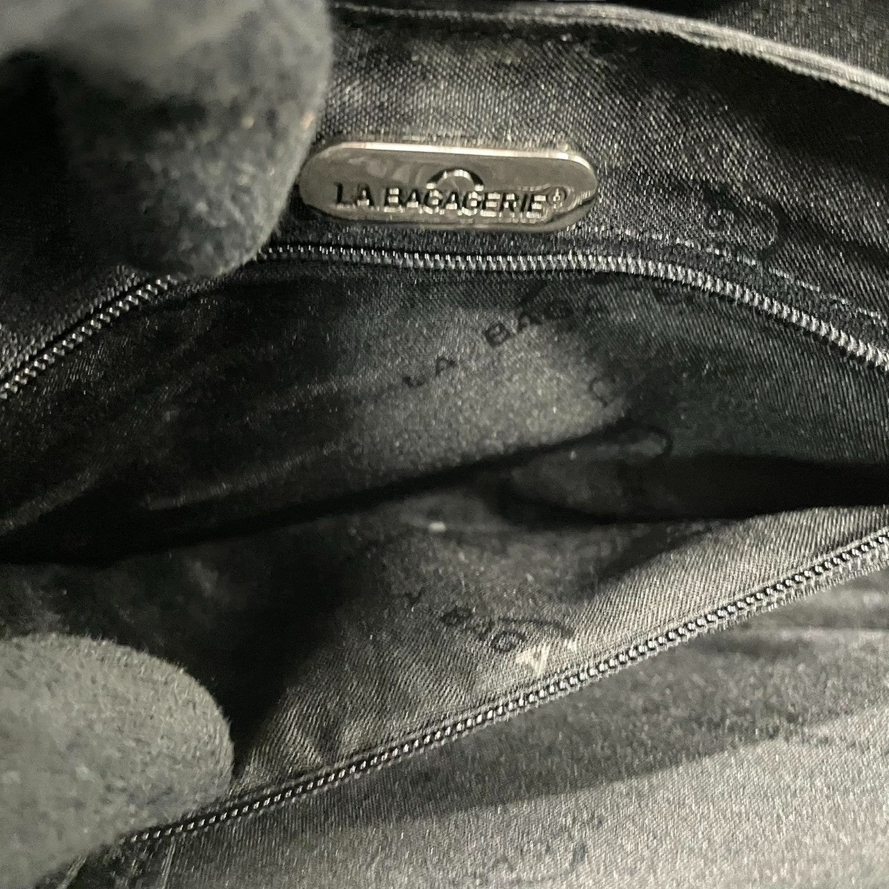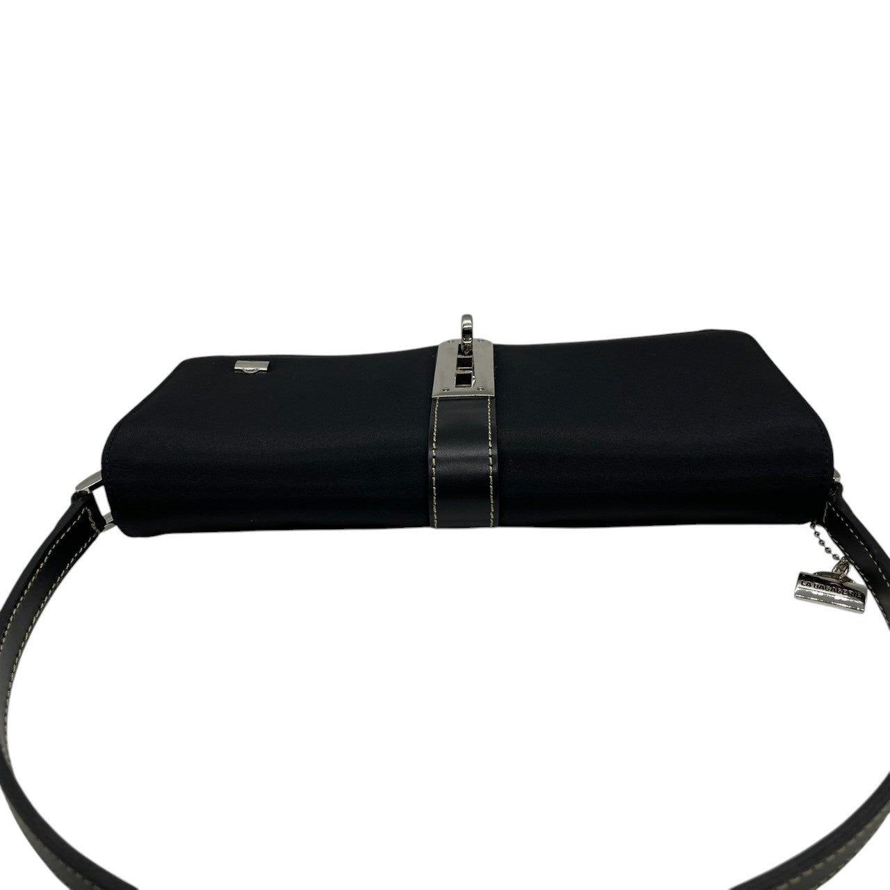 【未使用級/極美品】ラバガジェリー ターンロック ワンショルダー ハンドバッグ ナイロン レザー ブラック レディース 肩掛け可 フラップバッグ LA BAGAGERIE フォーマル エレガント フランス パリ 上品デザイン U1