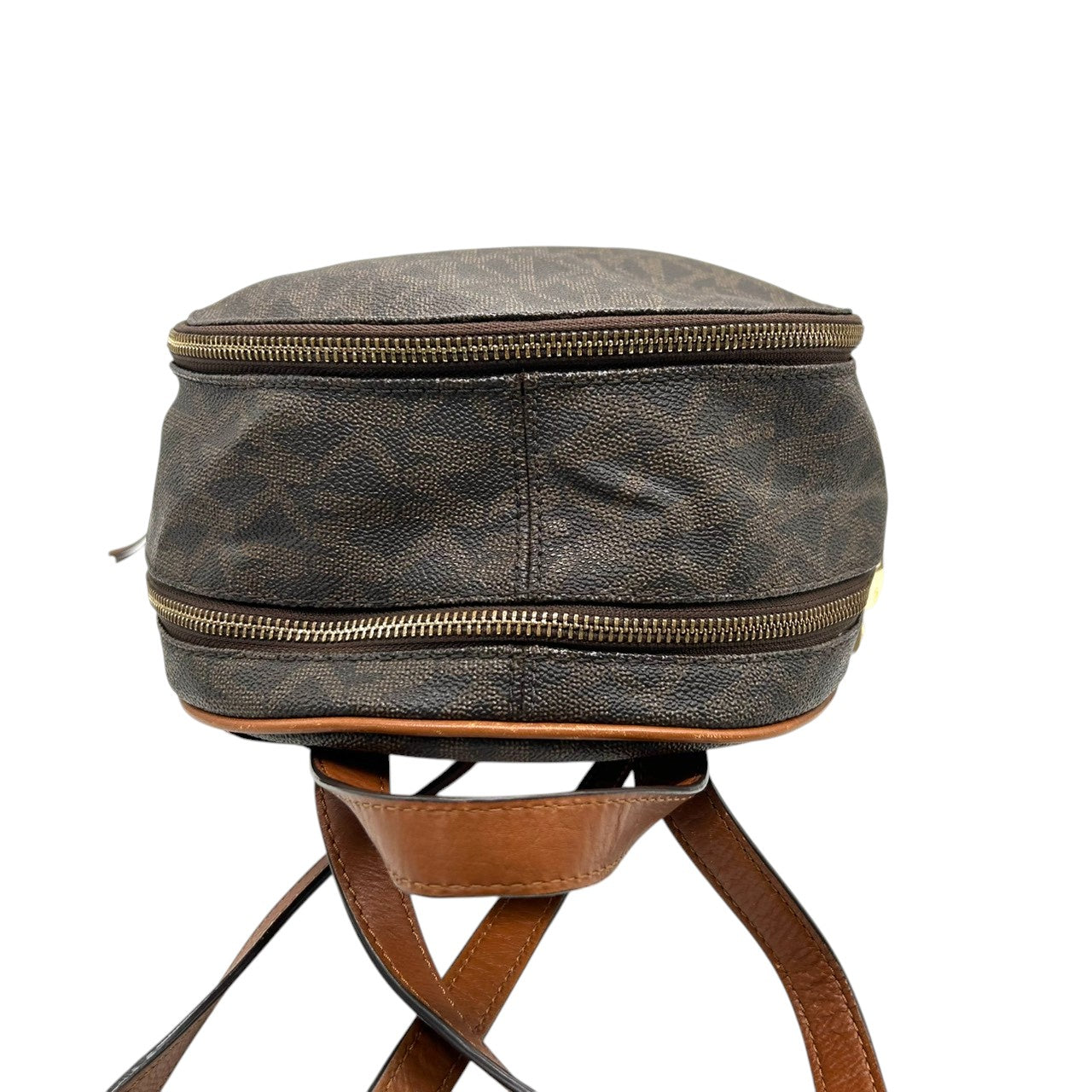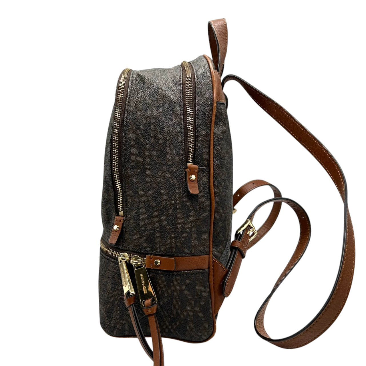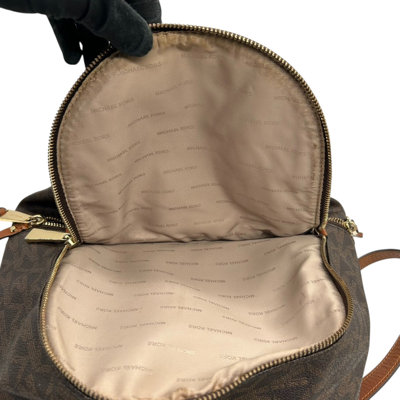 【美品】マイケルコース リアジップ ミディアム バックパック シグネチャー MK柄 リュックサック PVC レザー ブラウン レディース MICHAEL KORS RHEA ZIP 通勤 通学 コンパクトデザイン 人気モデル E10