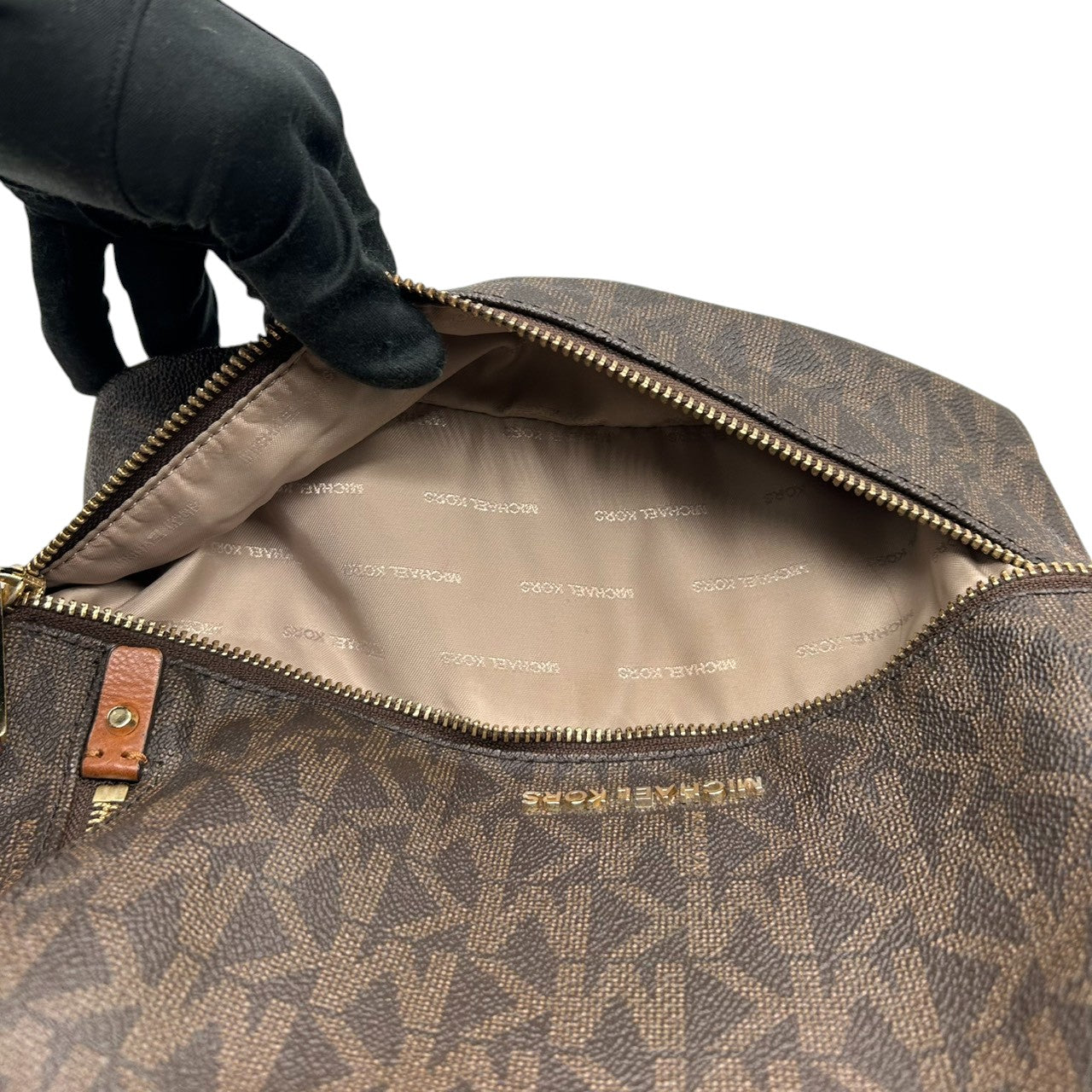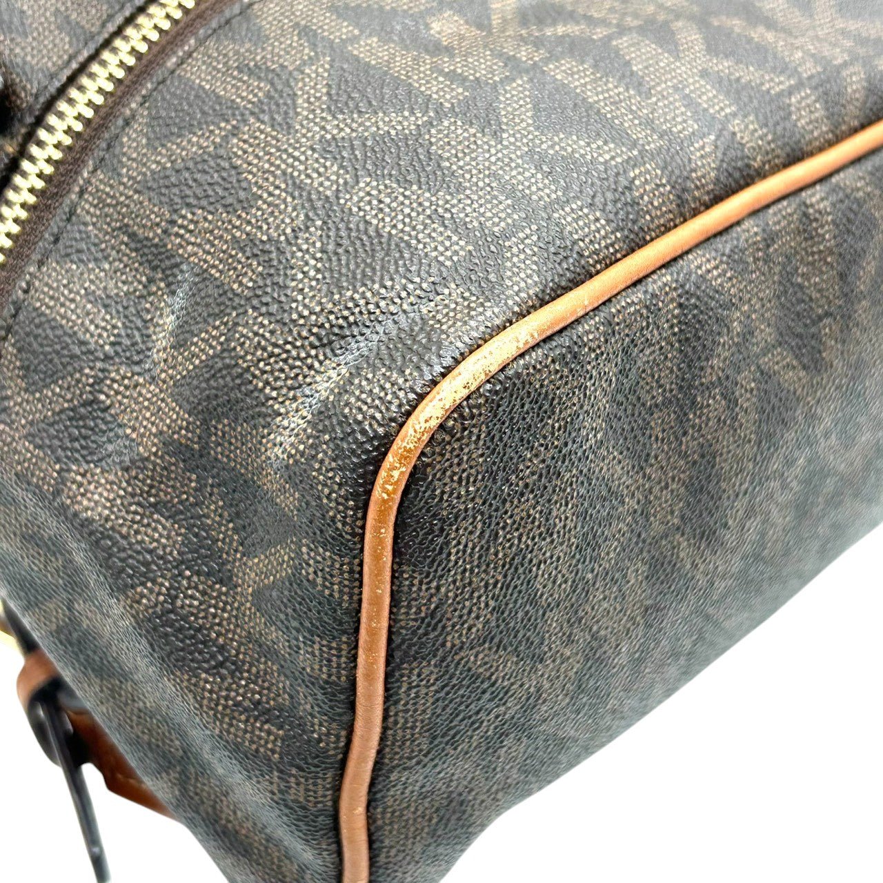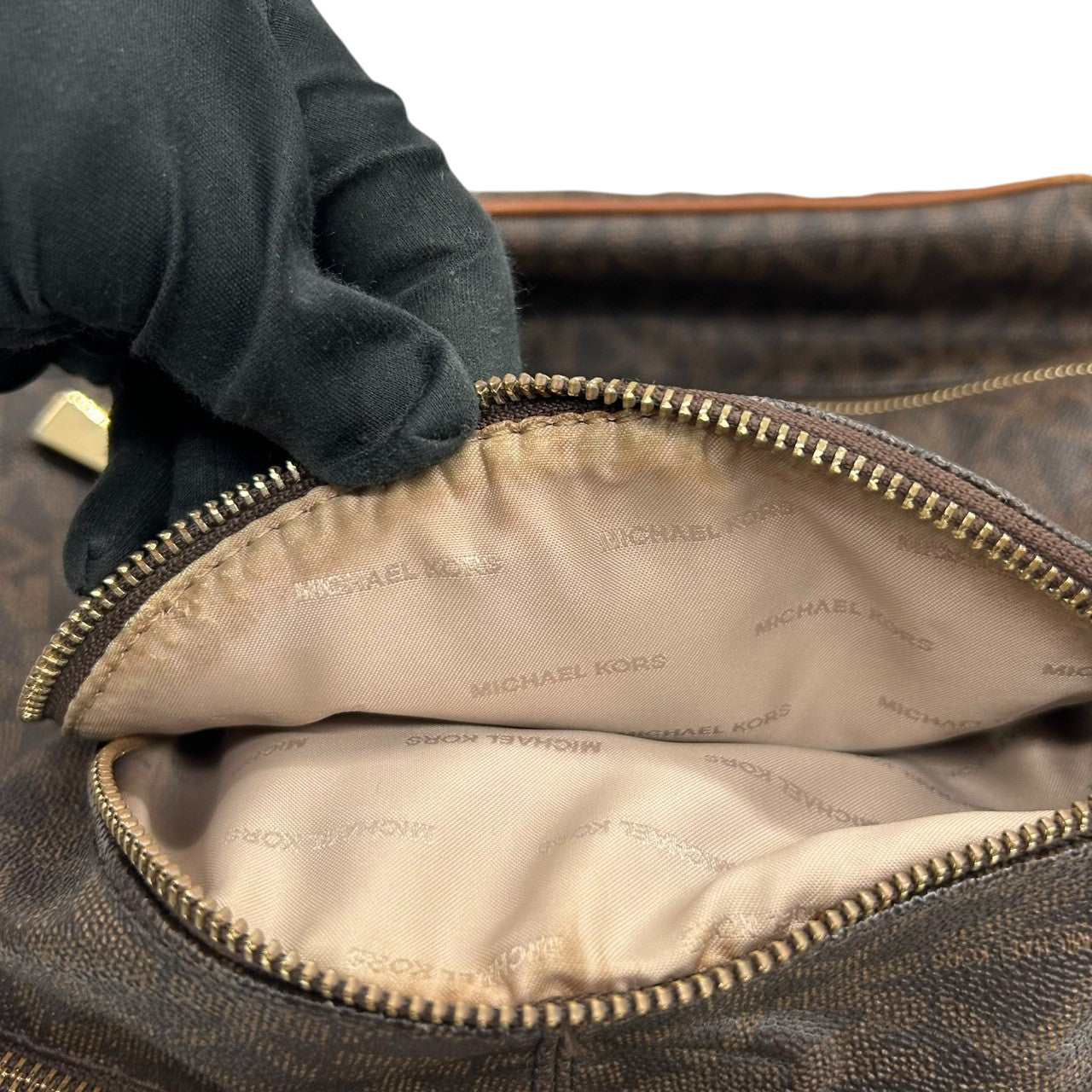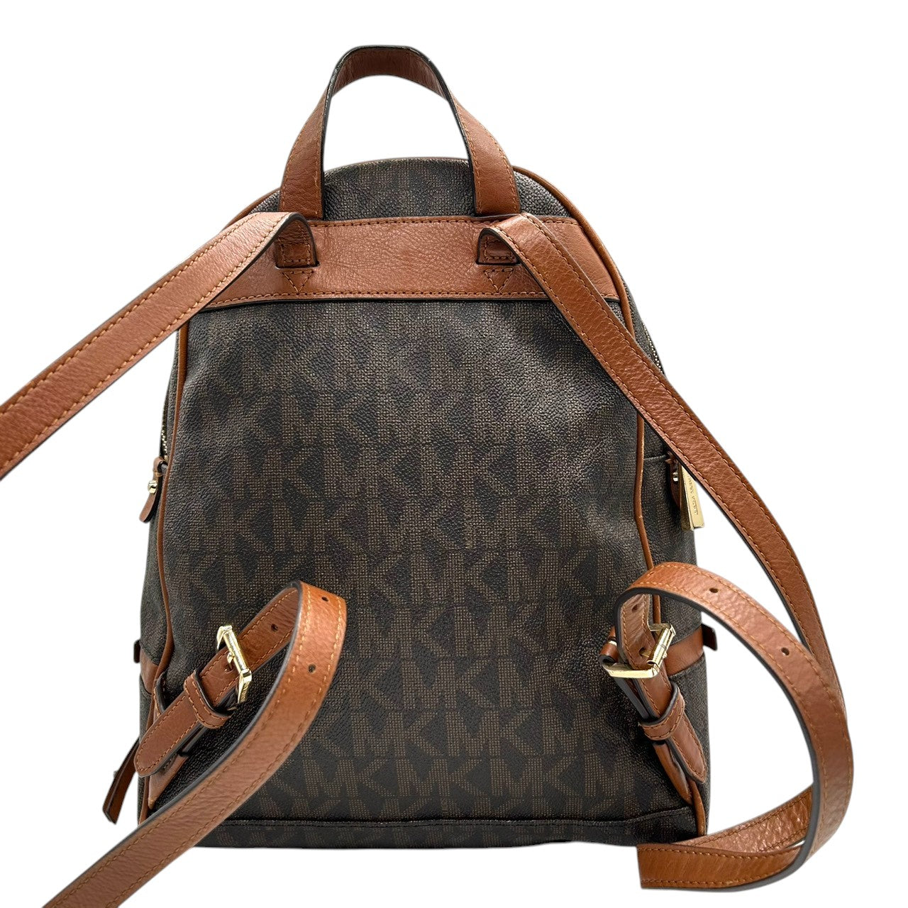 【美品】マイケルコース リアジップ ミディアム バックパック シグネチャー MK柄 リュックサック PVC レザー ブラウン レディース MICHAEL KORS RHEA ZIP 通勤 通学 コンパクトデザイン 人気モデル E10