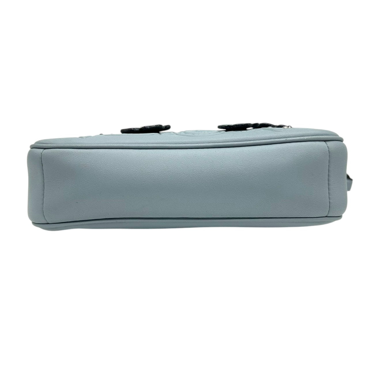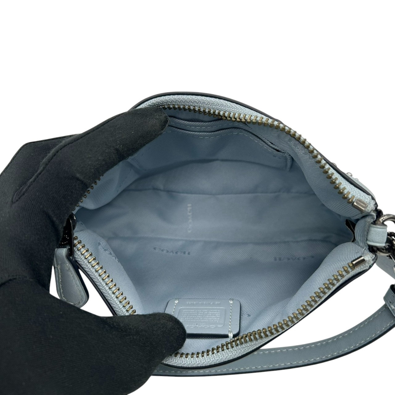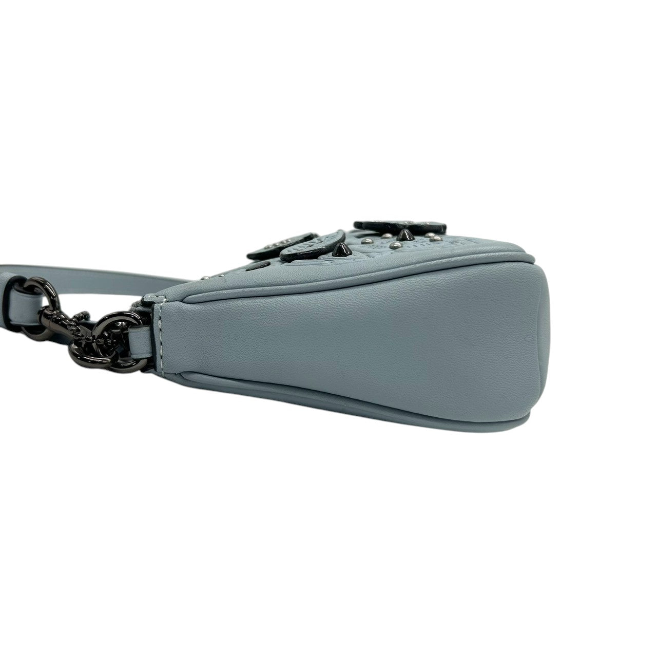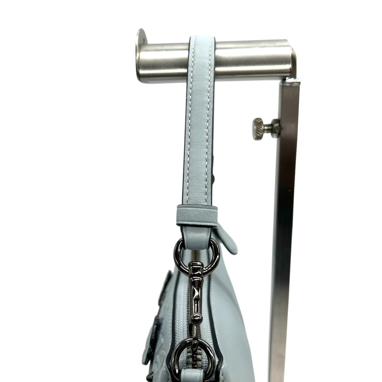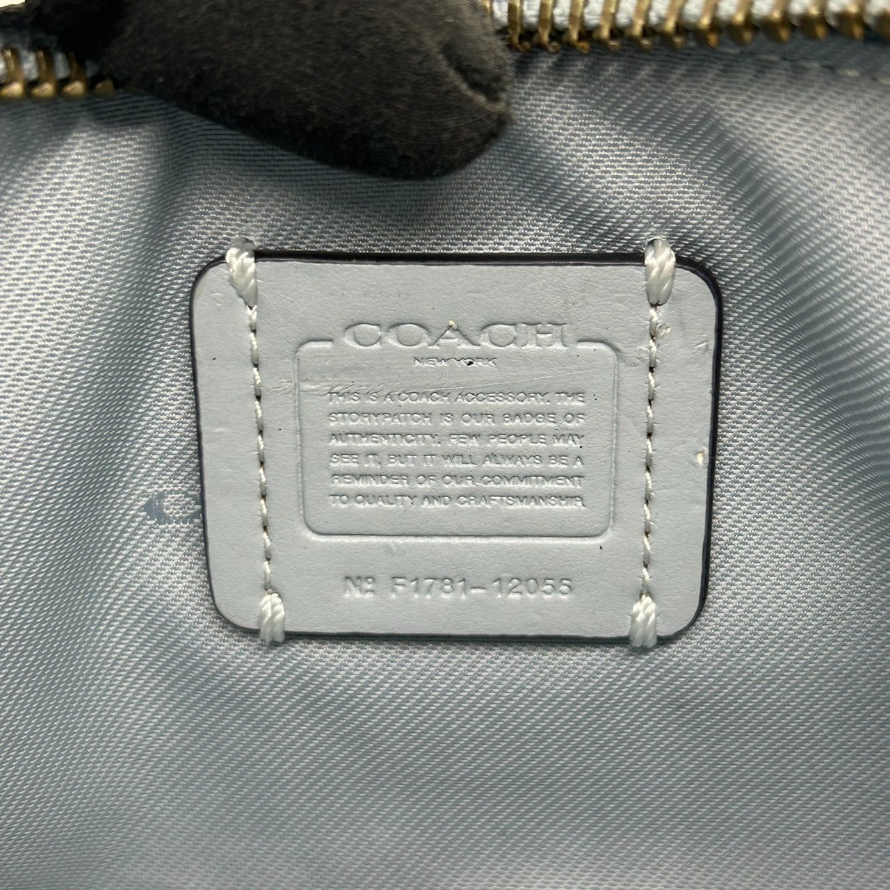 【美品】コーチ ティーローズ フローラル ハンドバッグ 12055 レザー スウェード ライトブルー アクセサリーポーチ リストレット レディース COACH 花柄 エンボス スタッズ グリッター ミニバッグ パーティバッグ s12