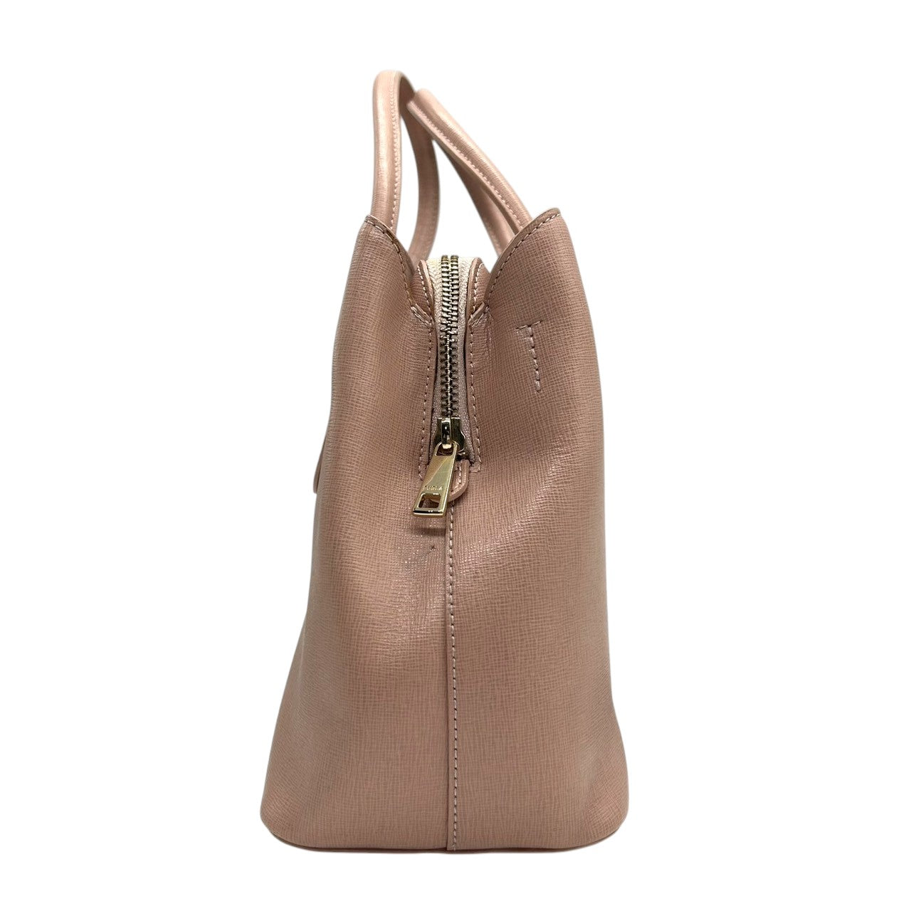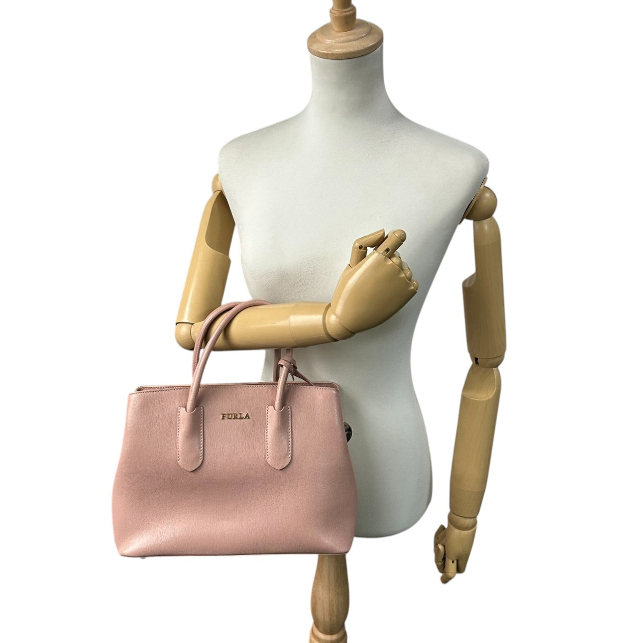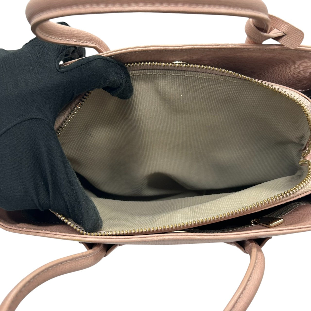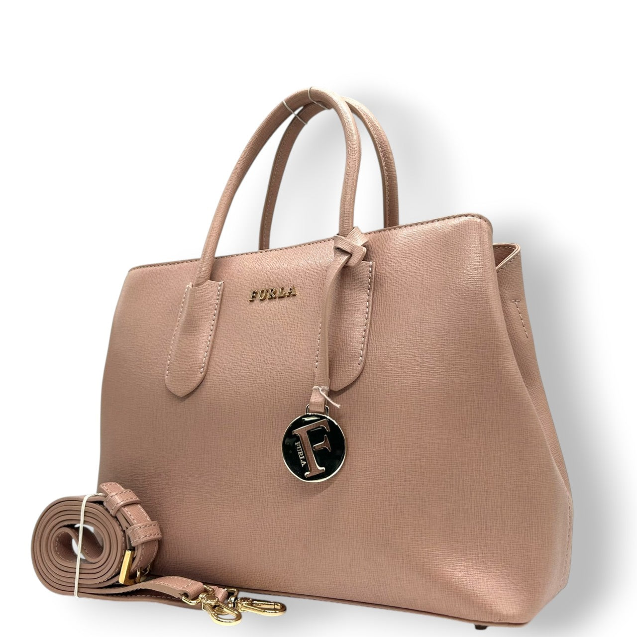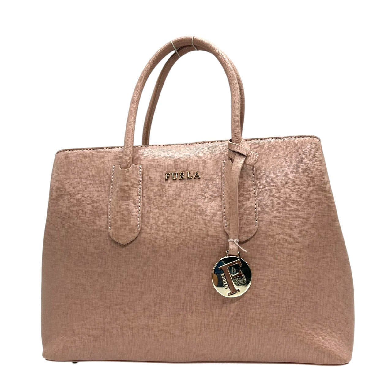 【美品】フルラ テッサ 2WAY ハンドバッグ ショルダーバッグ A4可 レザー ピンクベージュ レディース FURLA TESSA 斜め掛け可 通勤通学 ビジネス 自立可 Fチャーム付き エレガント フェミニン 人気モデル s43