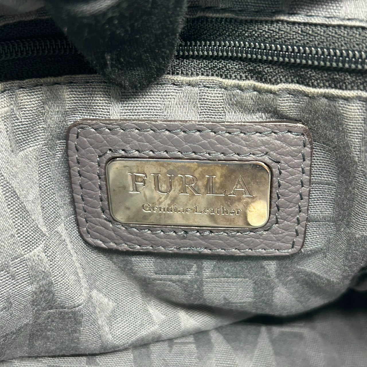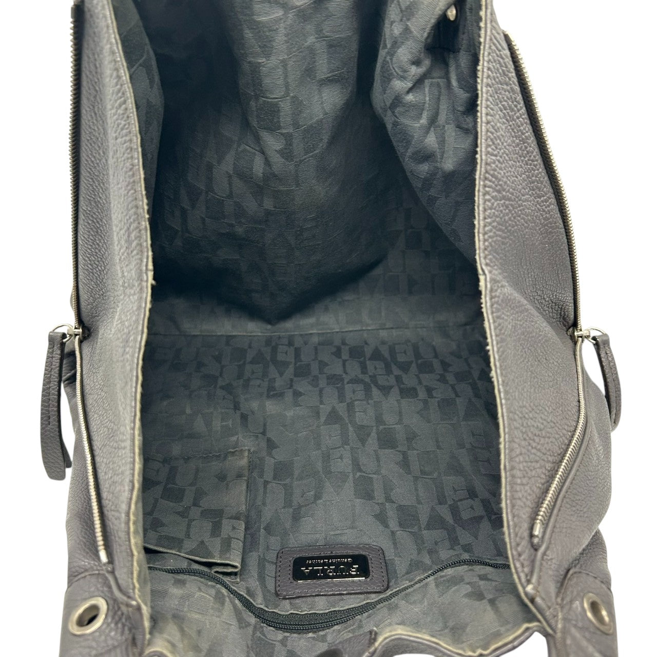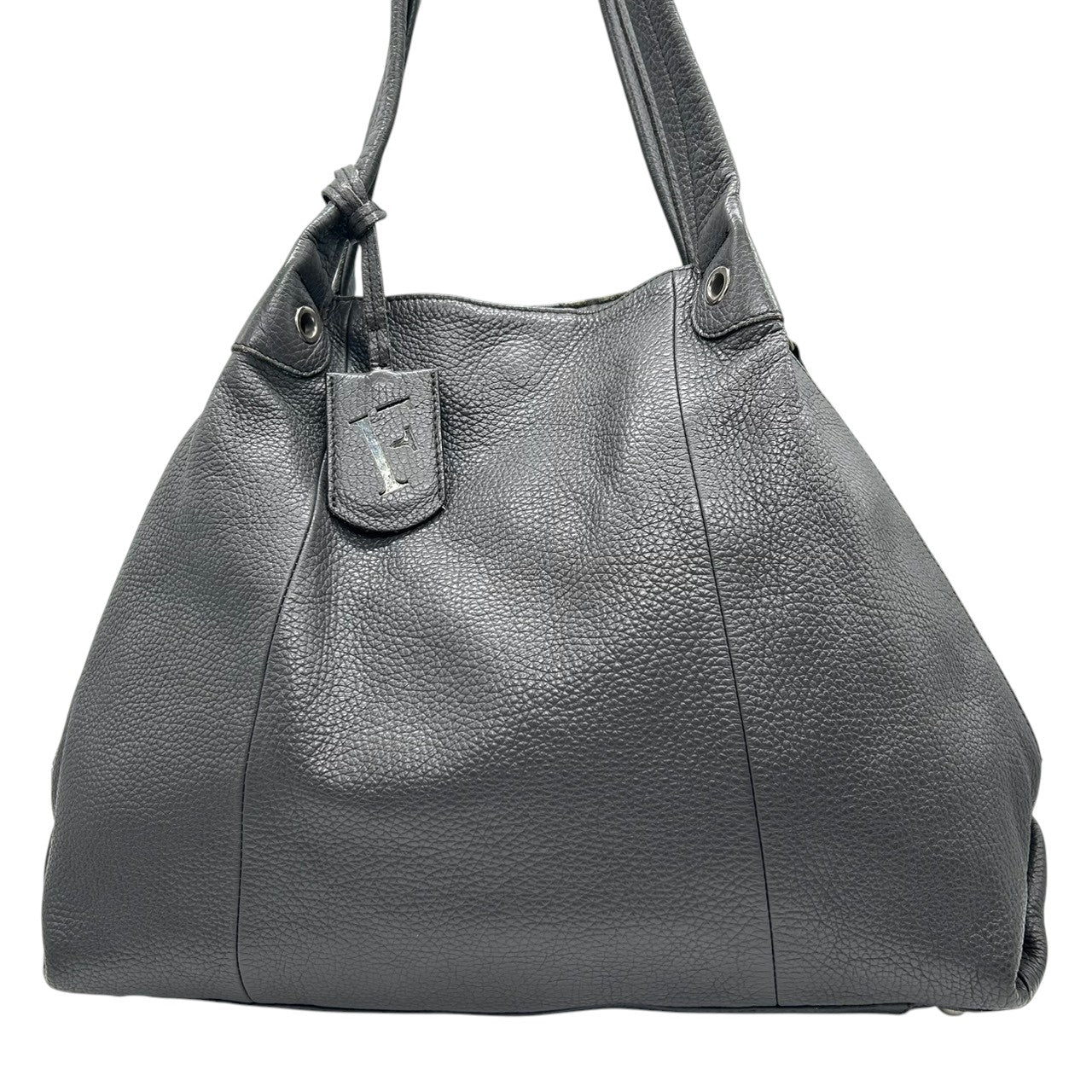 【美品】フルラ リンダ レザー トートバッグ ハンドバッグ A4可 PC収納可 肩掛け ワンショルダー グレー グレージュ レディース FURLA 通勤通学 ビジネス 大容量 Fチャーム付き 自立可 エレガント 人気モデル 上品 u14