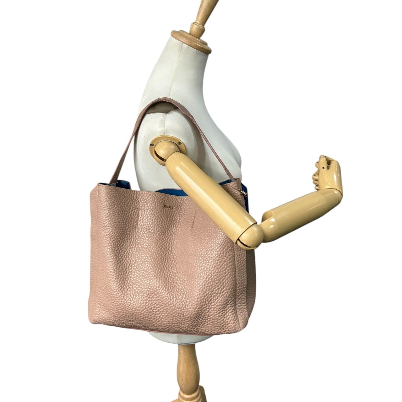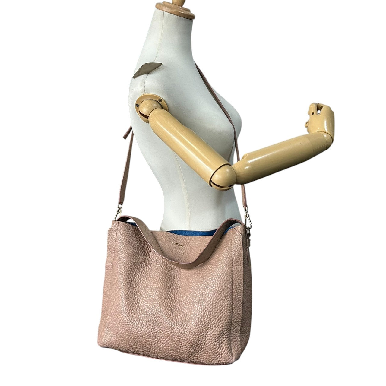 【美品】フルラ カプリッチョ 2WAY ショルダーバッグ ハンドバッグ レザー ピンクベージュ レディース A4可 FURLA CAPRICCIO ワンショルダー 斜め掛け可 通勤通学 大容量 バイカラーデザイン エレガント U9