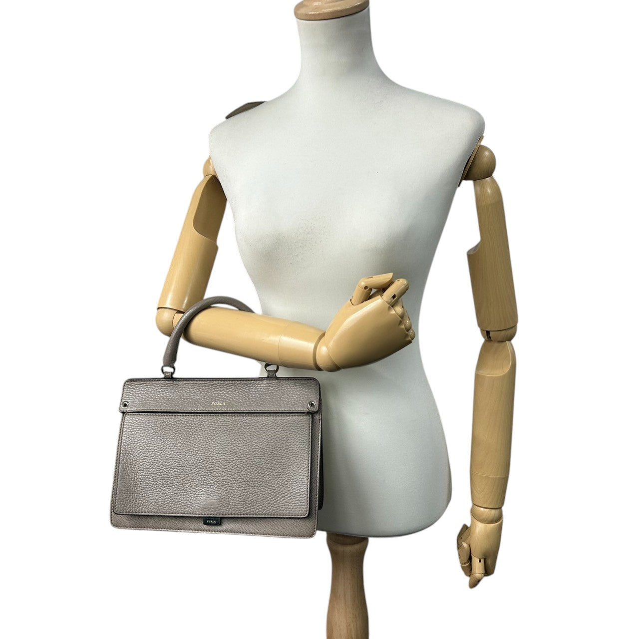 【美品】フルラ ネット 2WAY ハンドバッグ ショルダーバッグ レザー グレージュ レディース FURLA NET トップハンドル 斜め掛け可 自立可 通勤 フォーマル エレガント イタリア製 コンパクト 人気モデル s82