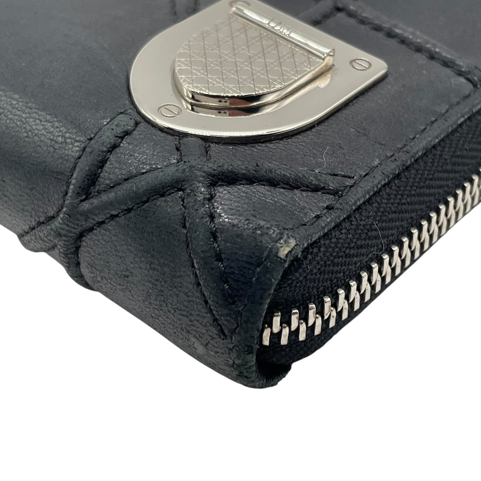 Christian Dior クリスチャンディオール ディオラマ 長財布 コンパクトウォレット ラウンドファスナー ブラック キルティング レザー シルバー金具 ロゴ メンズ レディース W3