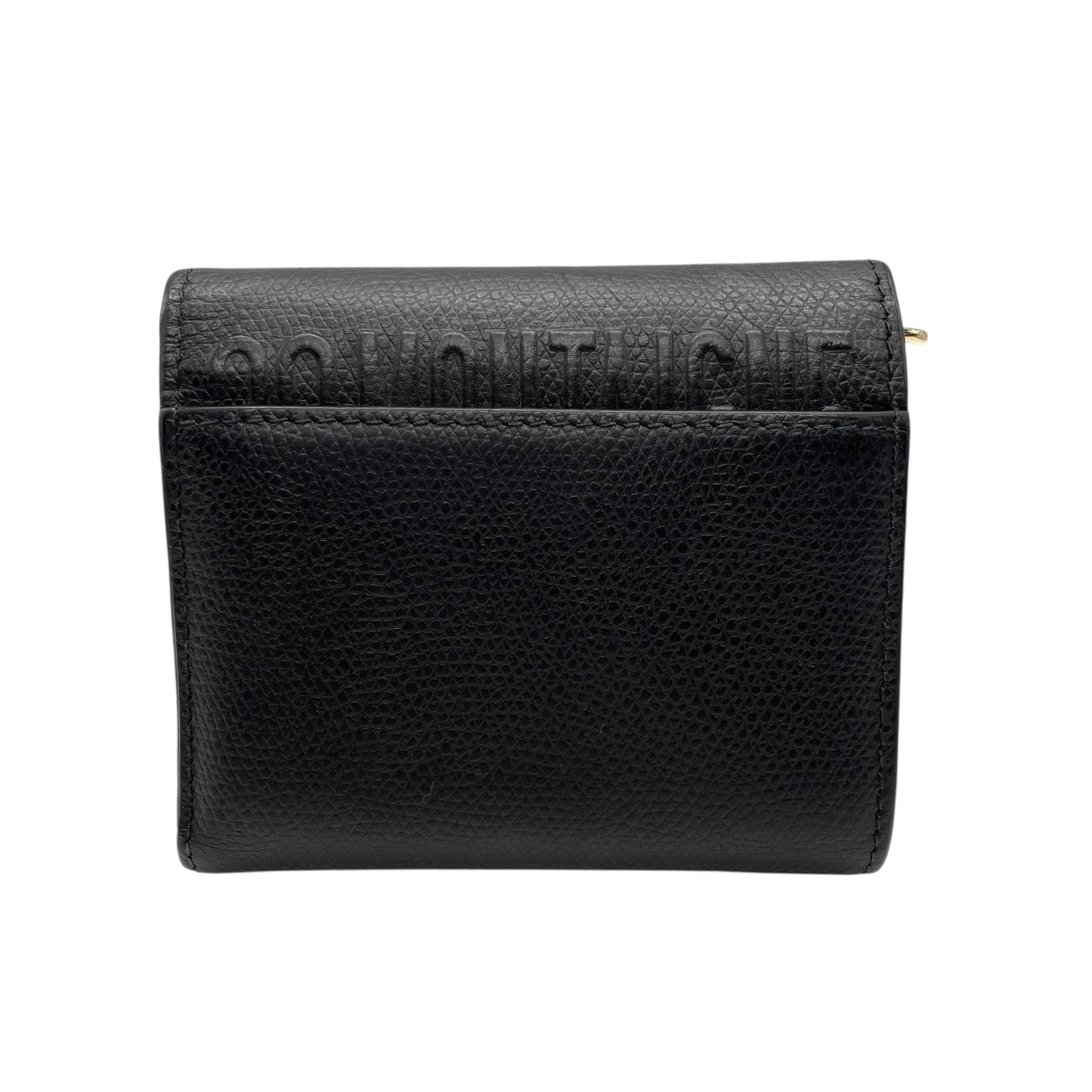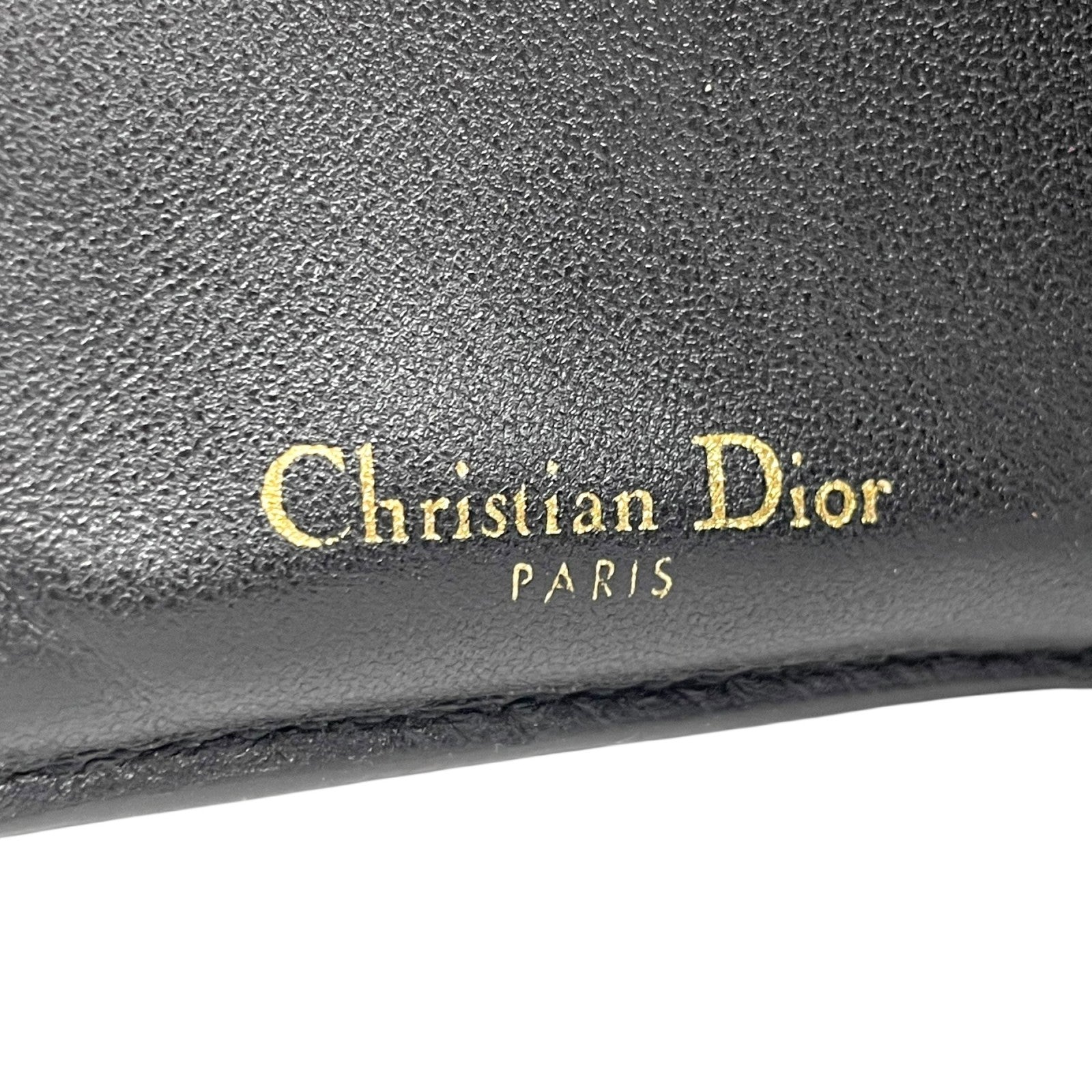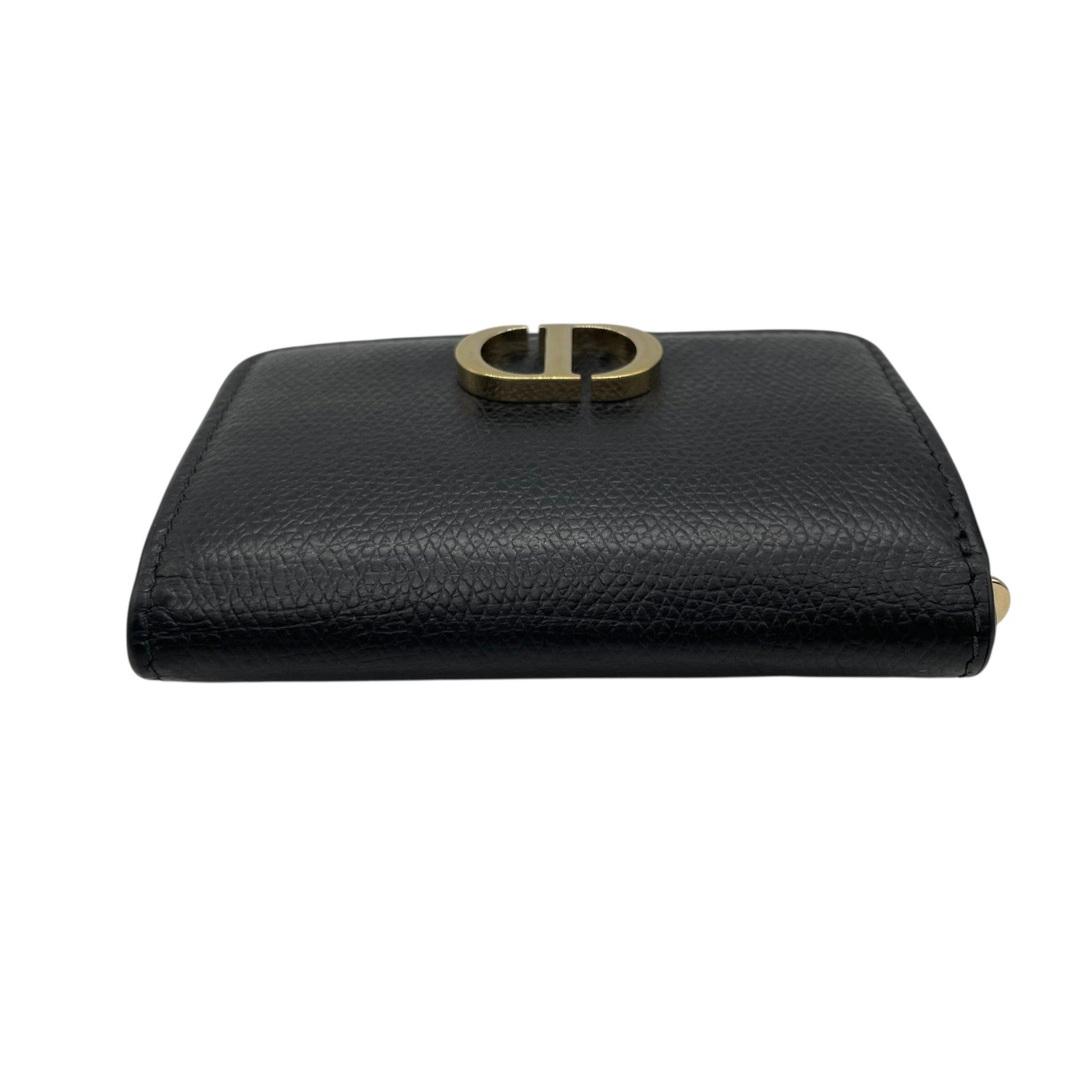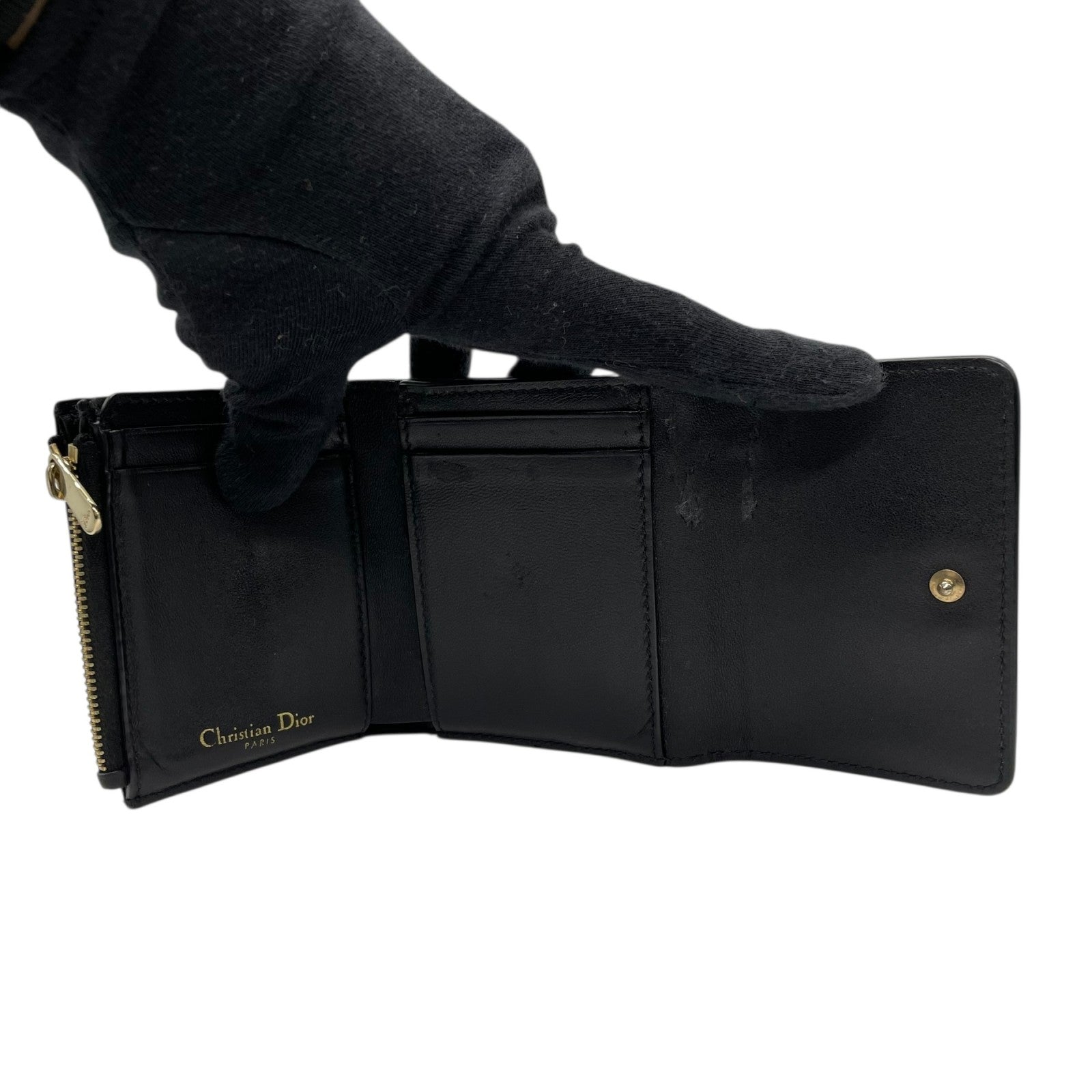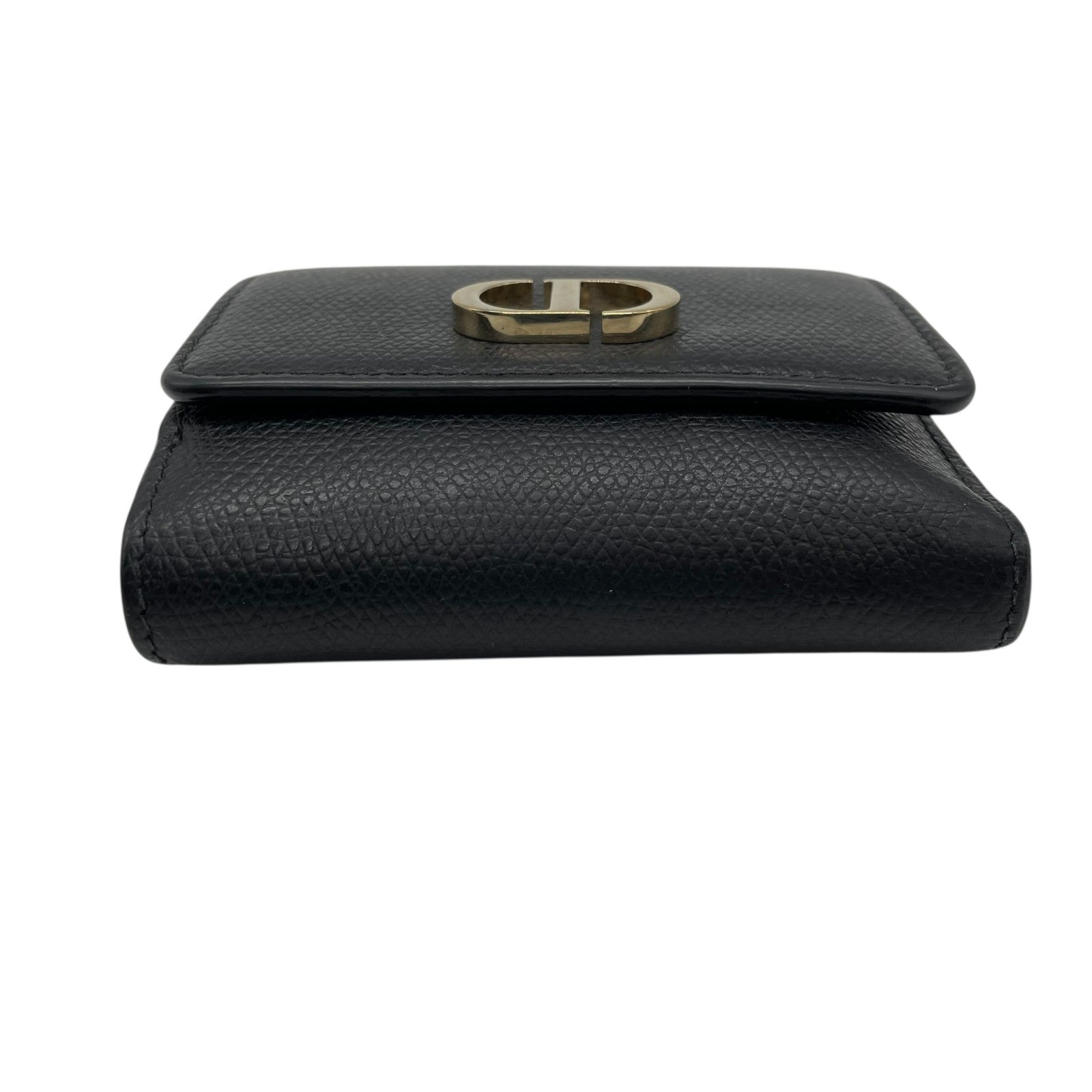 【美品】Christian Dior クリスチャンディオール モンテーニュ ロータス 三つ折り財布 コンパクトウォレット ブラック レザー CDロゴ ゴールド金具 レディース W3