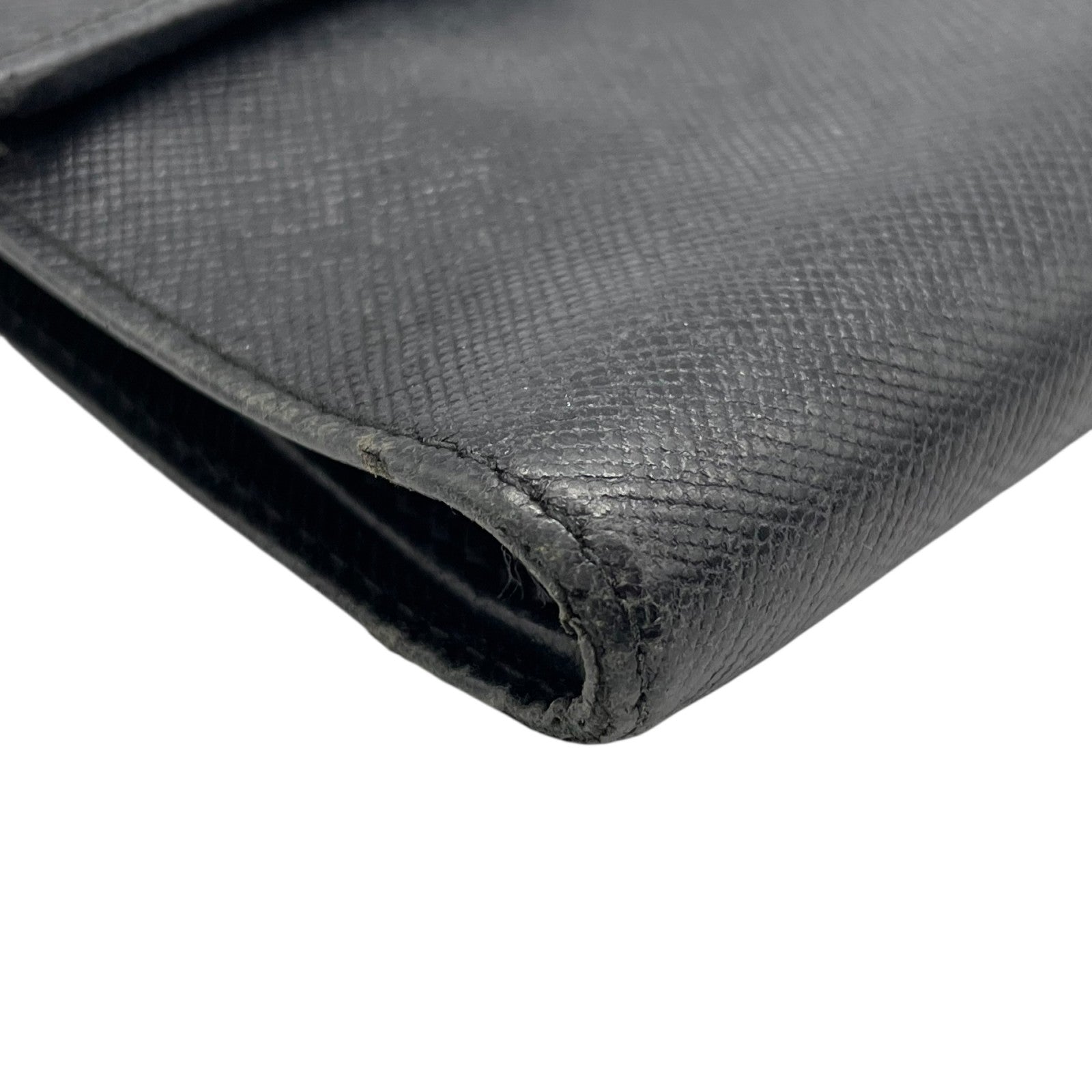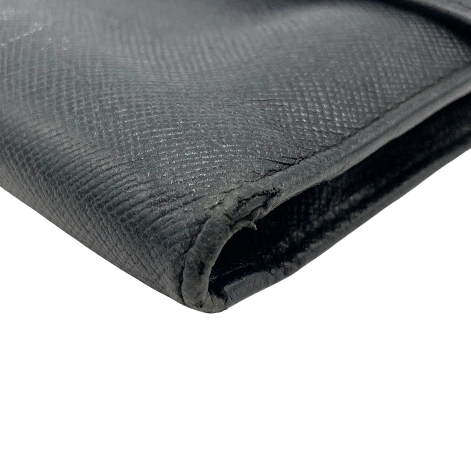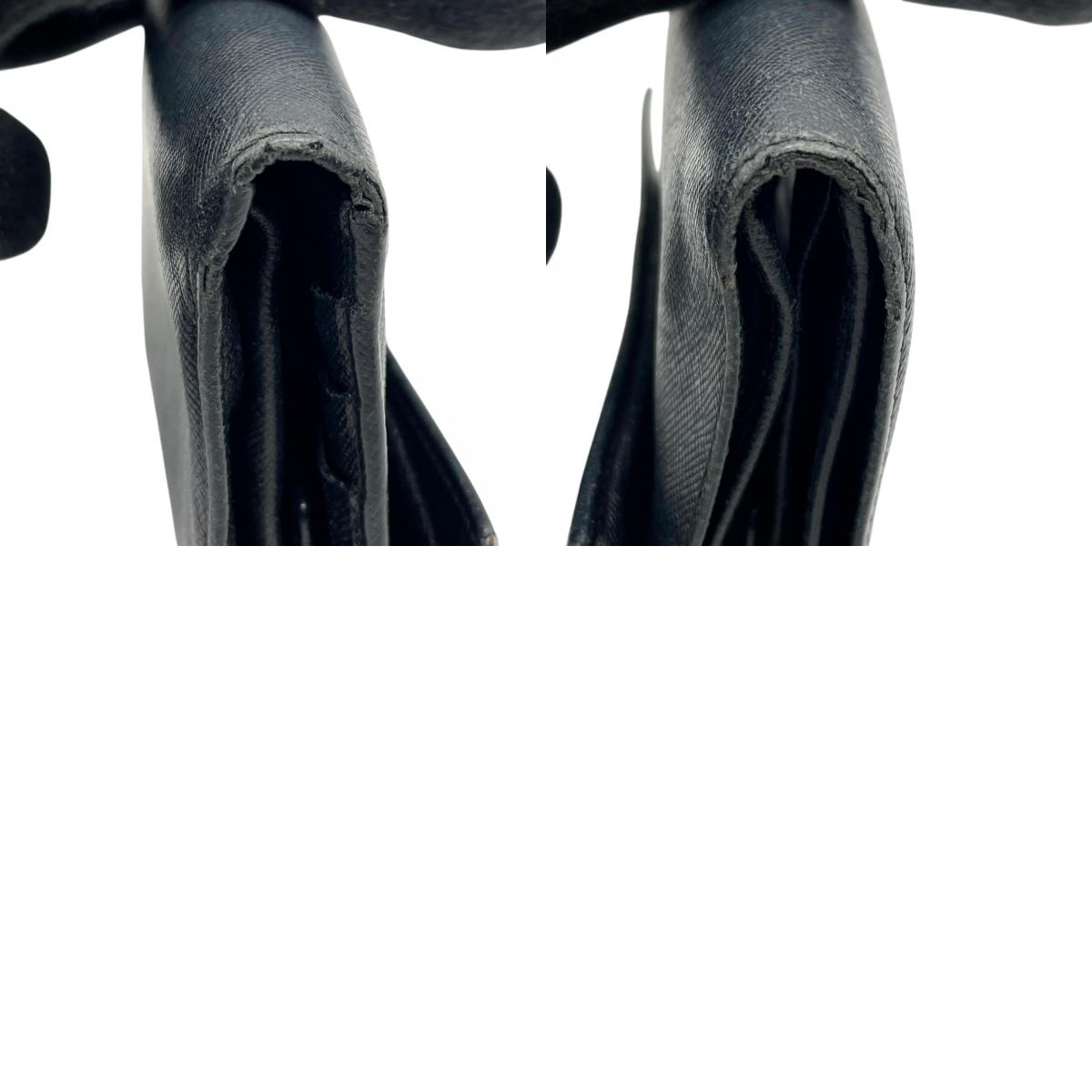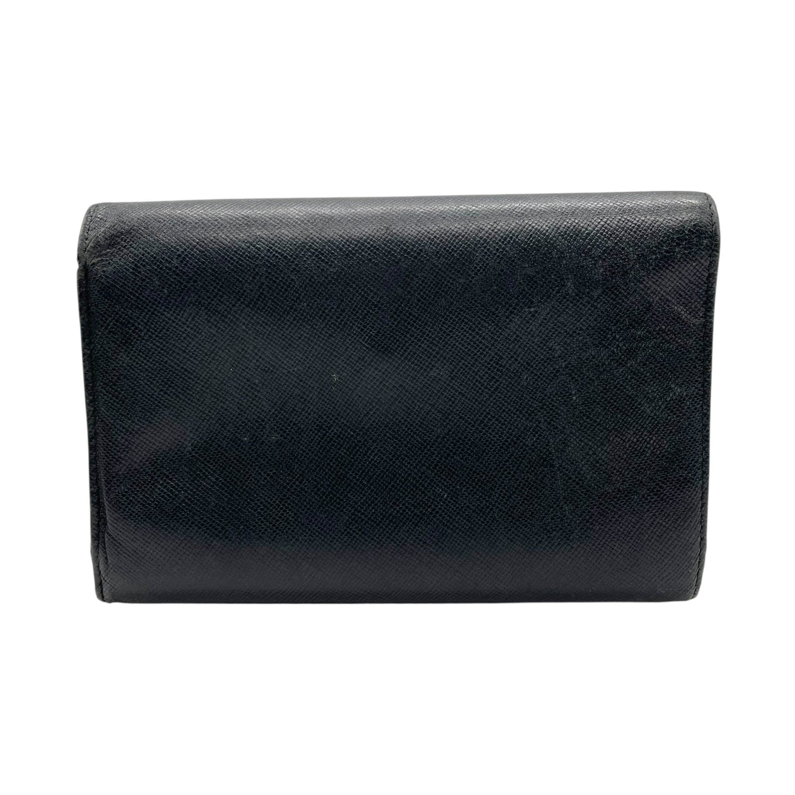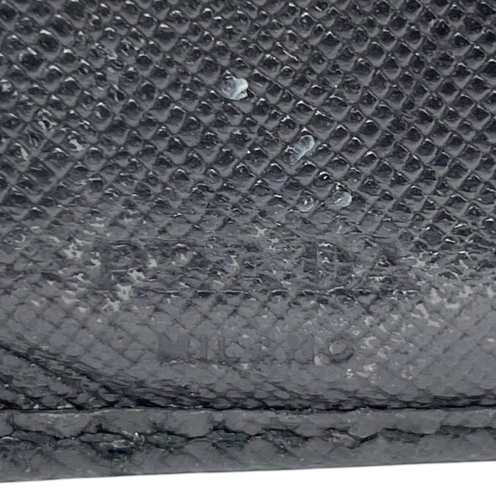 PRADA プラダ 三つ折り財布 コンパクトウォレット フラップ サフィアーノレザー ブラック 三角ロゴ トライアングルロゴ シルバー金具 メンズ レディース W3