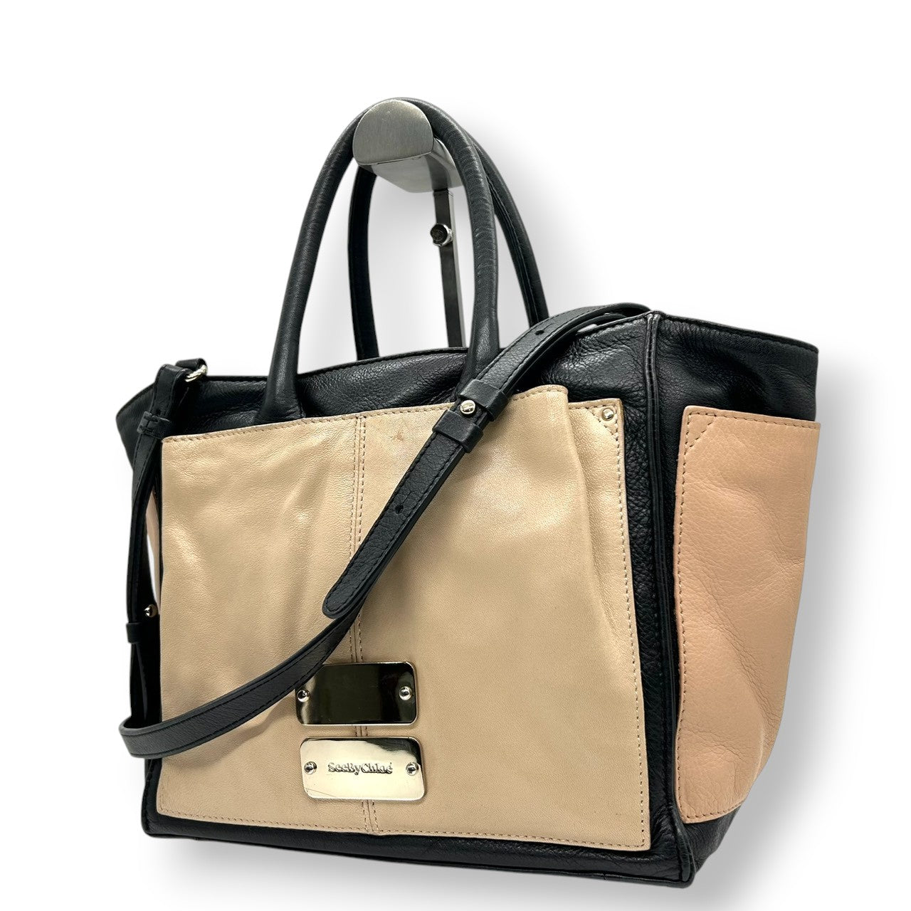 シーバイクロエ APRIL 2WAY ハンドバッグ ショルダーバッグ レザー バイカラー A4可 レディース 斜め掛け可 SEE BY CHLOE ブラック ベージュ 大容量 ロゴプレート 通勤通学 エレガント 自立可 U7
