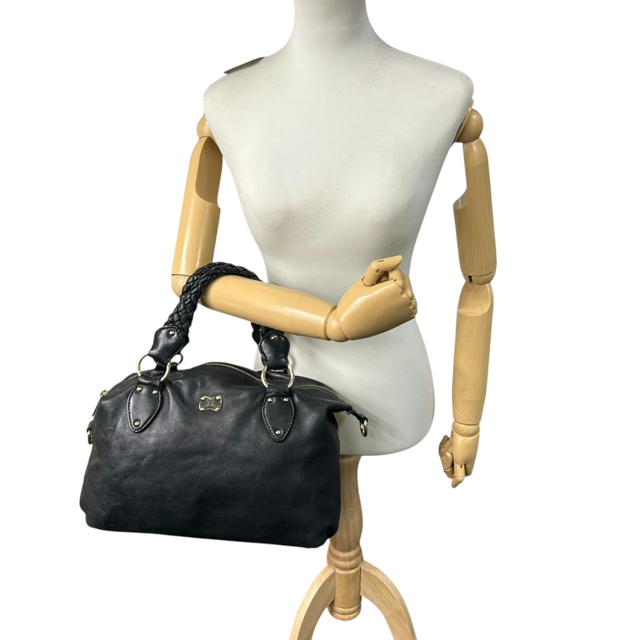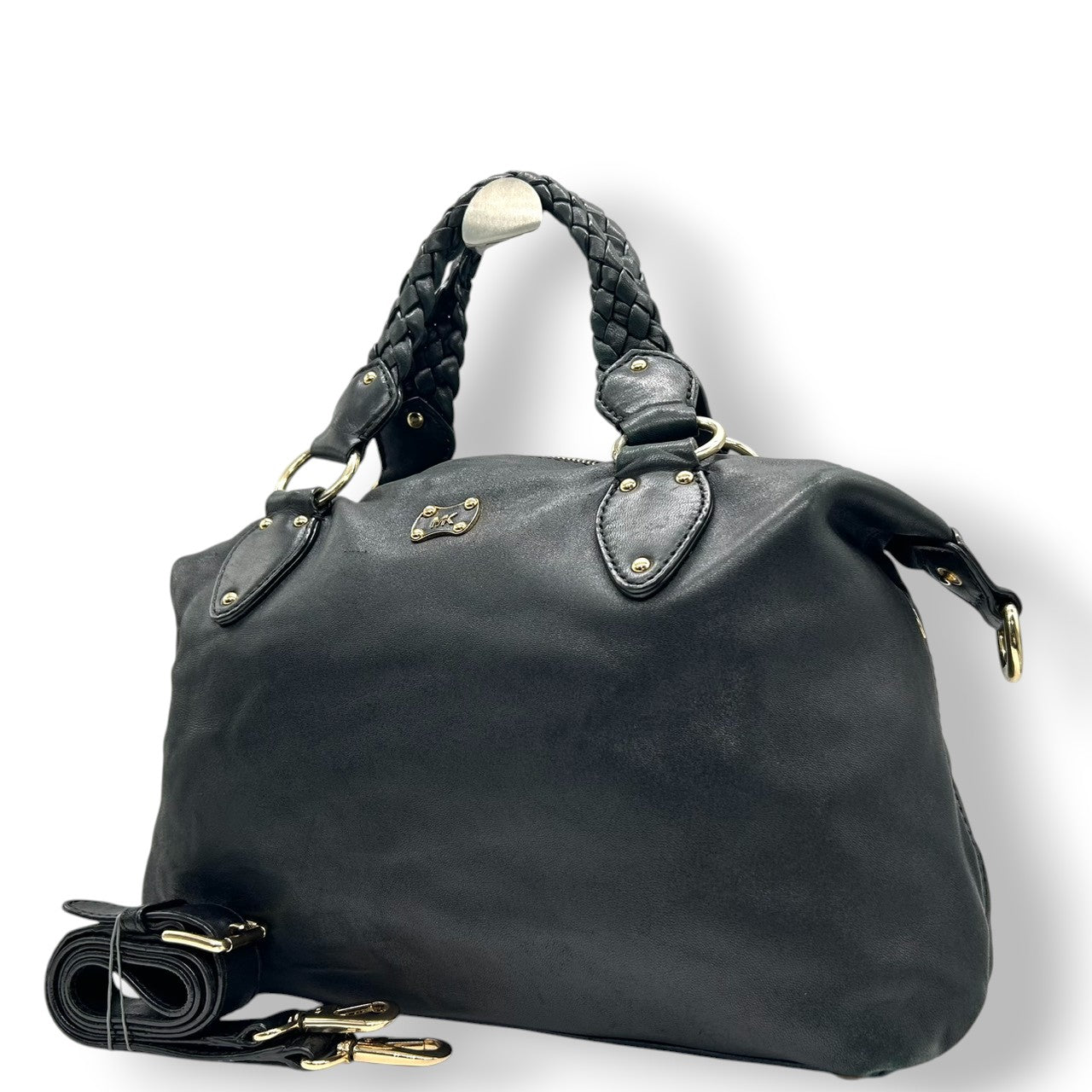マイケルコース 2WAY ハンドバッグ ショルダーバッグ レザー 本革 ブラック 編み込みハンドル レディース 斜め掛け可 MICHAEL KORS ミニボストン ゴールド金具 ロゴプレート エレガント フェミニン 通勤通学デザイン U6