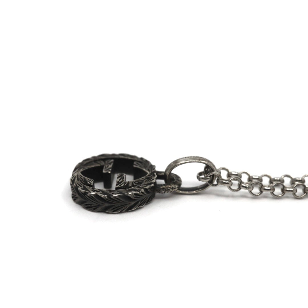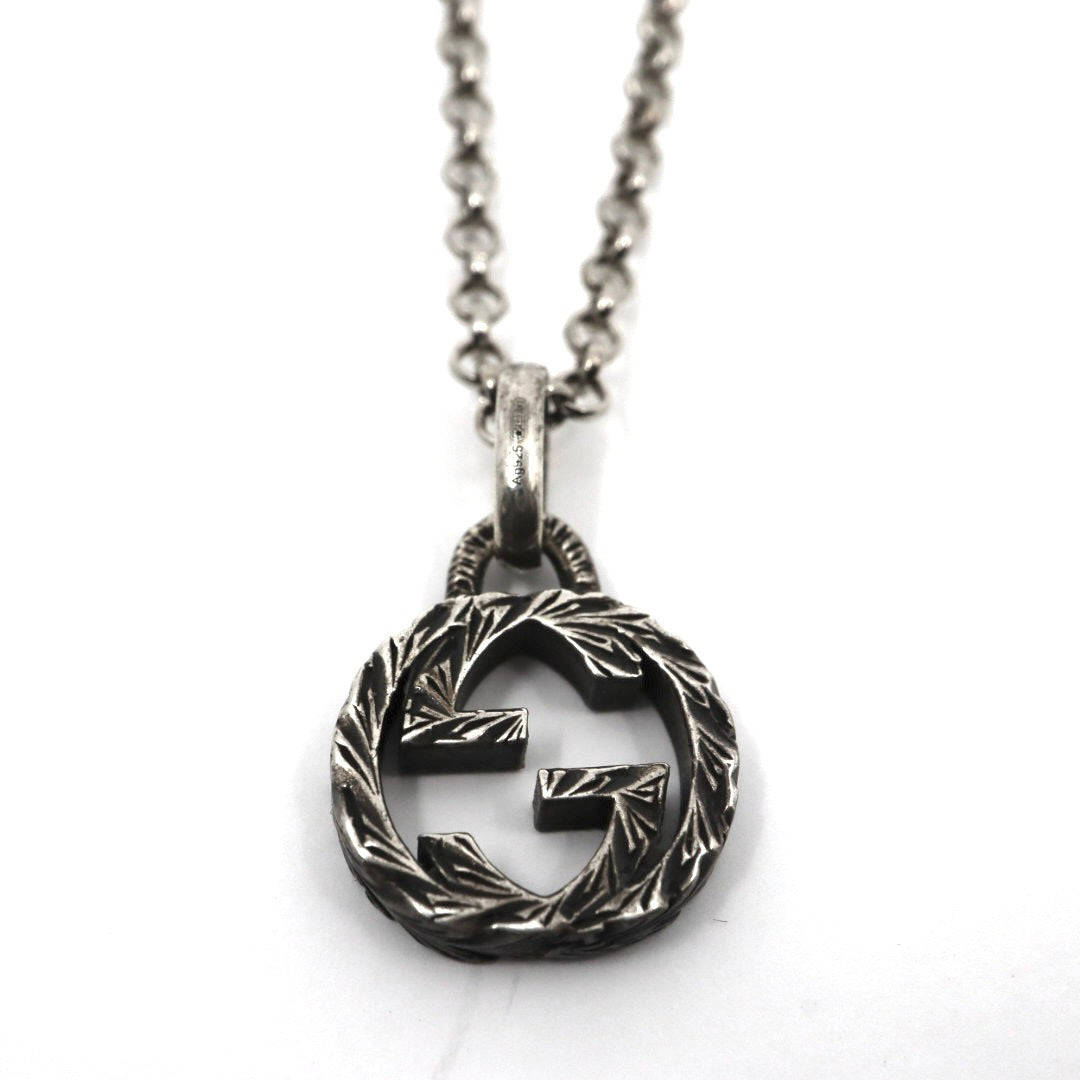 【美品】GUCCI グッチ アラベスク ネックレス インターロッキングG ペンダント シルバー925 スターリングシルバー アクセサリー ジュエリー メンズ レディース I2