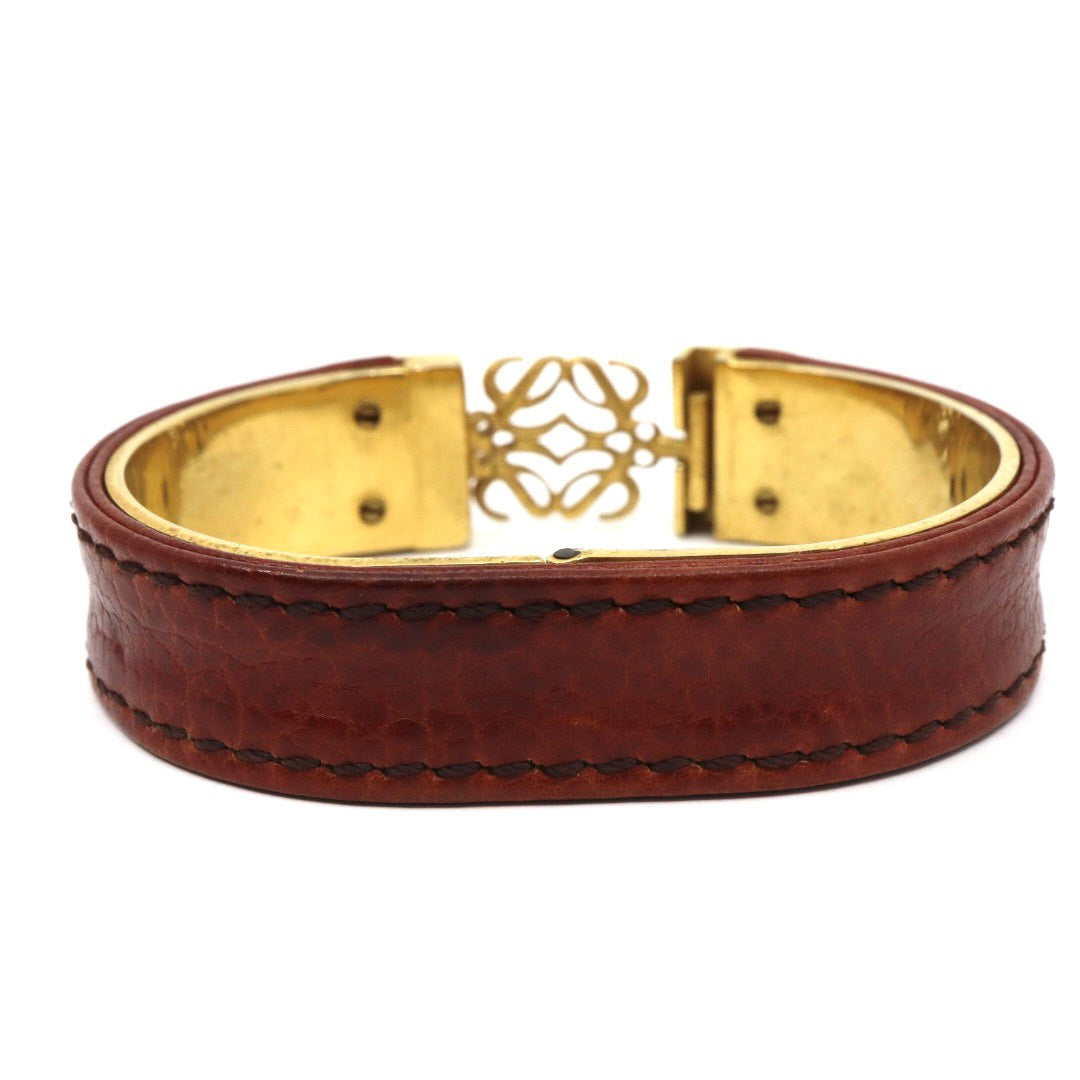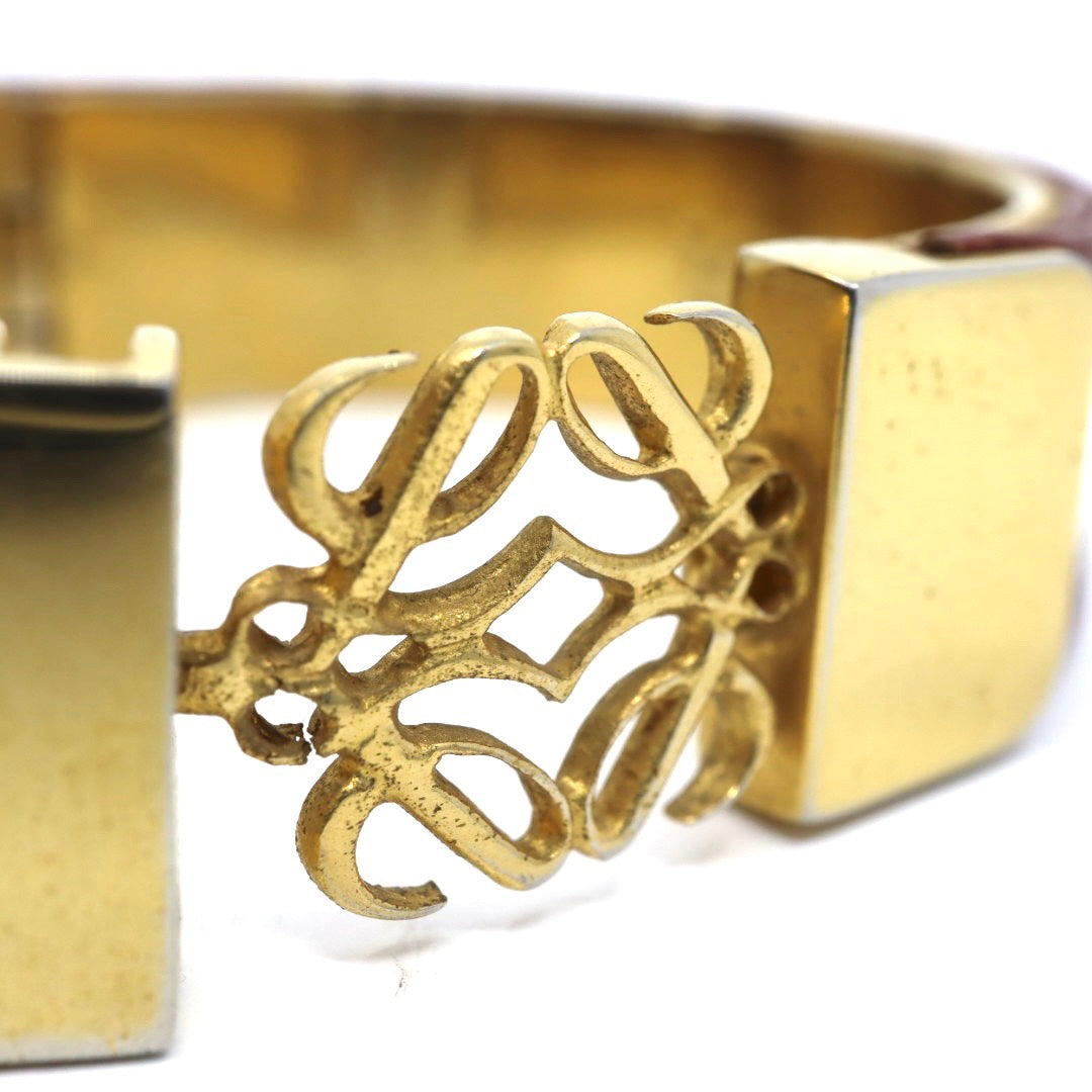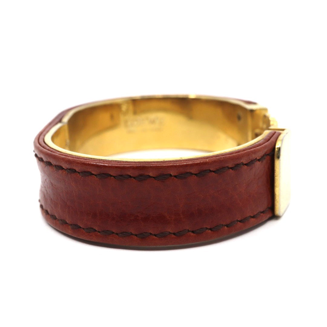 LOEWE ロエベ アナグラム ロゴ バングル ブレスレット レザー GP 茶 ブラウン ゴールドカラー ヴィンテージジュエリー アクセサリー レディース I4