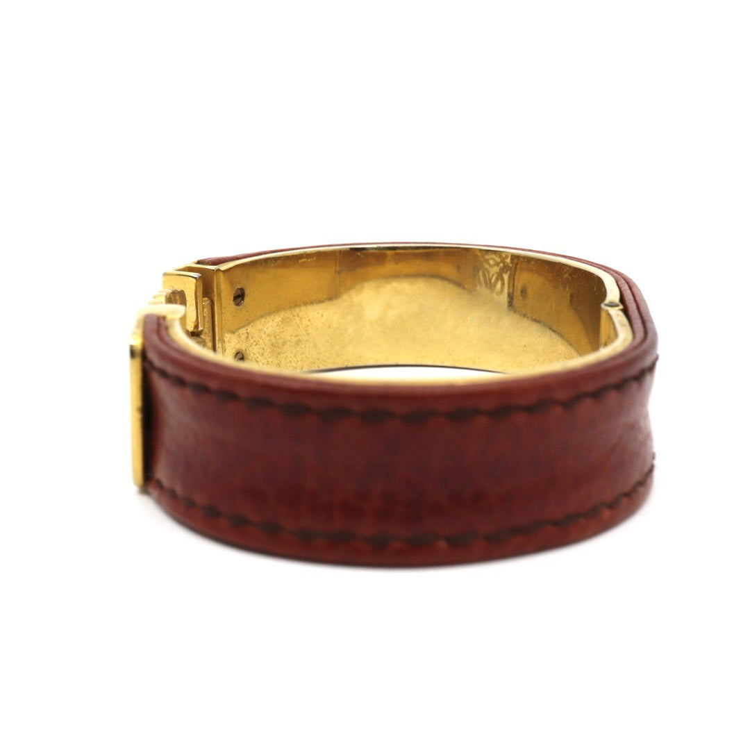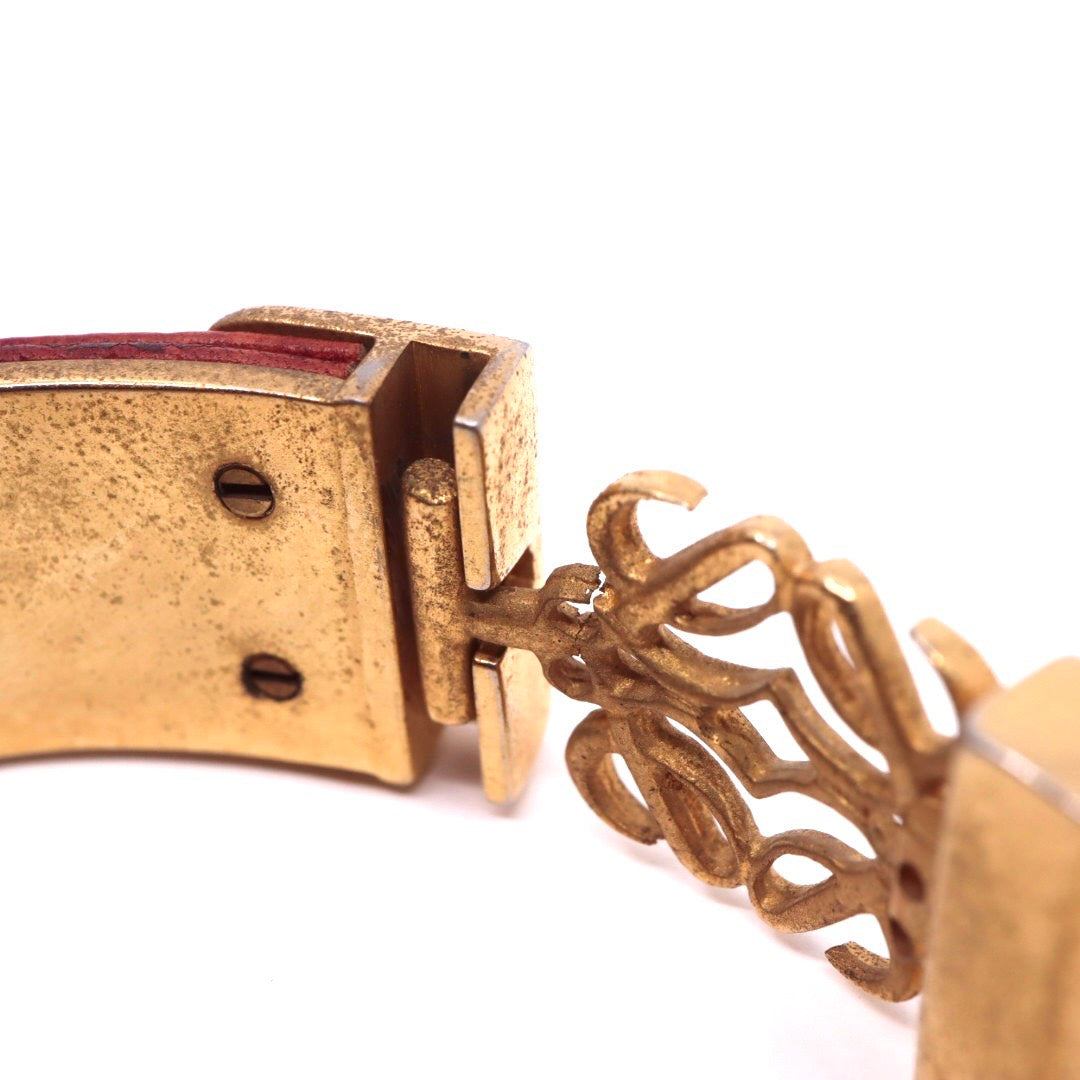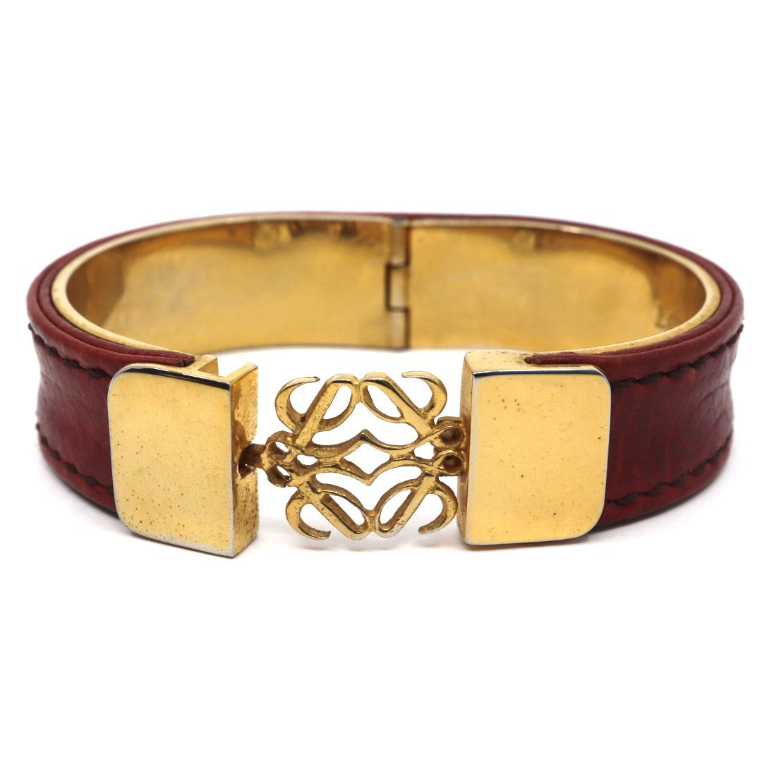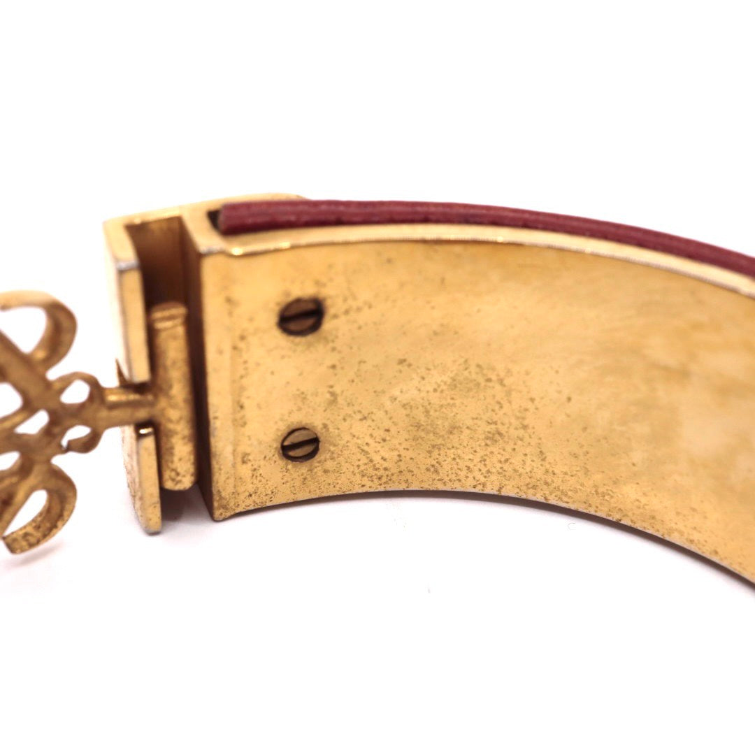 LOEWE ロエベ アナグラム ロゴ バングル ブレスレット レザー GP 茶 ブラウン ゴールドカラー ヴィンテージジュエリー アクセサリー レディース I4