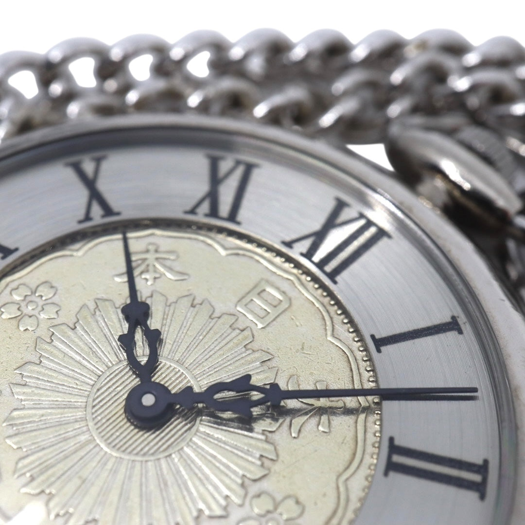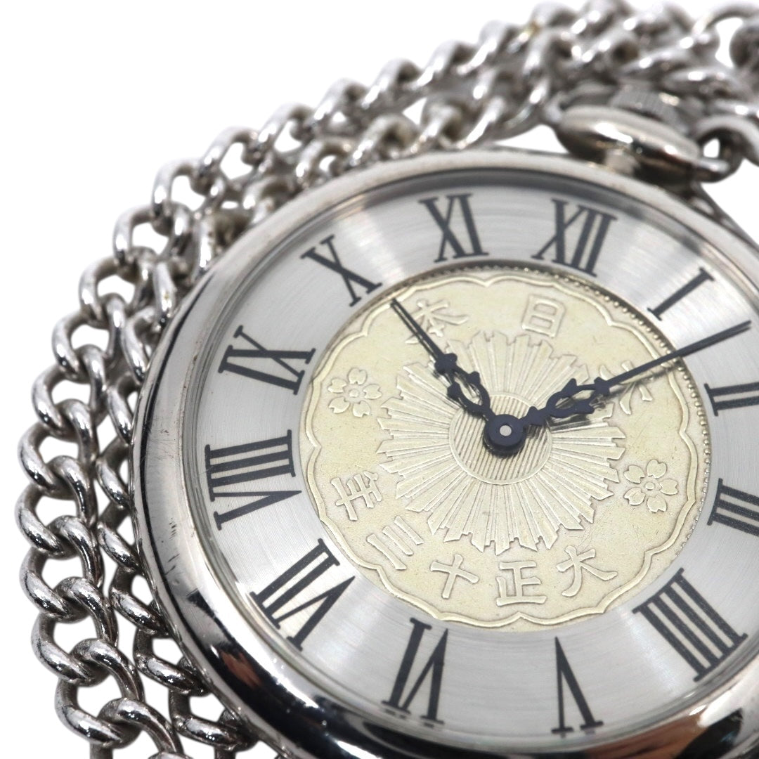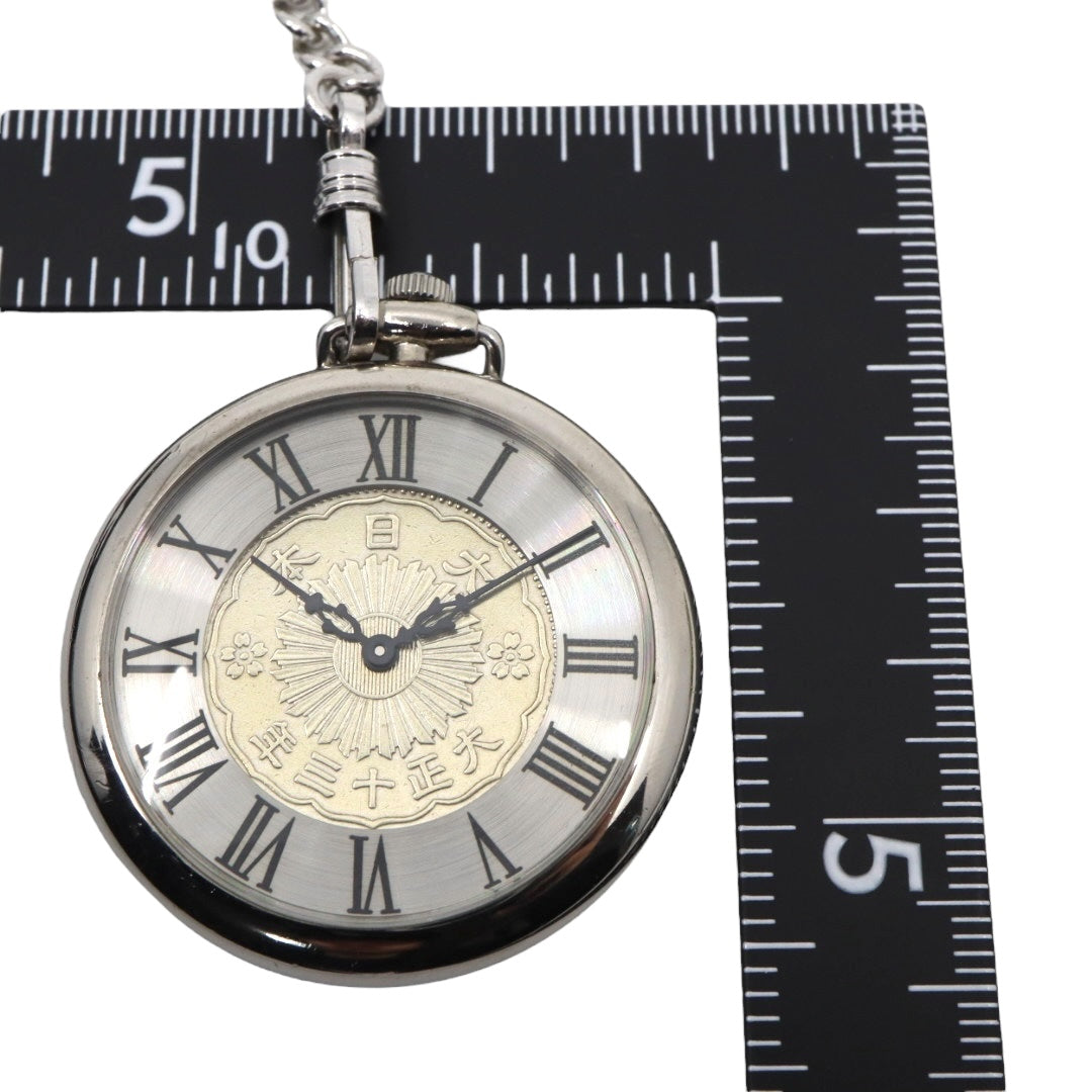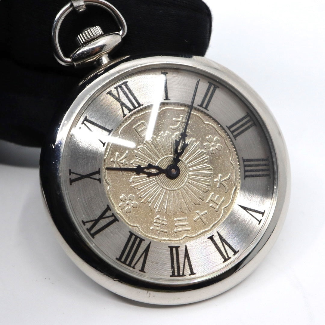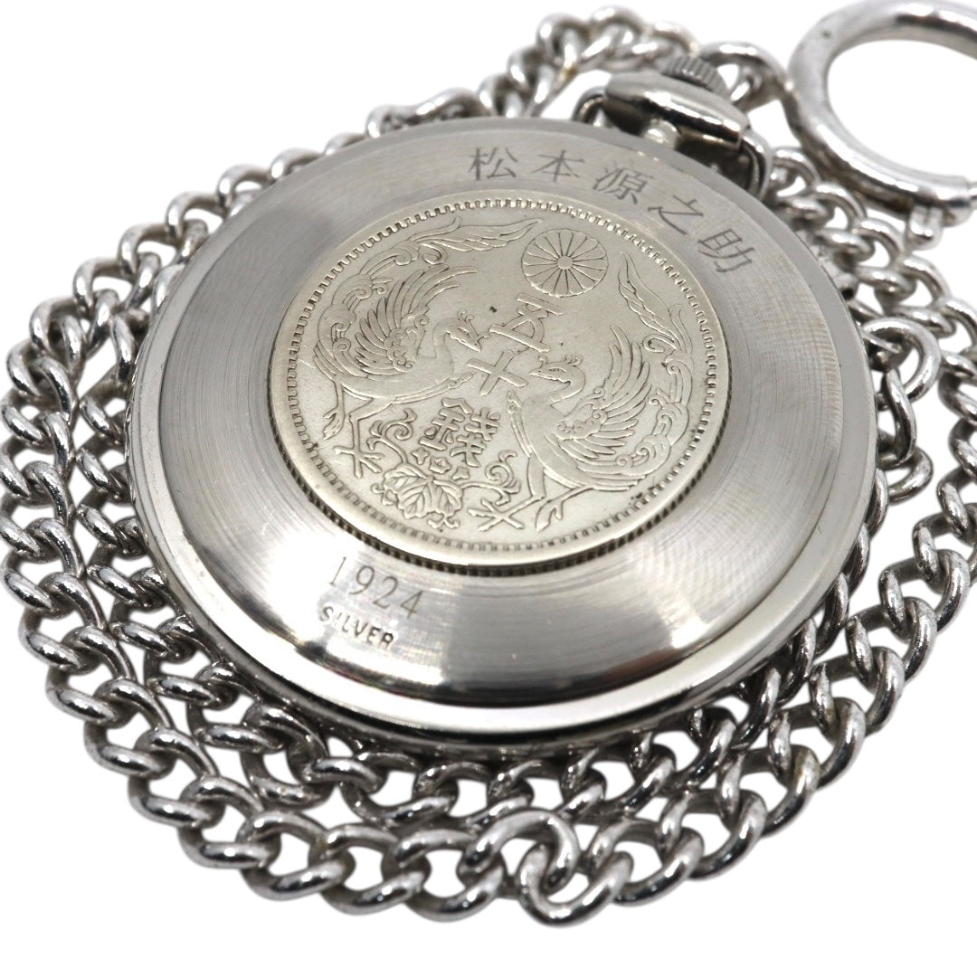 【美品/稼働品】松本徽章 懐中時計 五十銭 硬貨 大正三年 1924年 鳳凰 コインウォッチ アナログ クオーツ ローマンインデックス シルバー チェーン付き クラシック レトロ ヴィンテージ 和風 日本 コレクション G9