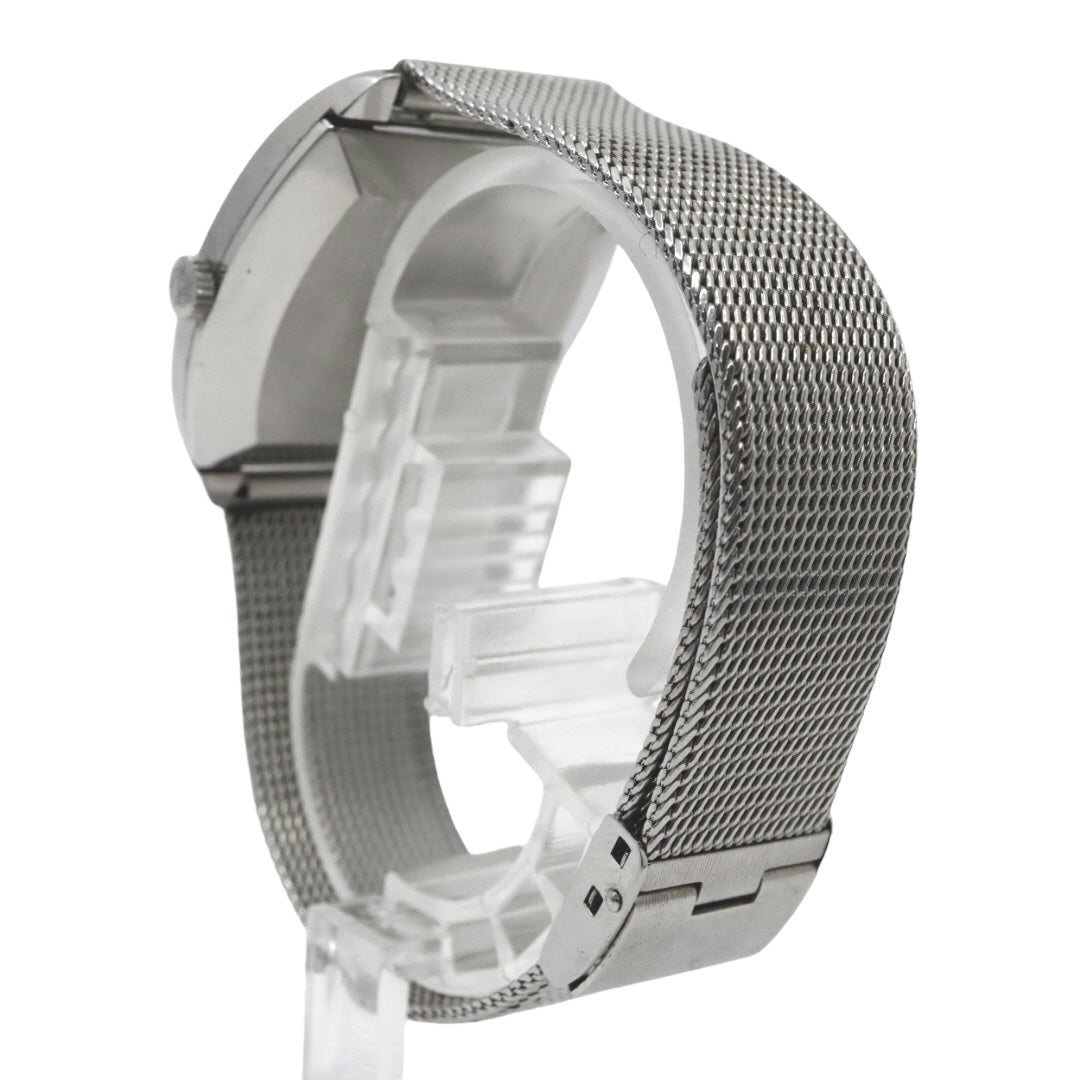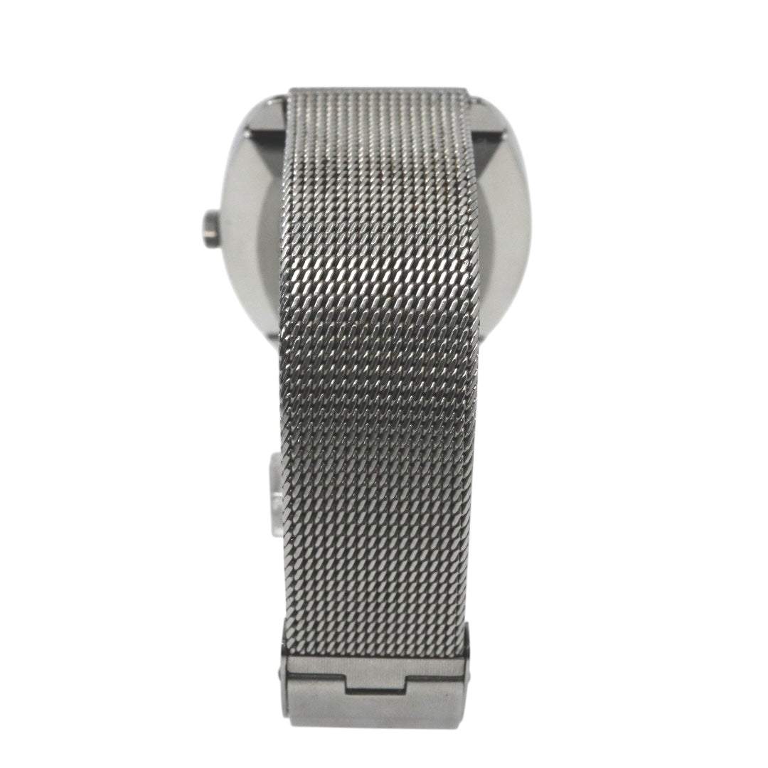 | 商品説明 | 1960年代後期から1970年代初期にかけて製造された、ロンジンの名作「フラッグシップ HF」自動巻き腕時計。 当時の技術を象徴するハイビート(High Frequency)ムーブメントを搭載した、ヴィンテージファン垂涎の一本です。 クッション型のステンレススチールケースは約35.8mm(リューズ除く)の程よいサイズで、クラシックな存在感を放ちます。 アイボリーカラーの文字盤には経年による変化が見られ、ヴィンテージならではの味わいを感じさせる雰囲気です。 ステンレス製のメッシュブレスレットが組み合わされており、手首周り約14〜18cmに対応します。 【仕様】 ・モデル名:Flagship HF ・ムーブメント:自動巻き(オートマチック) ・ケース素材:ステンレススチール ・ケースサイズ:約35.8mm(リューズ除く) ・文字盤カラー:アイボリー(経年変化あり) ・ブレスレット:ステンレススチール メッシュタイプ(約14〜18cm対応) ハイビートムーブメントが刻む滑らかな秒針の動きと、時代を超えたクラシカルなデザイン。 オリジナルの風合いを大切にするコレクターや、レストアベースとして楽しみたい愛好家にもおすすめのヴィンテージタイムピースです。 |