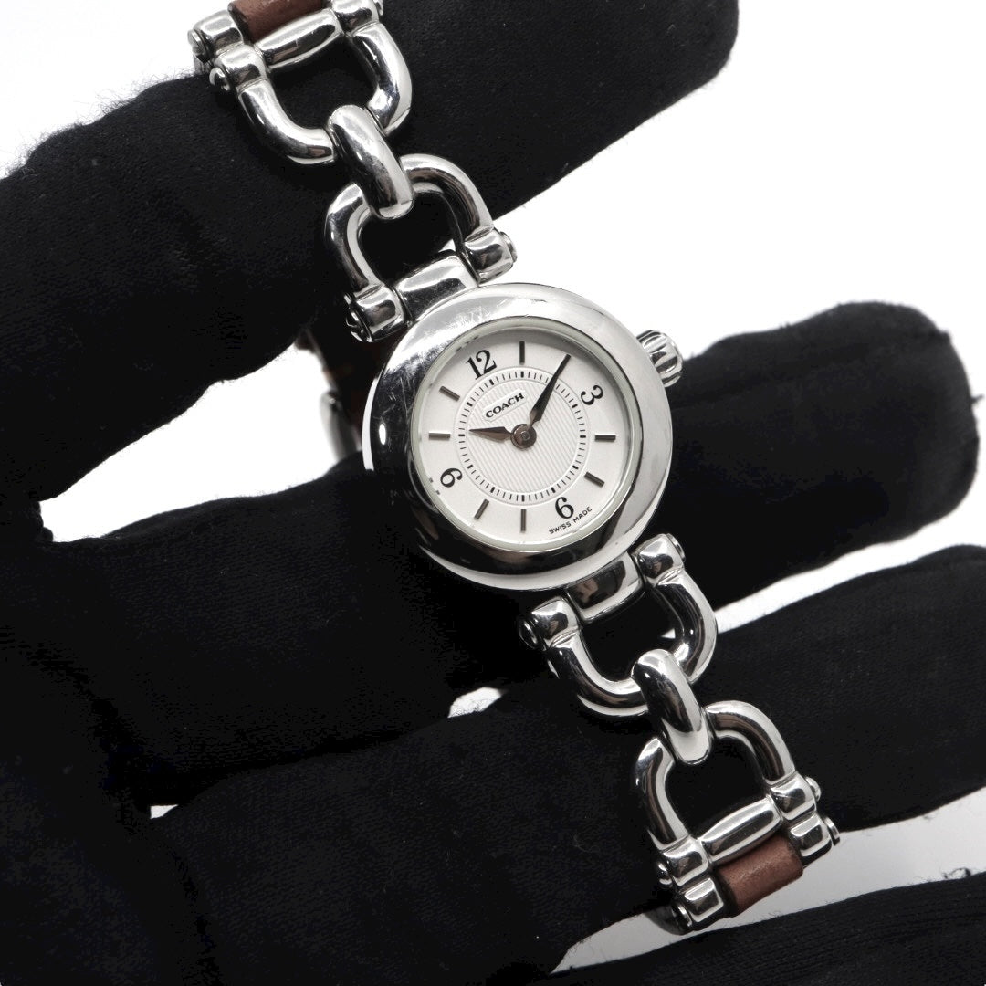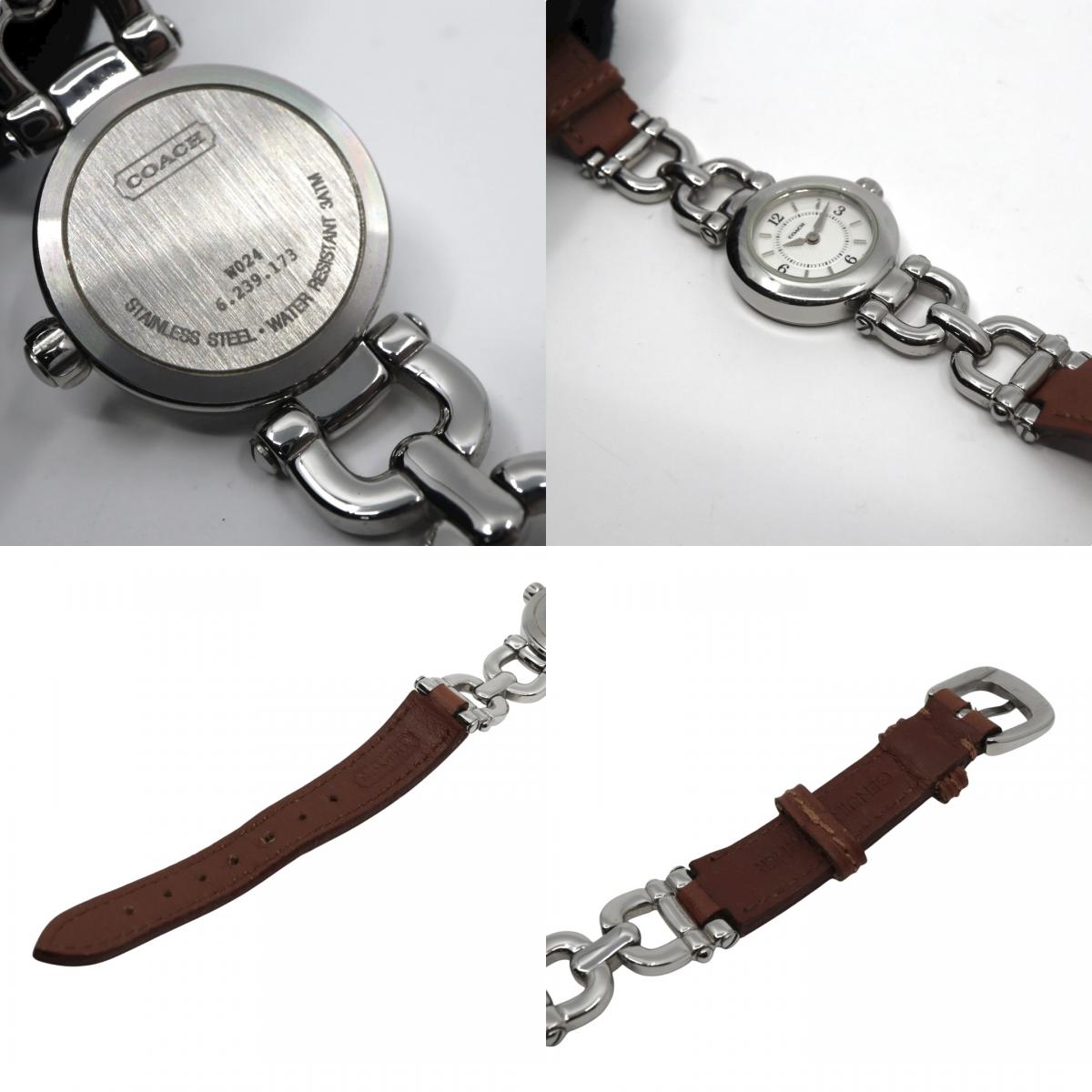 コーチ COACH 腕時計 レディース クォーツ 白文字盤 シルバー レザーベルト 6.239.173 アナログ ウォッチ 上品 エレガント ビジネス フォーマル カジュアル シンプル 希少 レア 馬車ロゴ クラシック 1023H046-1 G10