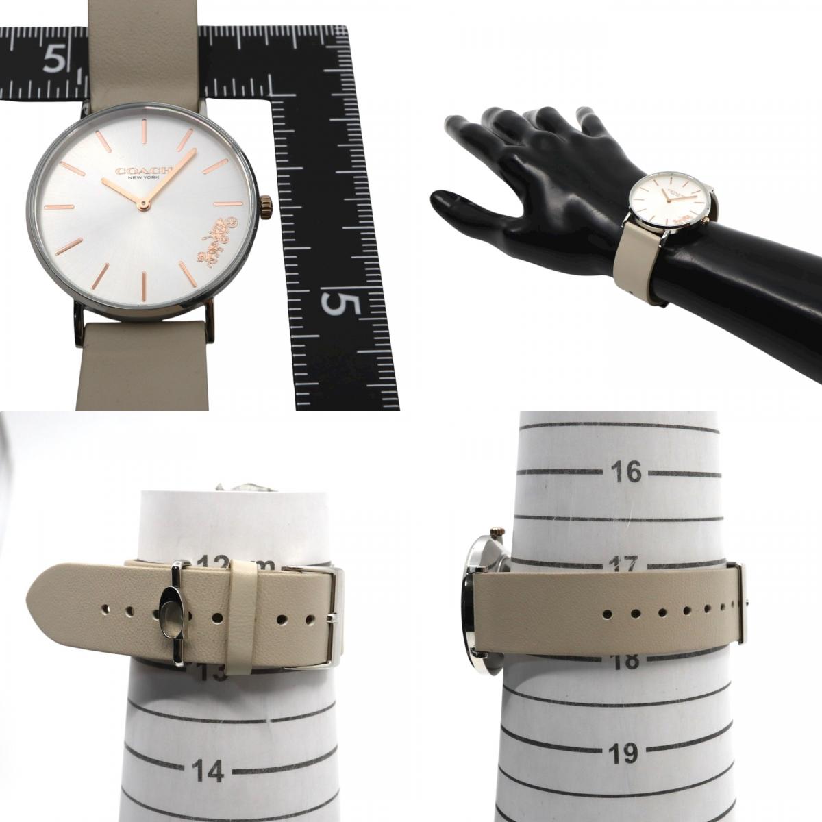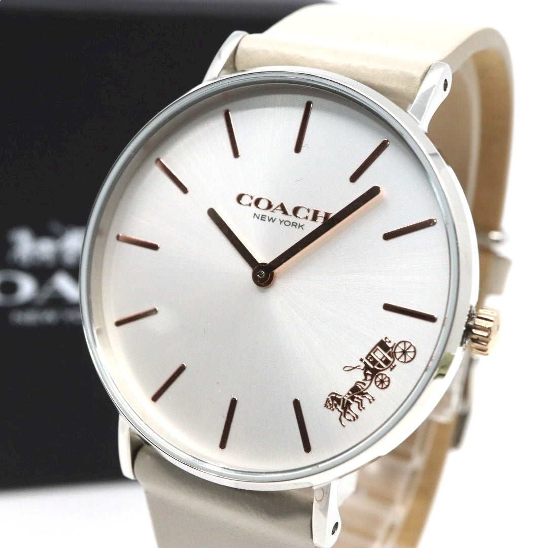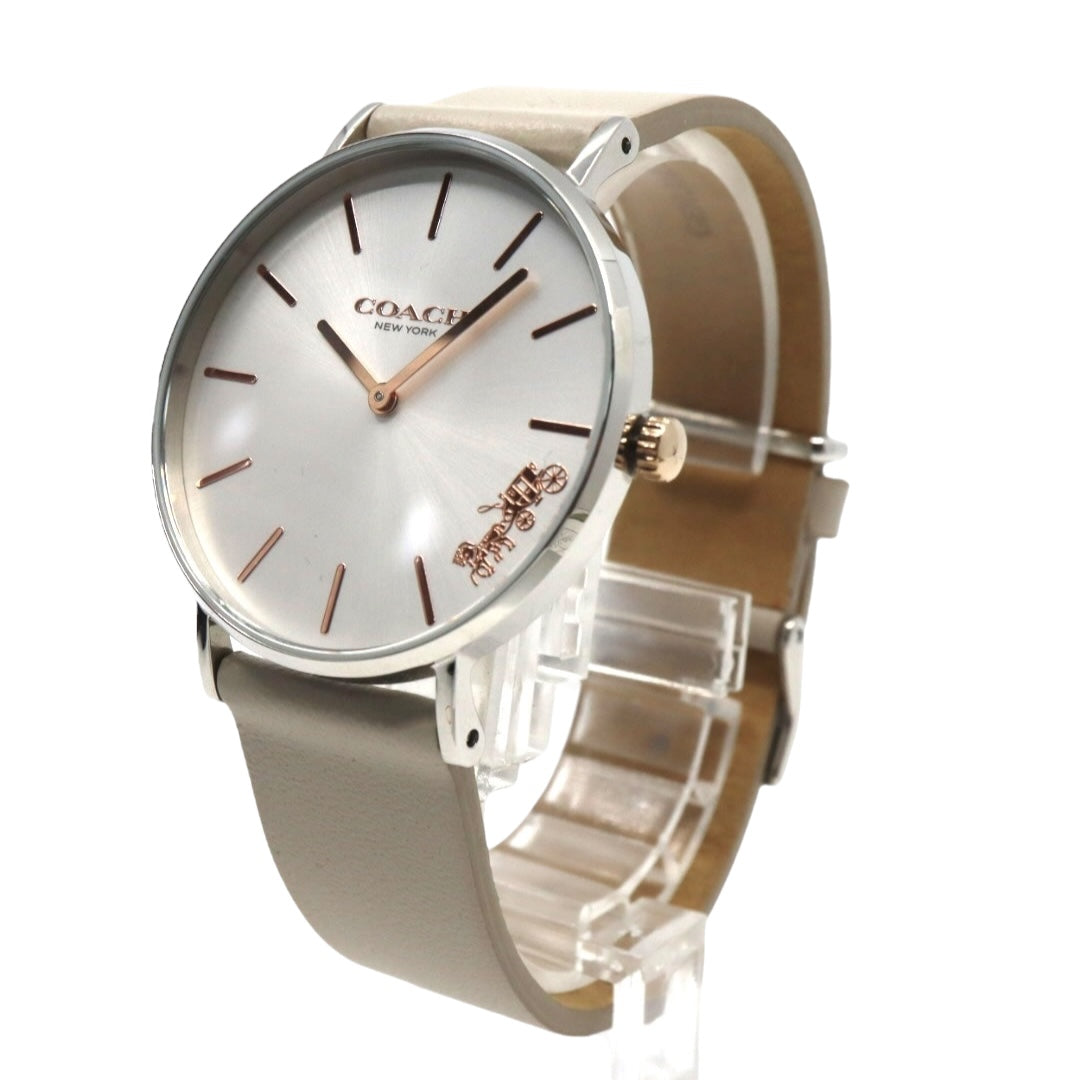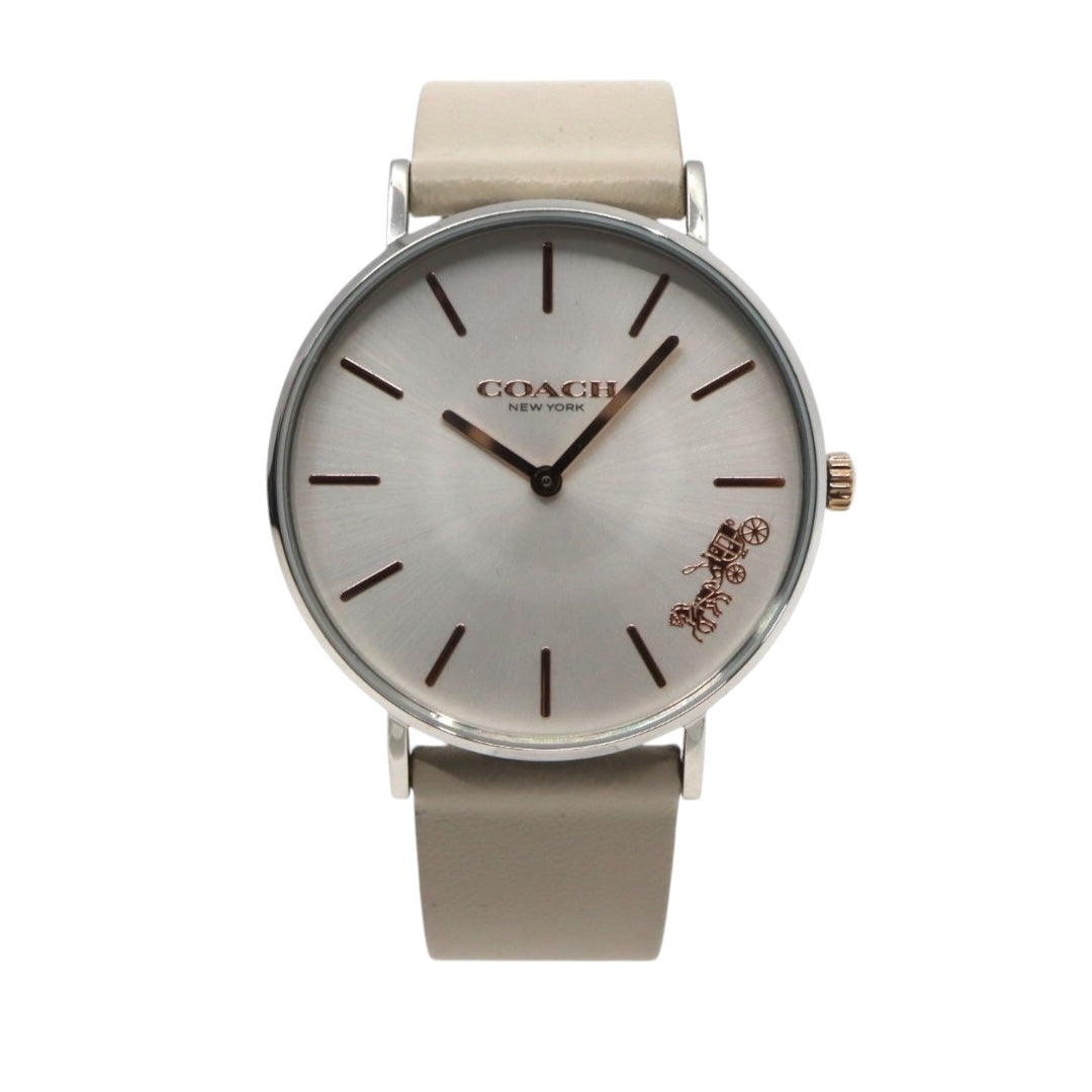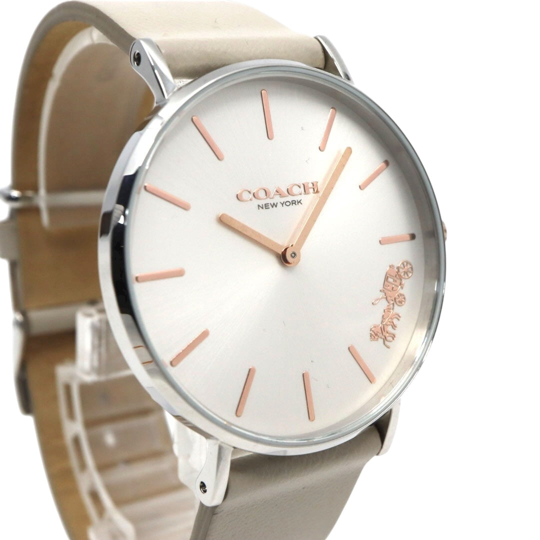 【未使用級】コーチ COACH 腕時計 レディース ペリー Perry シルバー グレージュ レザー CA.120.7.1594 クォーツ アナログ 2針 シンプル オフィス ビジネス 通勤 通学 エレガント 上品 クラシック 大人 馬車ロゴ 美品 G11