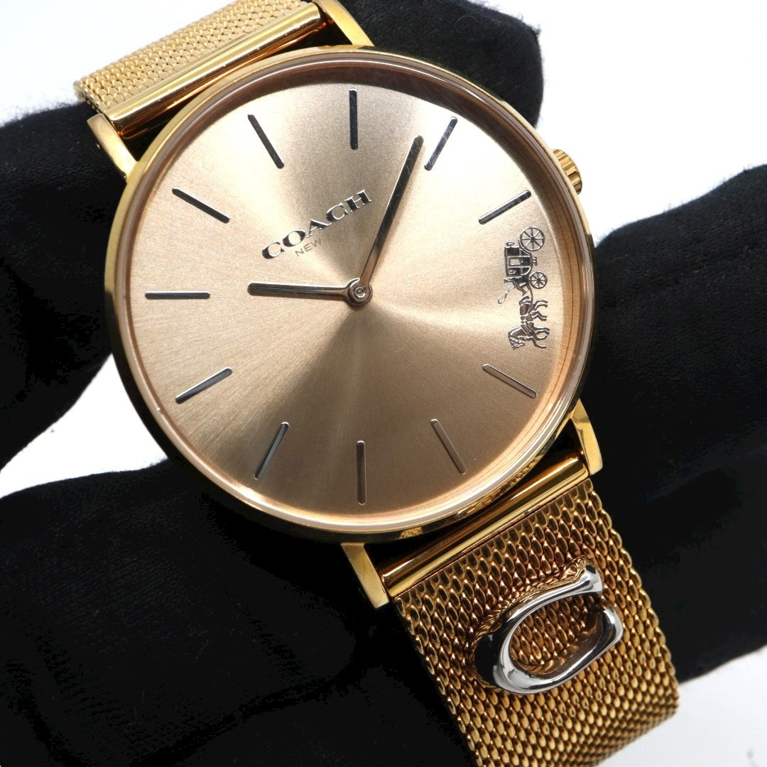 コーチ COACH 腕時計 レディース クォーツ ペリー Perry ゴールド メッシュベルト CA.120.7.34.1710 アナログ ウォッチ ホースアンドキャリッジ 馬車ロゴ エレガント 上品 モダン クラシック 美品 ほぼ新品 希少 G10