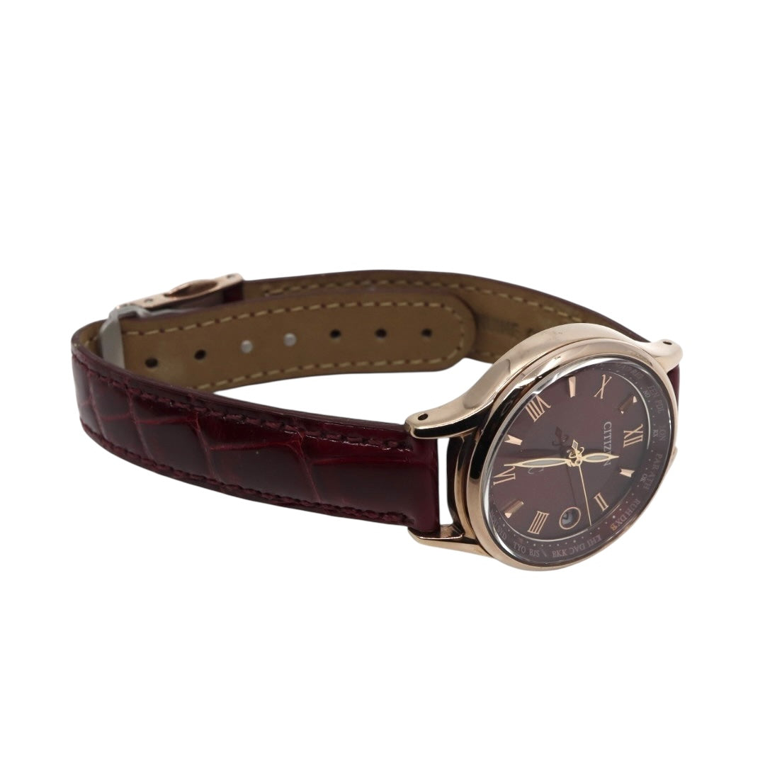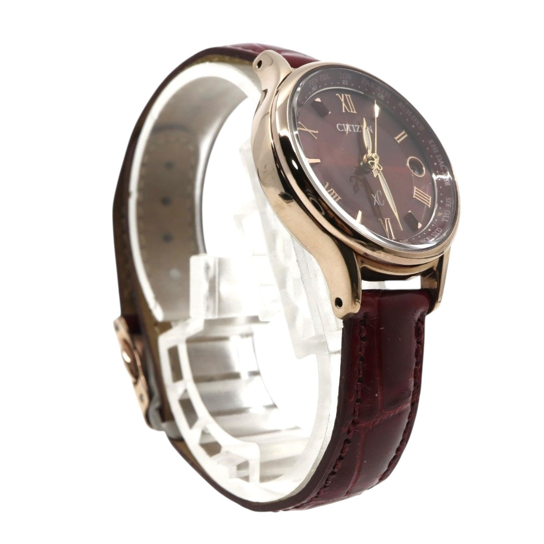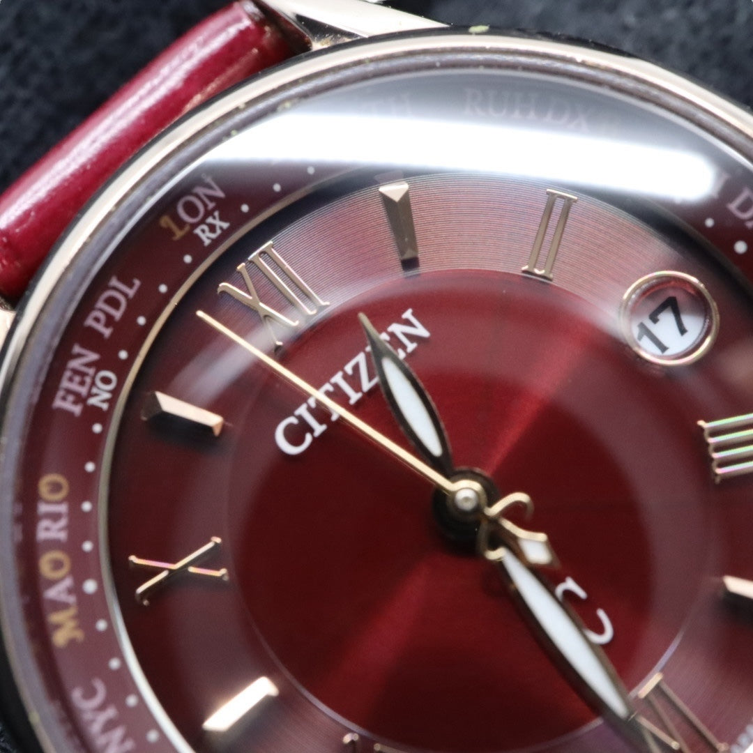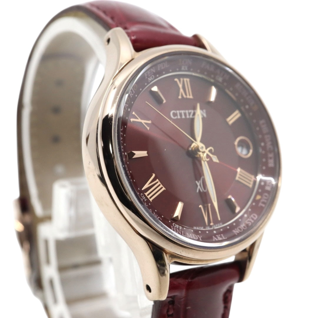 【美品】シチズン xC クロスシー 腕時計 エコドライブ電波時計 H246 チタン ローズゴールド レッド サンバースト レザーベルト レディース G4