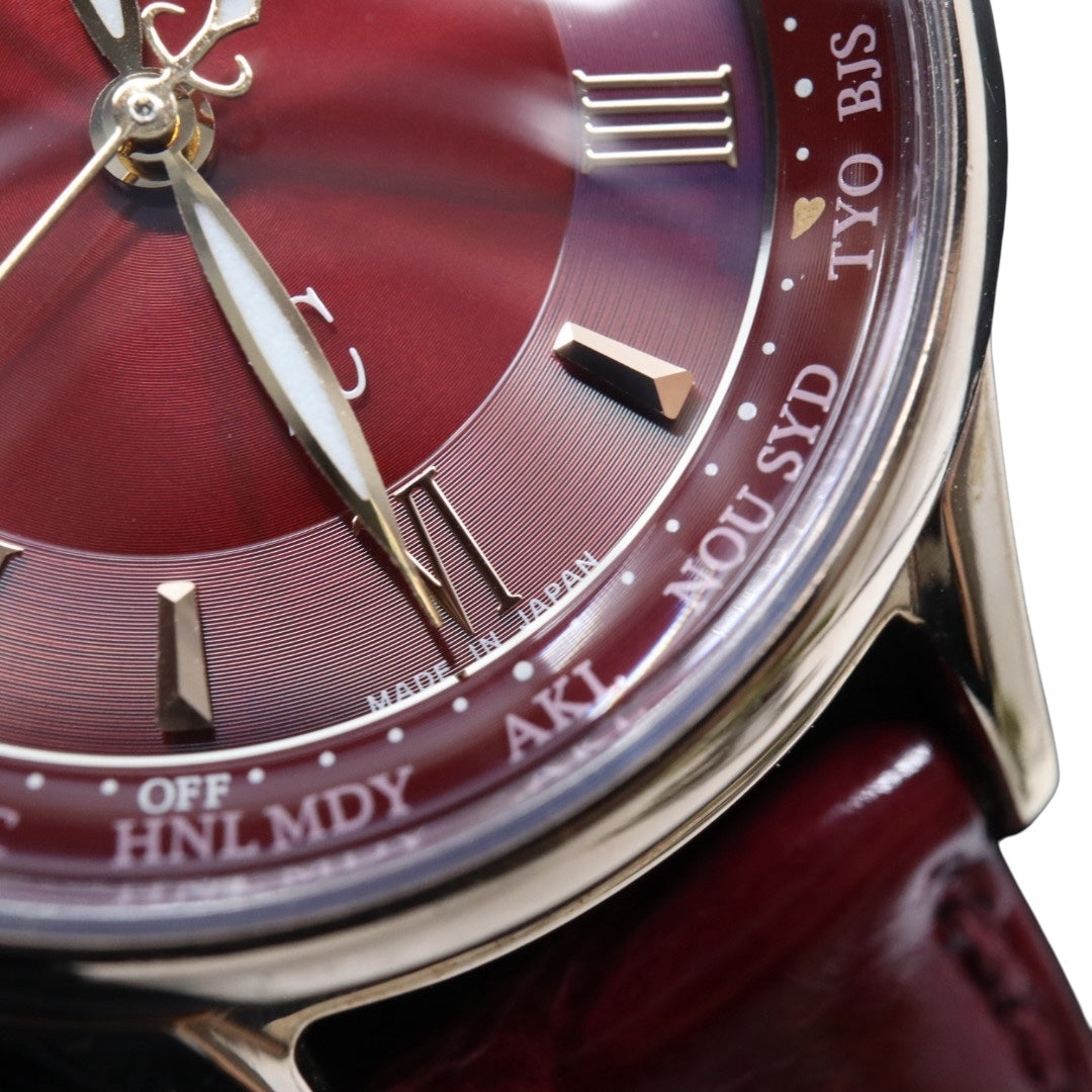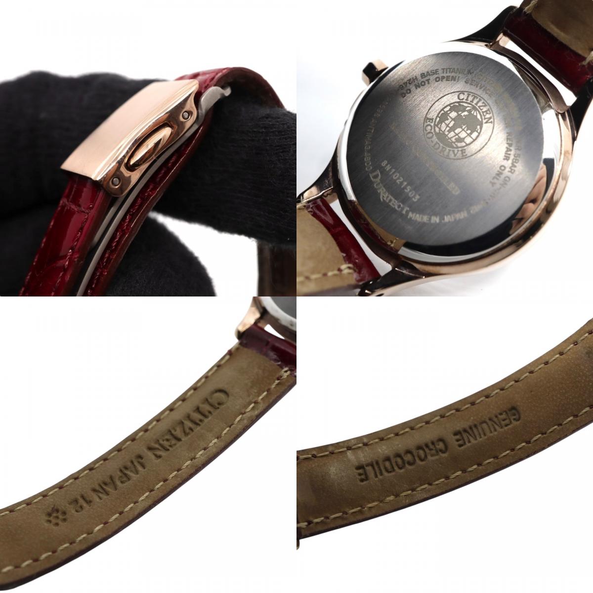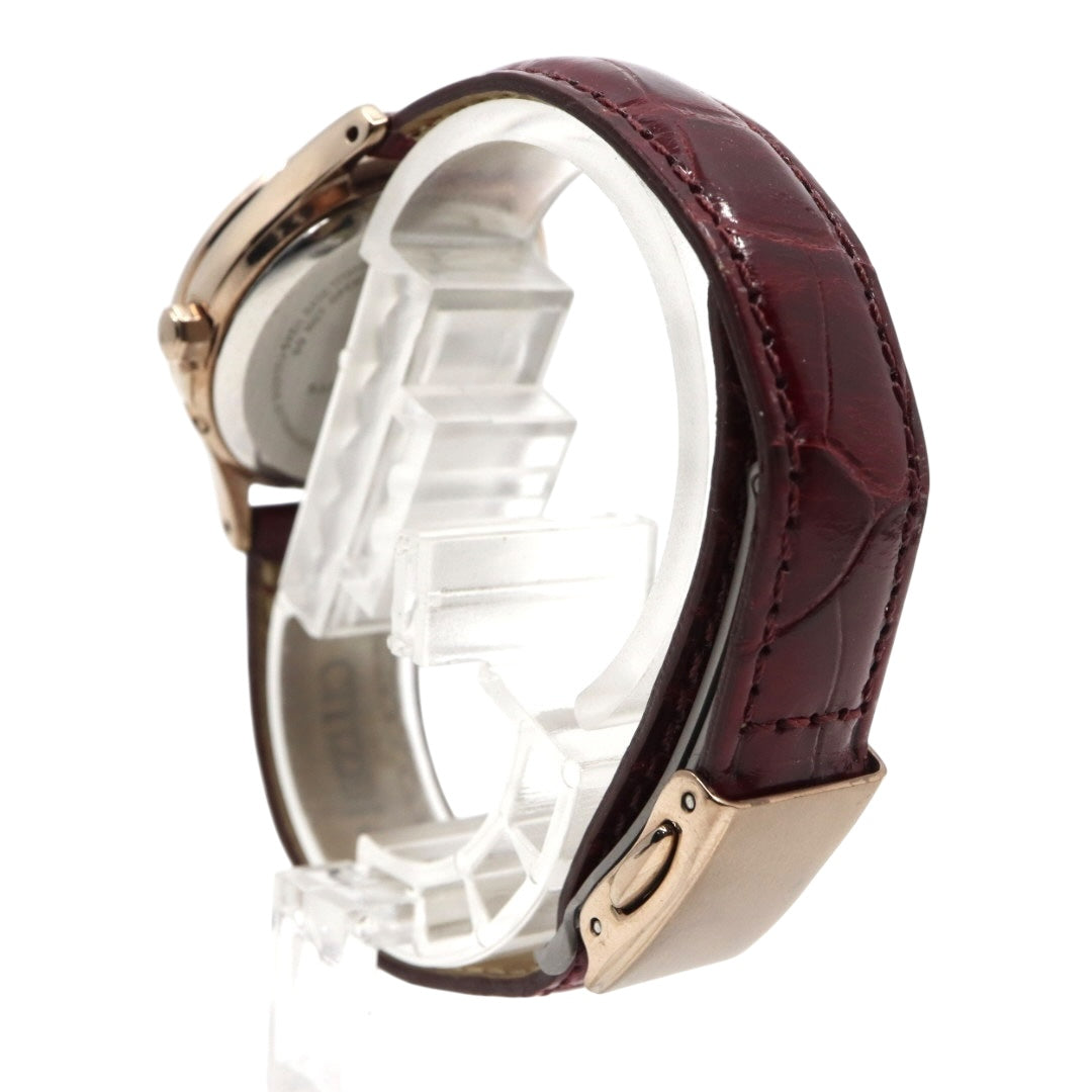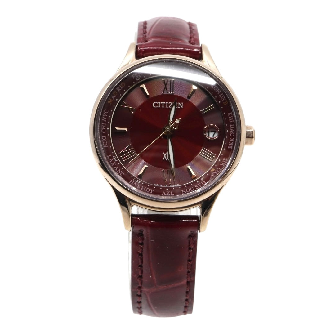 【美品】シチズン xC クロスシー 腕時計 エコドライブ電波時計 H246 チタン ローズゴールド レッド サンバースト レザーベルト レディース G4