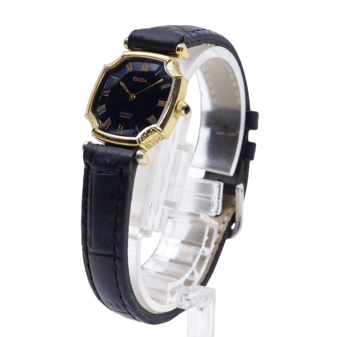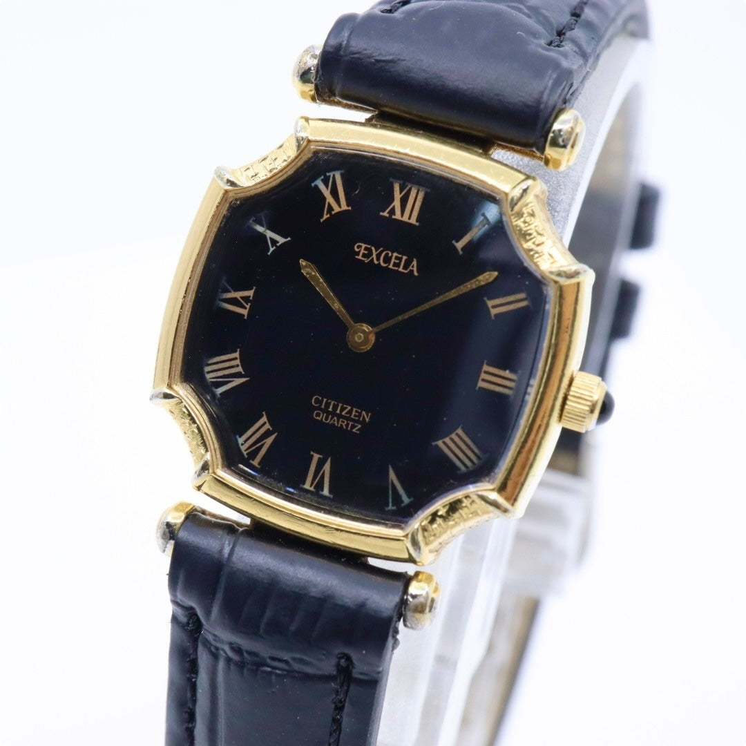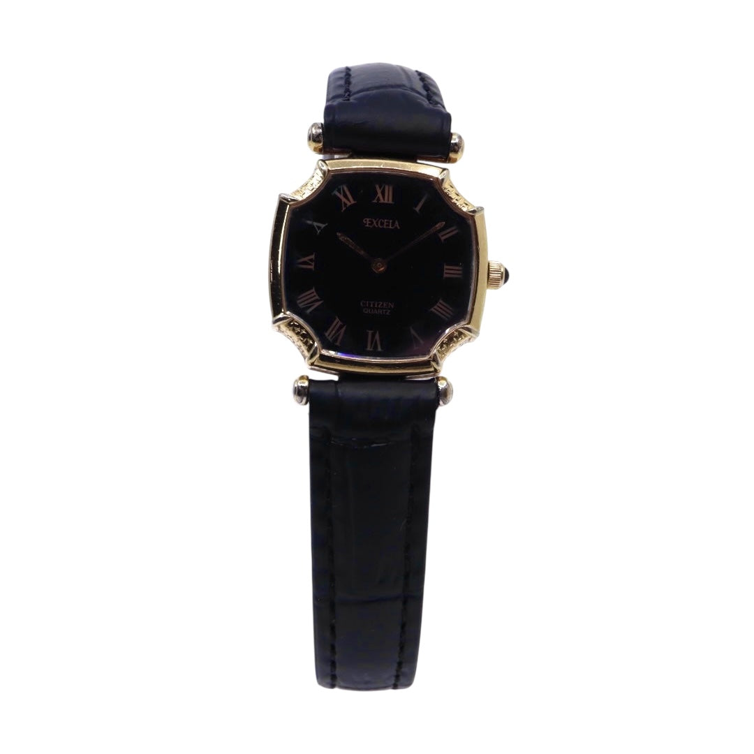 【稼働品/新品ベルト】シチズン エクセラ 腕時計 2200-221389 レディース クオーツ アナログ ローマンインデックス ブラック文字盤 ゴールド GP レザー ドレスウォッチ クラシック エレガント ヴィンテージ G9