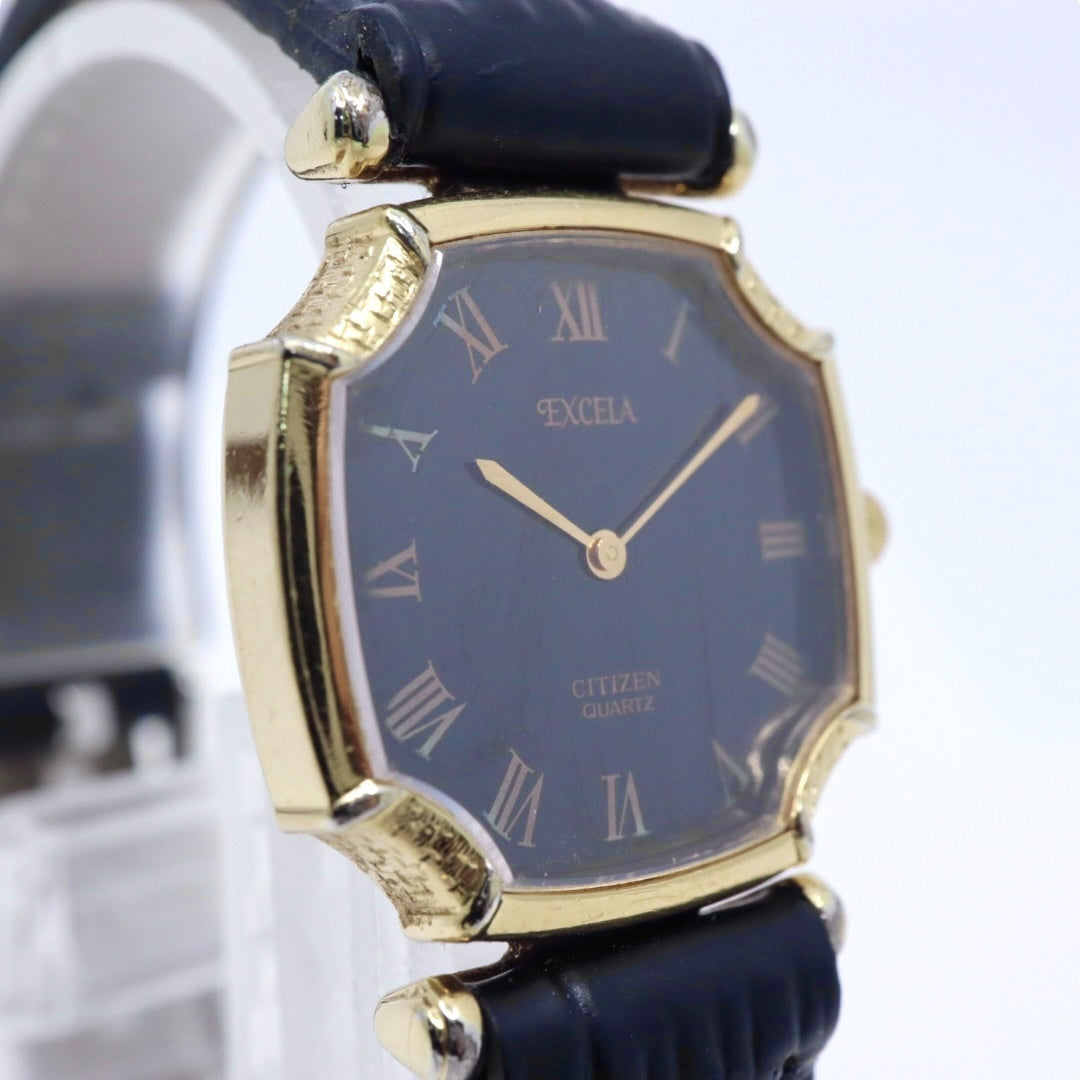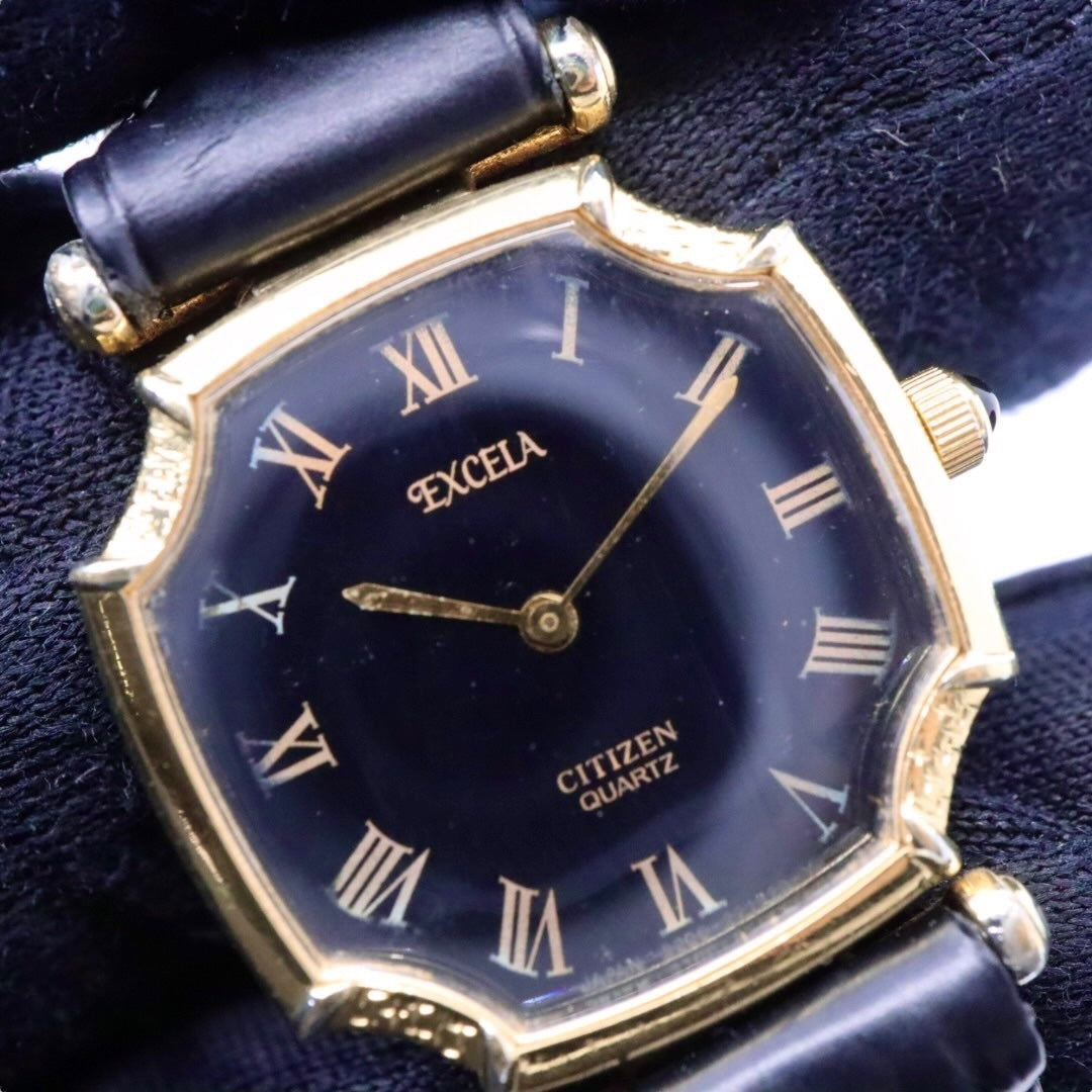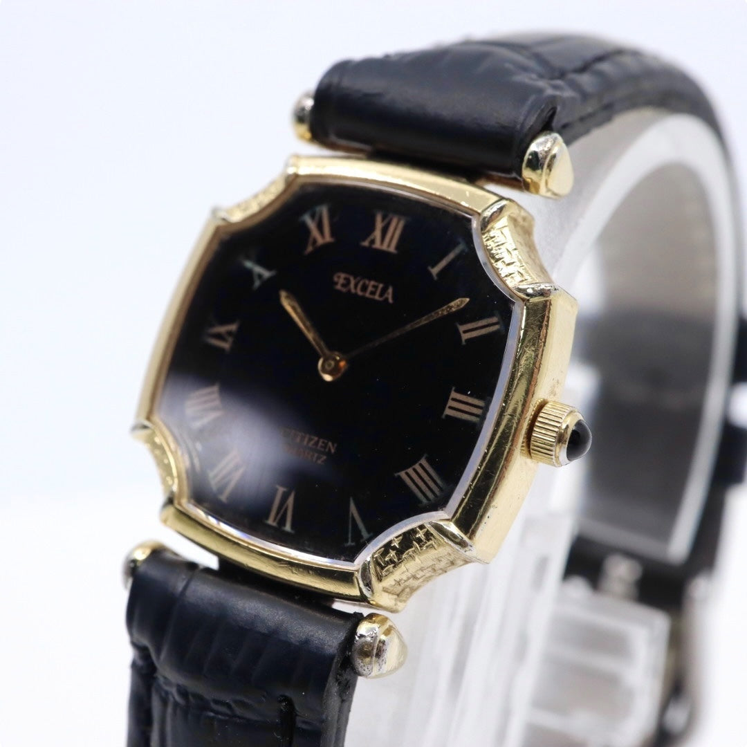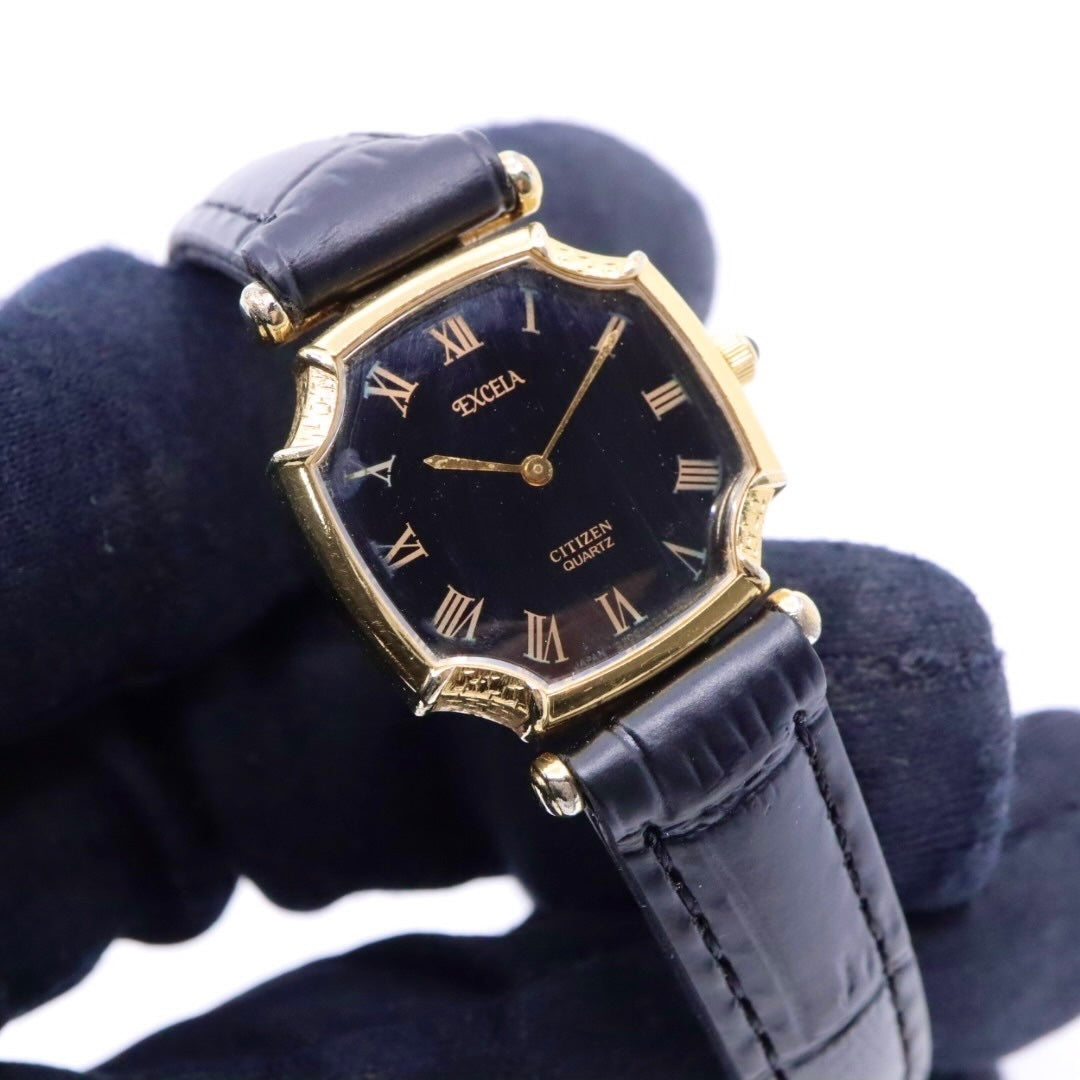 【稼働品/新品ベルト】シチズン エクセラ 腕時計 2200-221389 レディース クオーツ アナログ ローマンインデックス ブラック文字盤 ゴールド GP レザー ドレスウォッチ クラシック エレガント ヴィンテージ G9