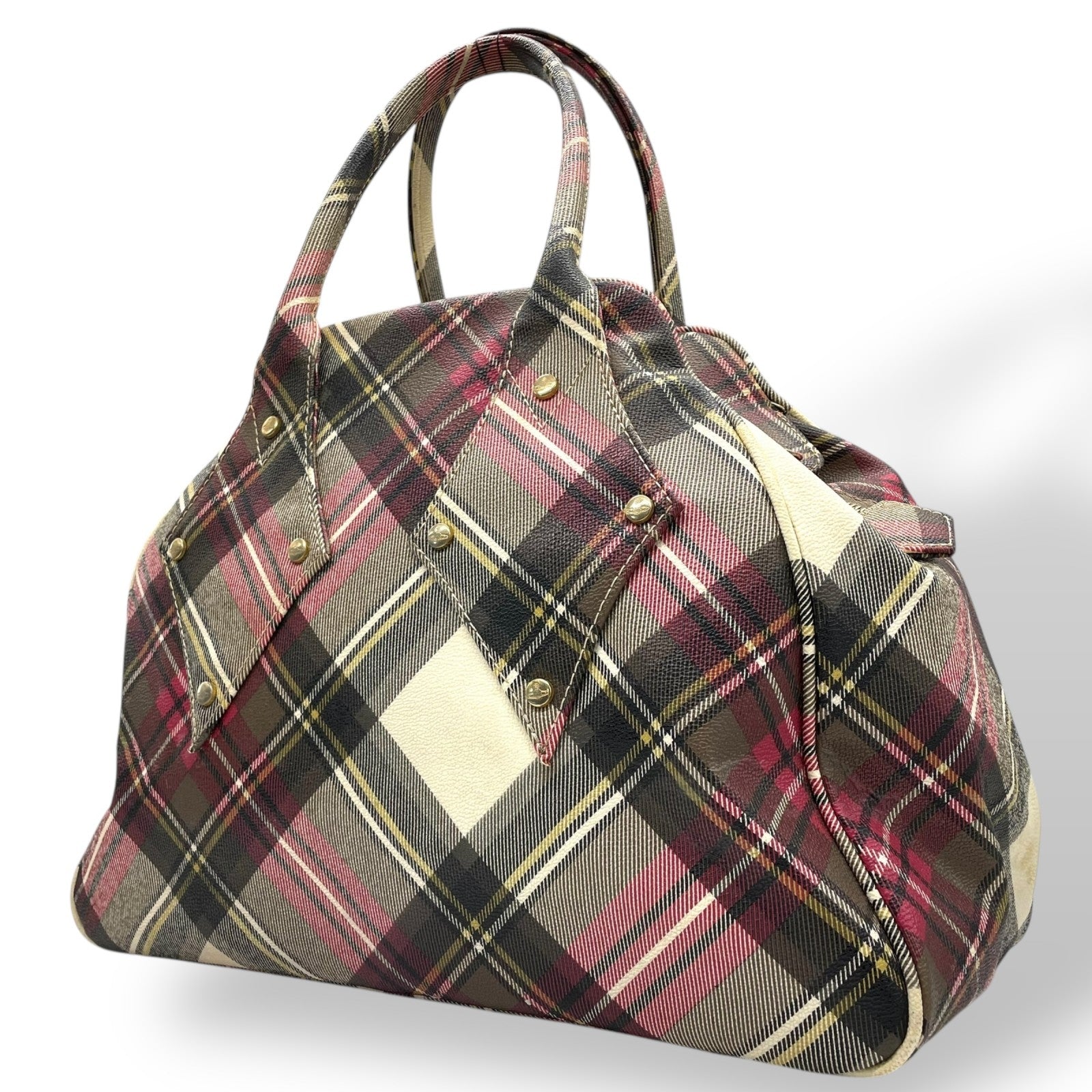 ヴィヴィアンウエストウッド Vivienne Westwood タータンチェック ボストンバッグ ハンドバッグ マルチカラー 赤 レッド 大容量 旅行トラベル C8