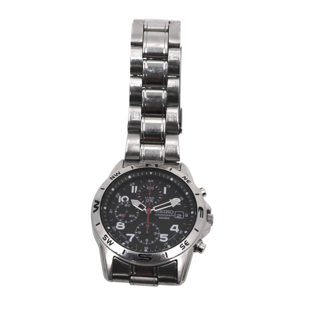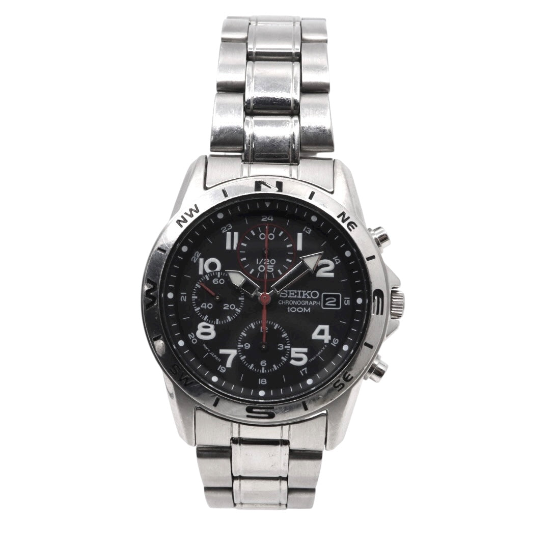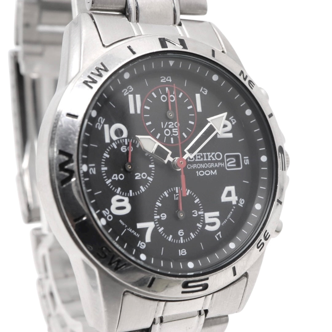 【美品/電池交換済】セイコー クロノグラフ 7T92-0DX0 腕時計 メンズ 100M防水 クオーツ ステンレス ブラック文字盤 シルバー アナログ デイト表示 方位計 スポーツウォッチ ビジネス カジュアル ファッション G10