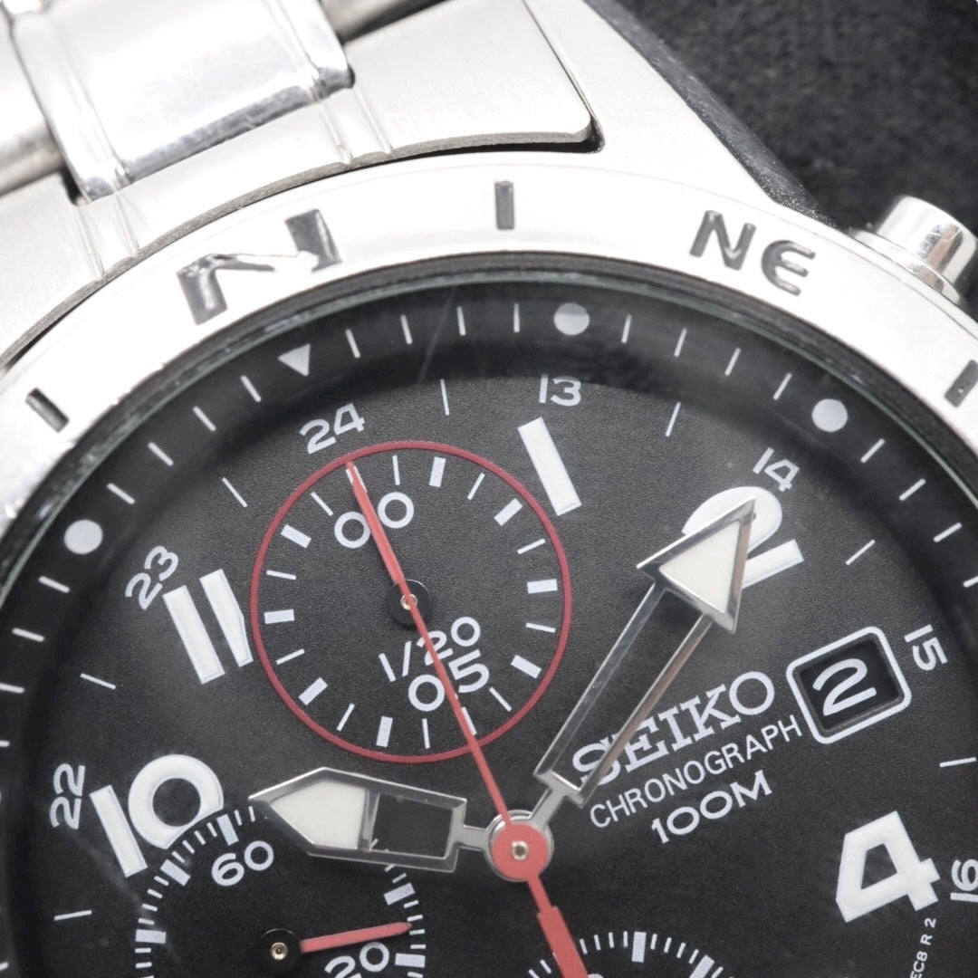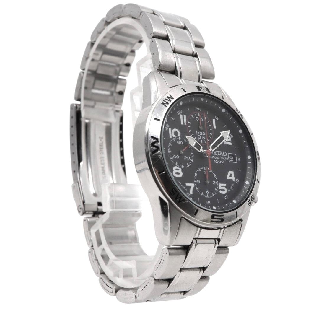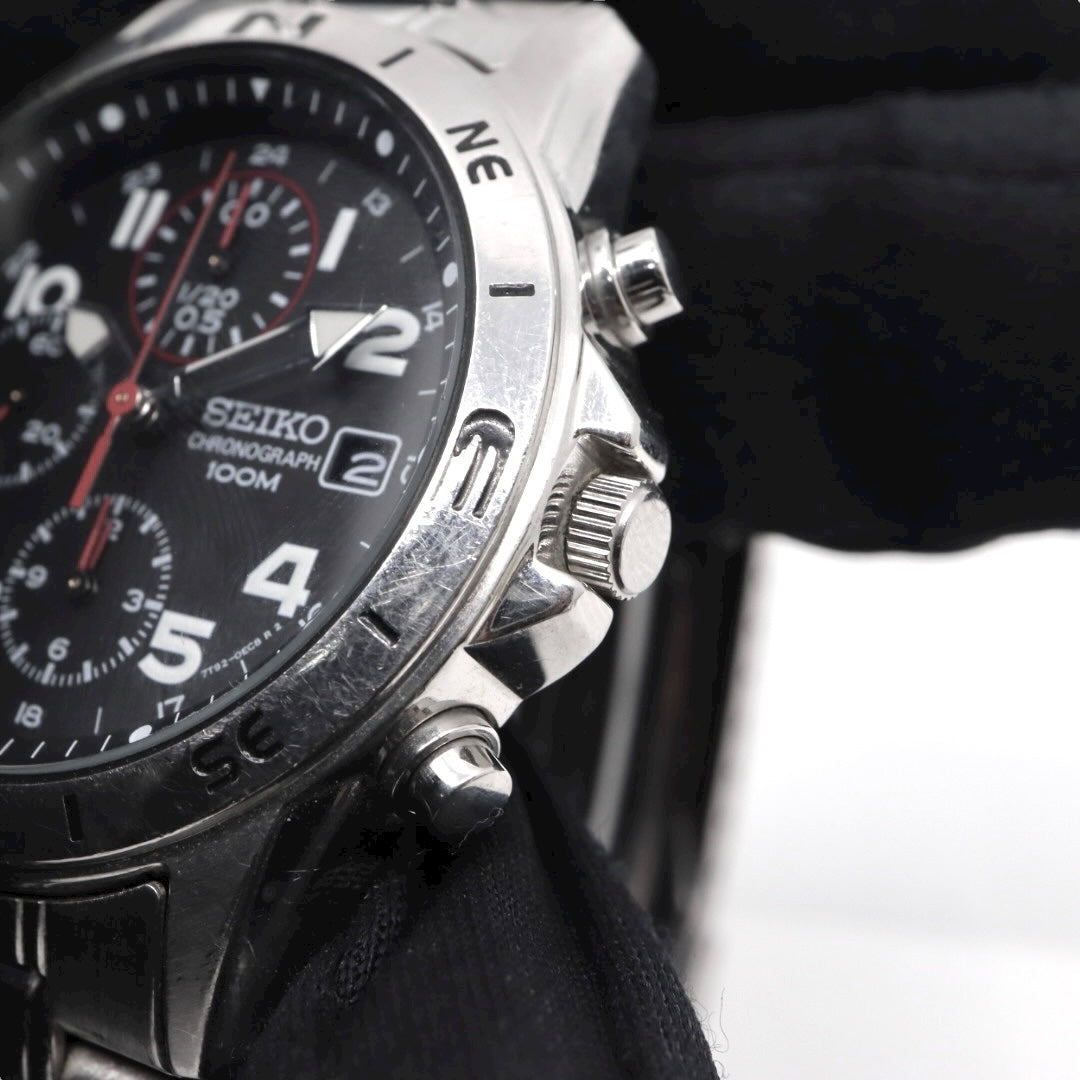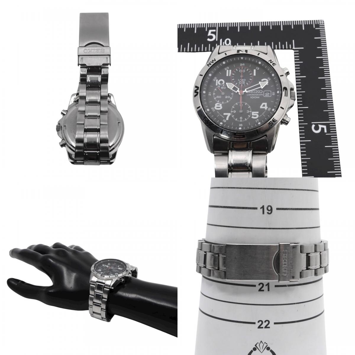 【美品/電池交換済】セイコー クロノグラフ 7T92-0DX0 腕時計 メンズ 100M防水 クオーツ ステンレス ブラック文字盤 シルバー アナログ デイト表示 方位計 スポーツウォッチ ビジネス カジュアル ファッション G10