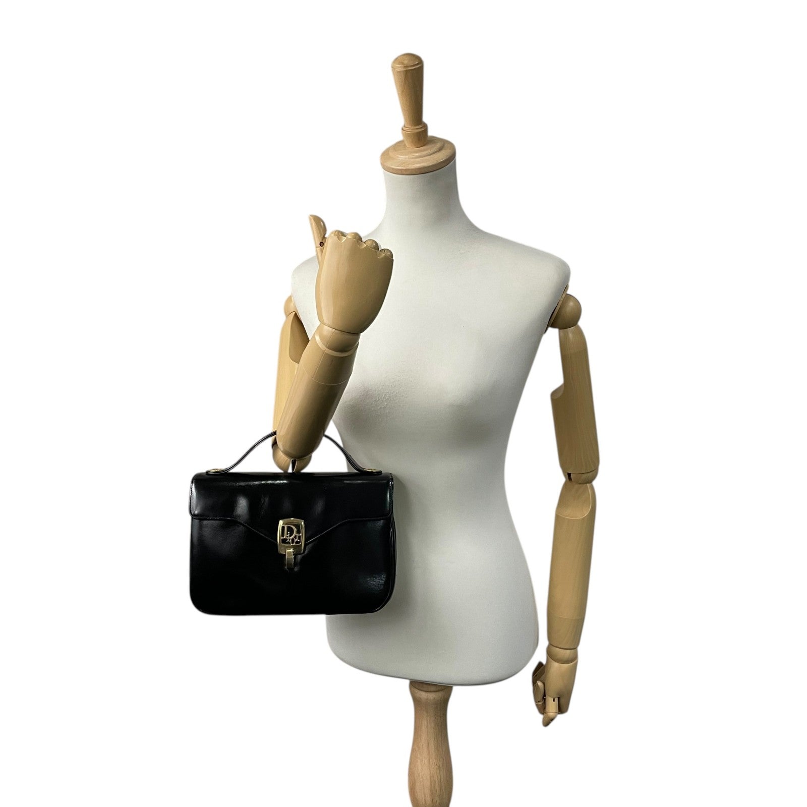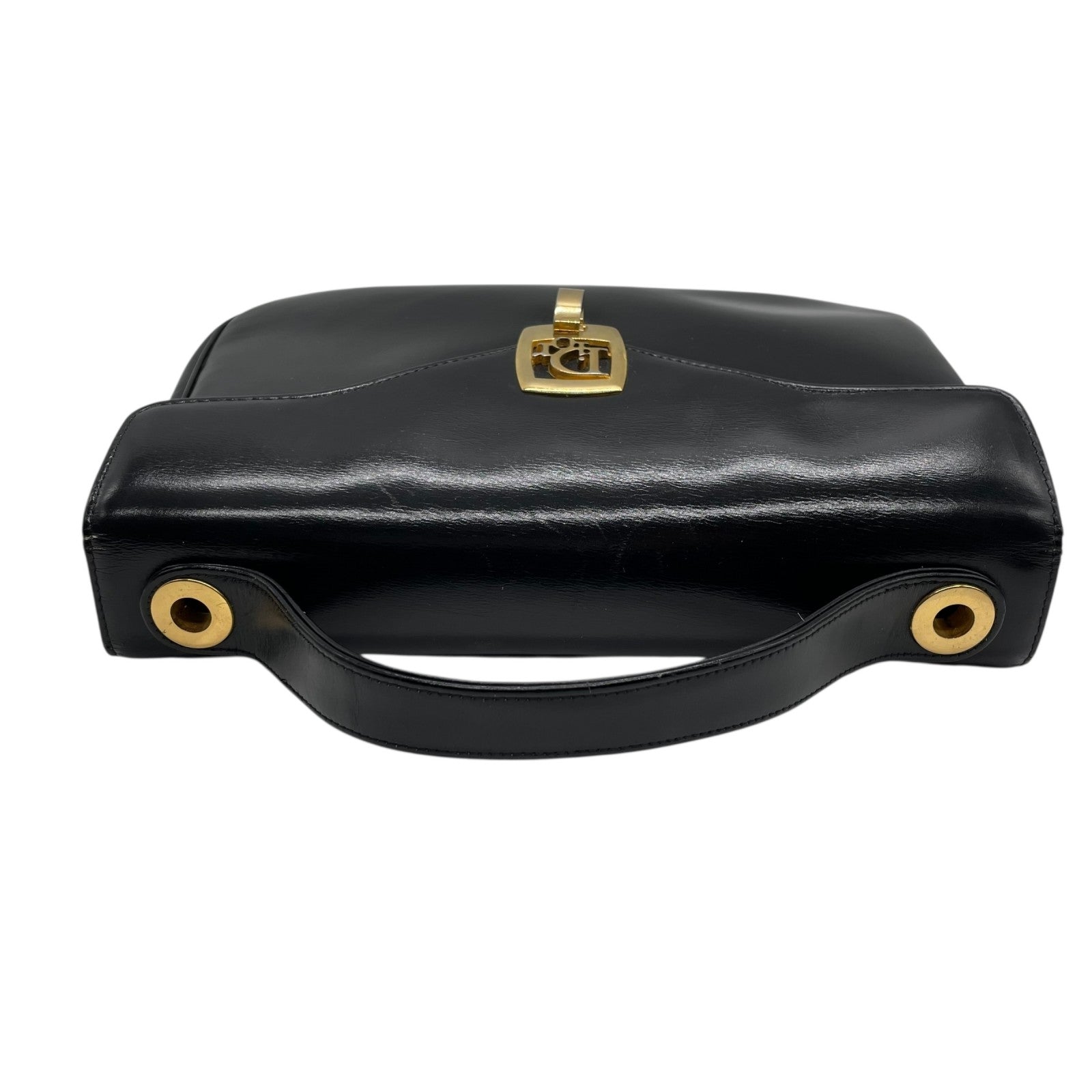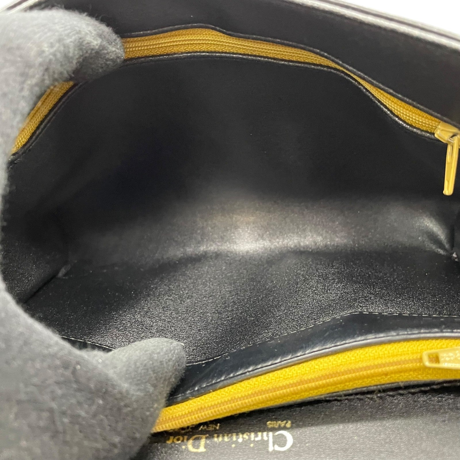 Christian Dior クリスチャンディオール ハンドバッグ ブラック レザー ゴールド金具 ロゴ トップハンドル フラップ フォーマル ヴィンテージ レディース B