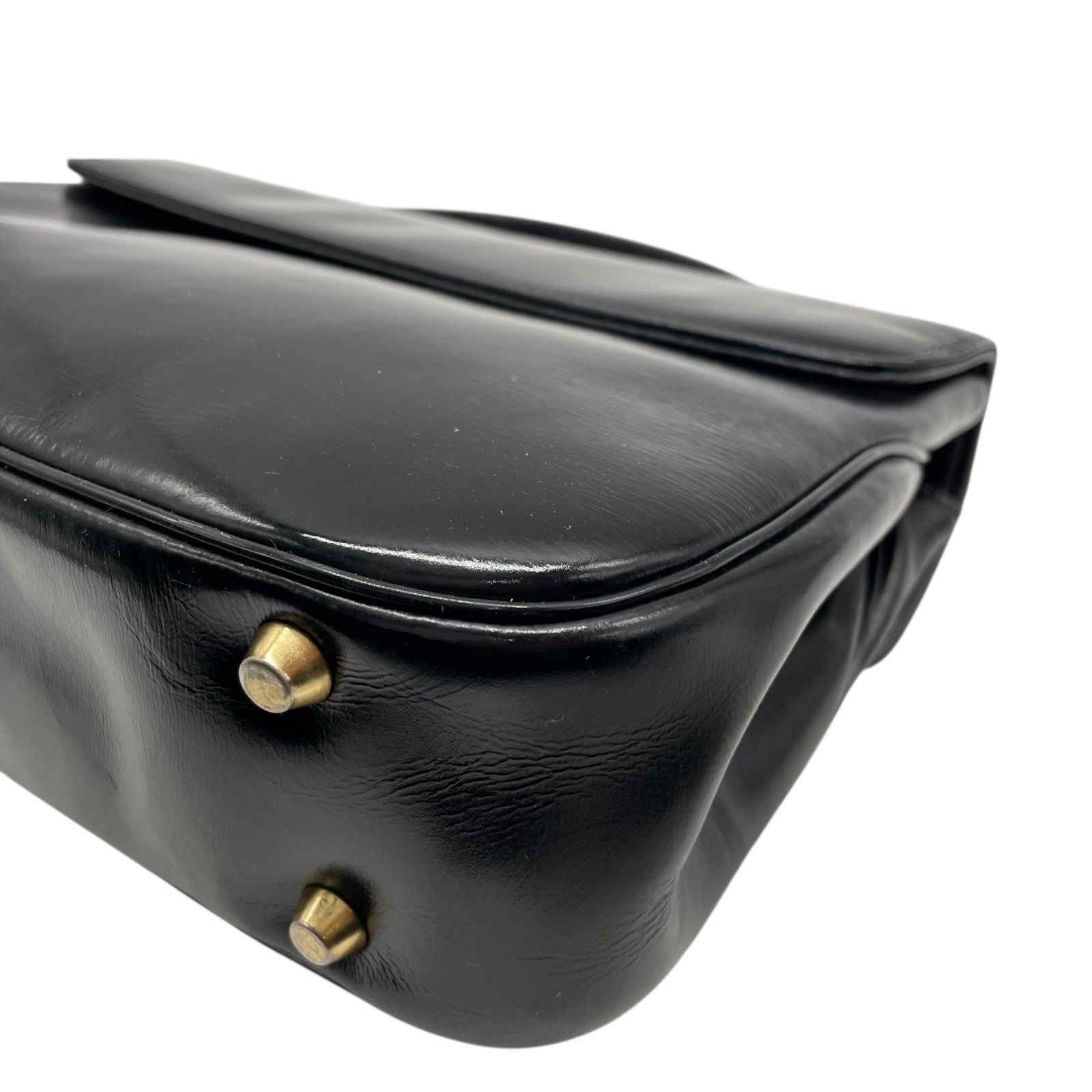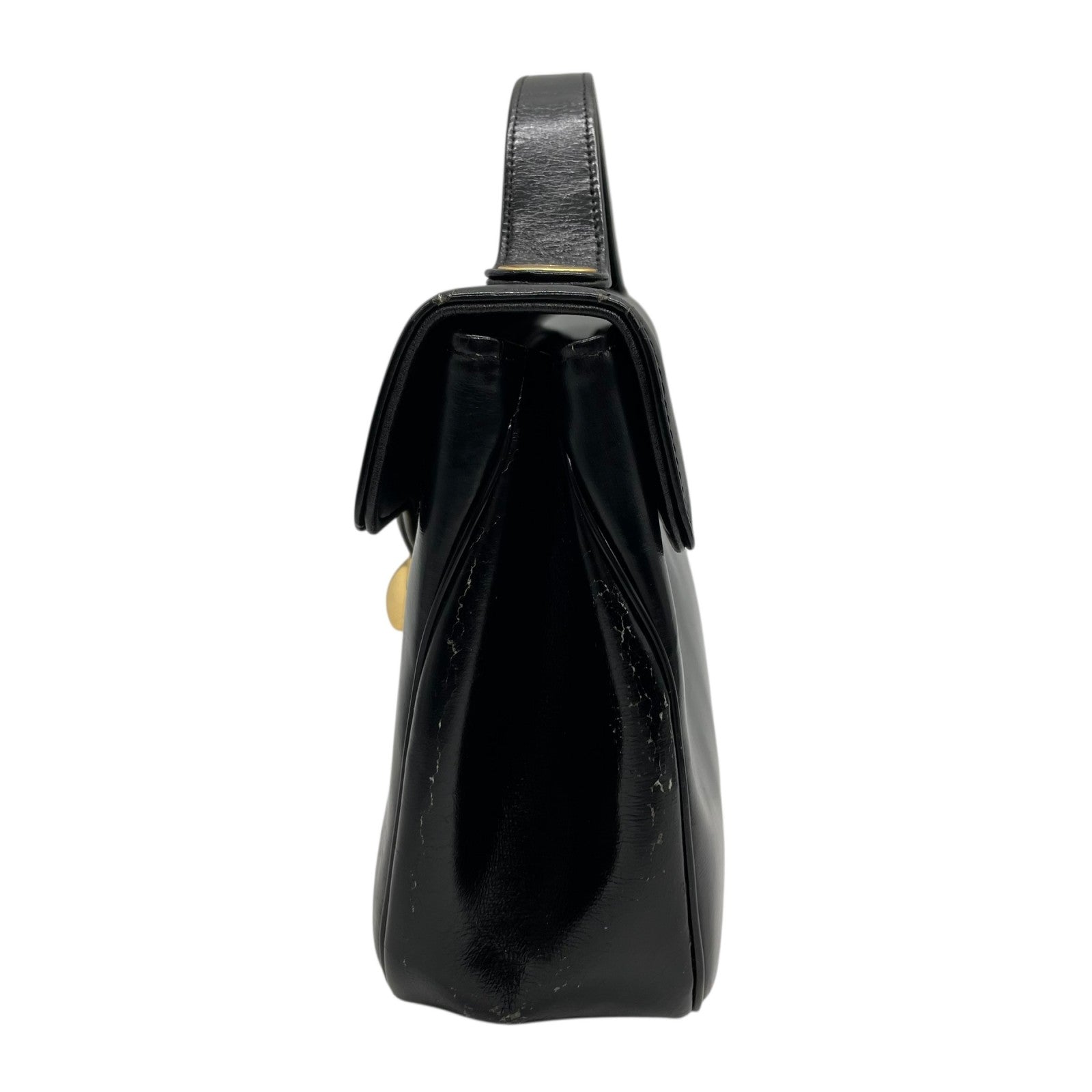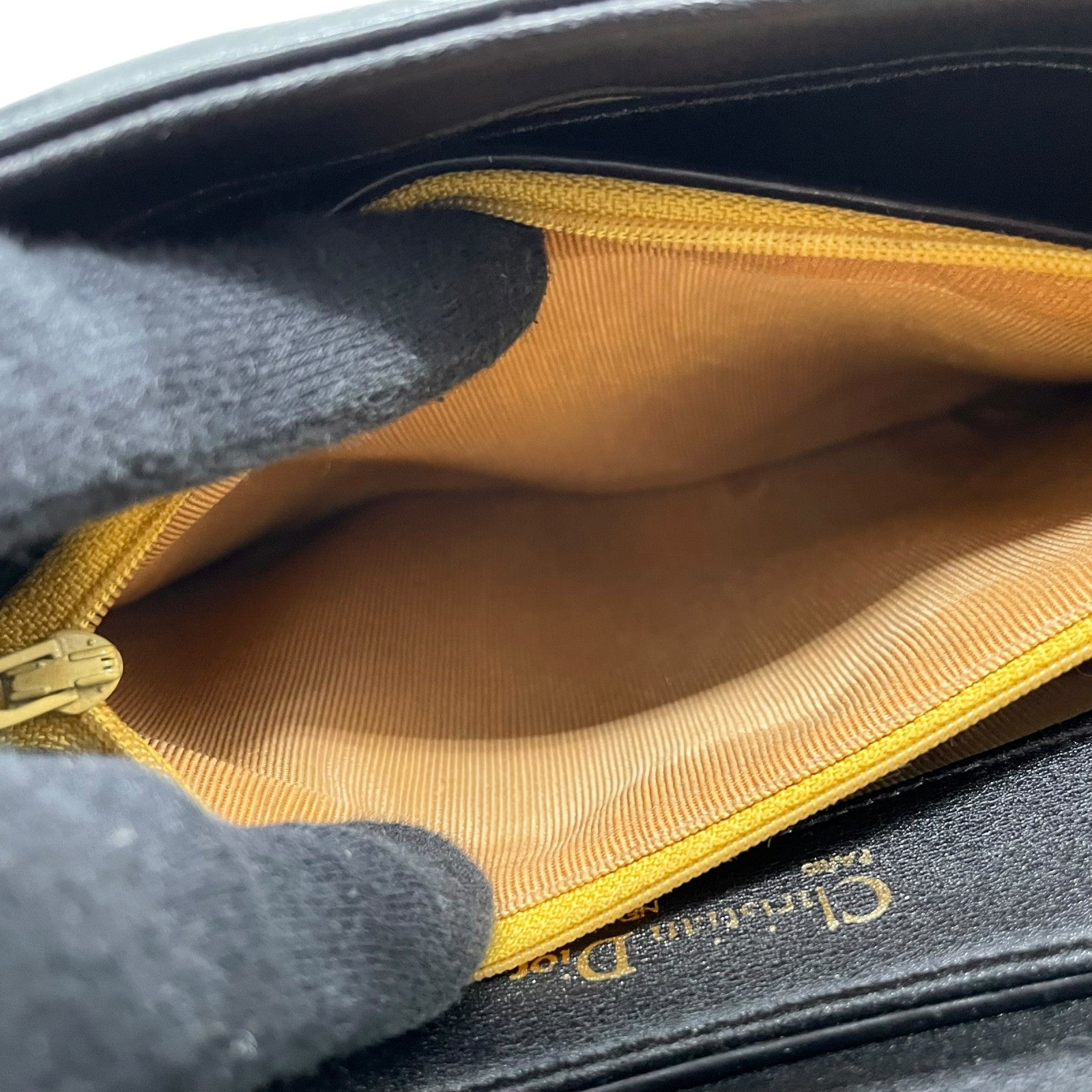 Christian Dior クリスチャンディオール ハンドバッグ ブラック レザー ゴールド金具 ロゴ トップハンドル フラップ フォーマル ヴィンテージ レディース B
