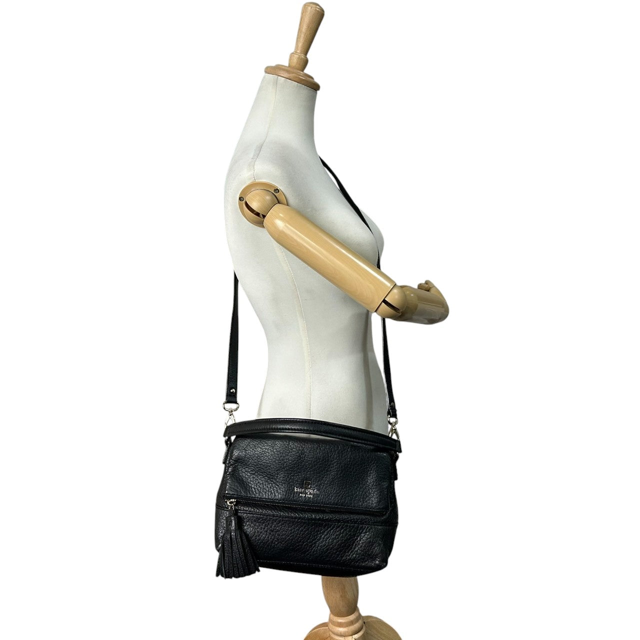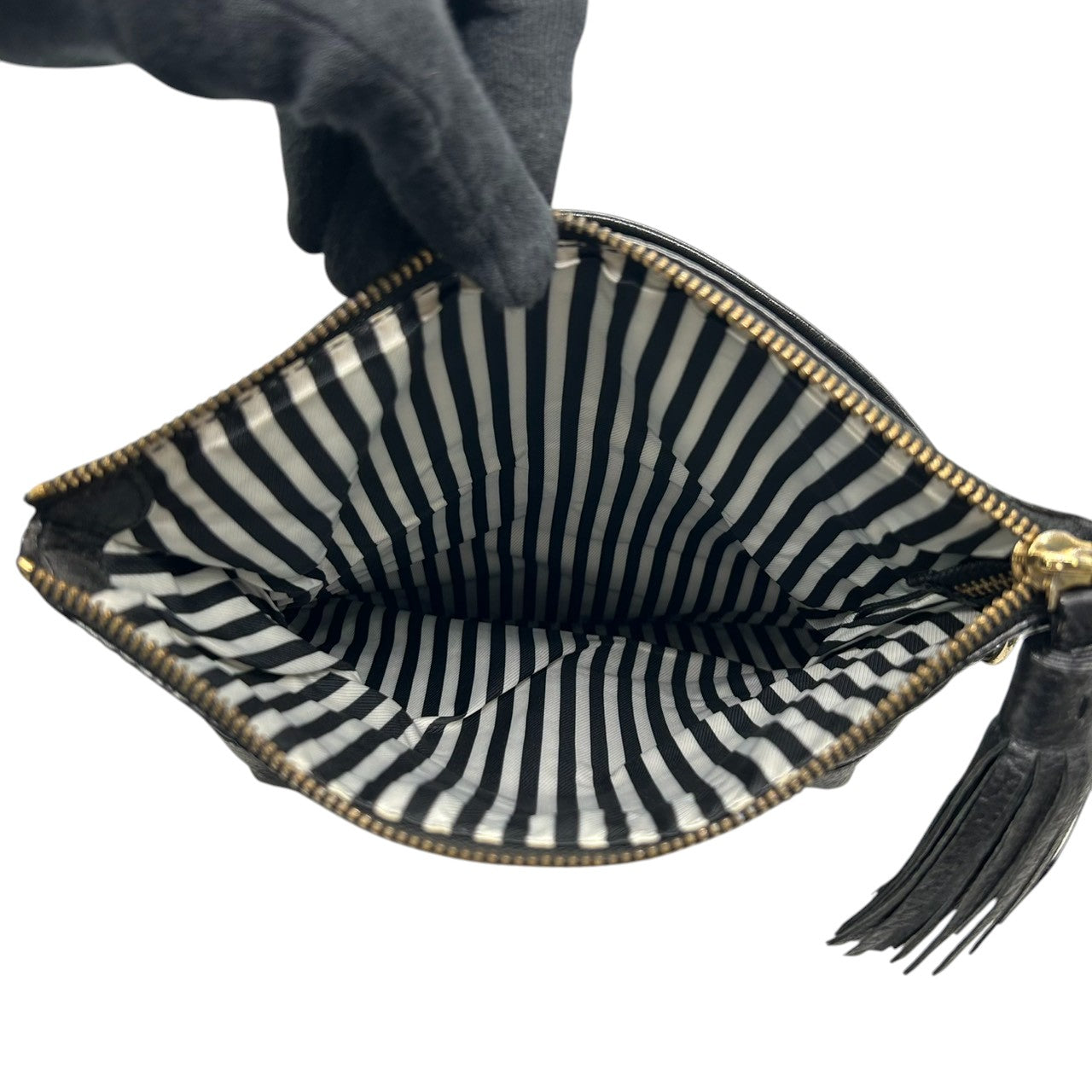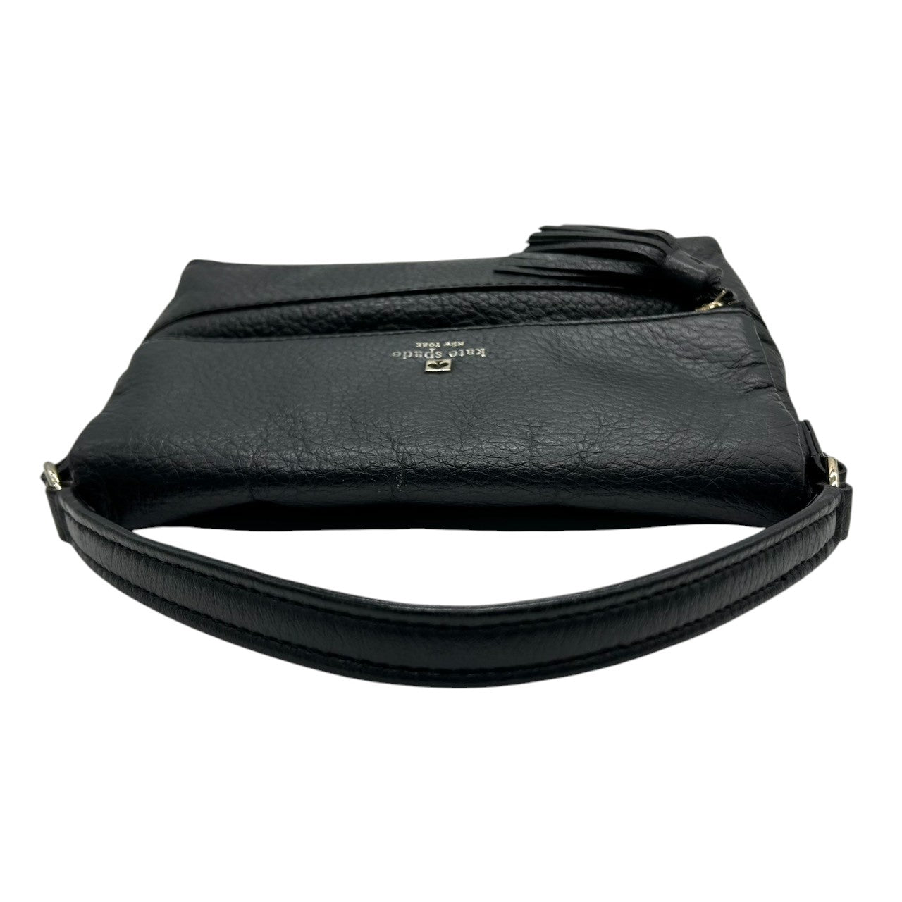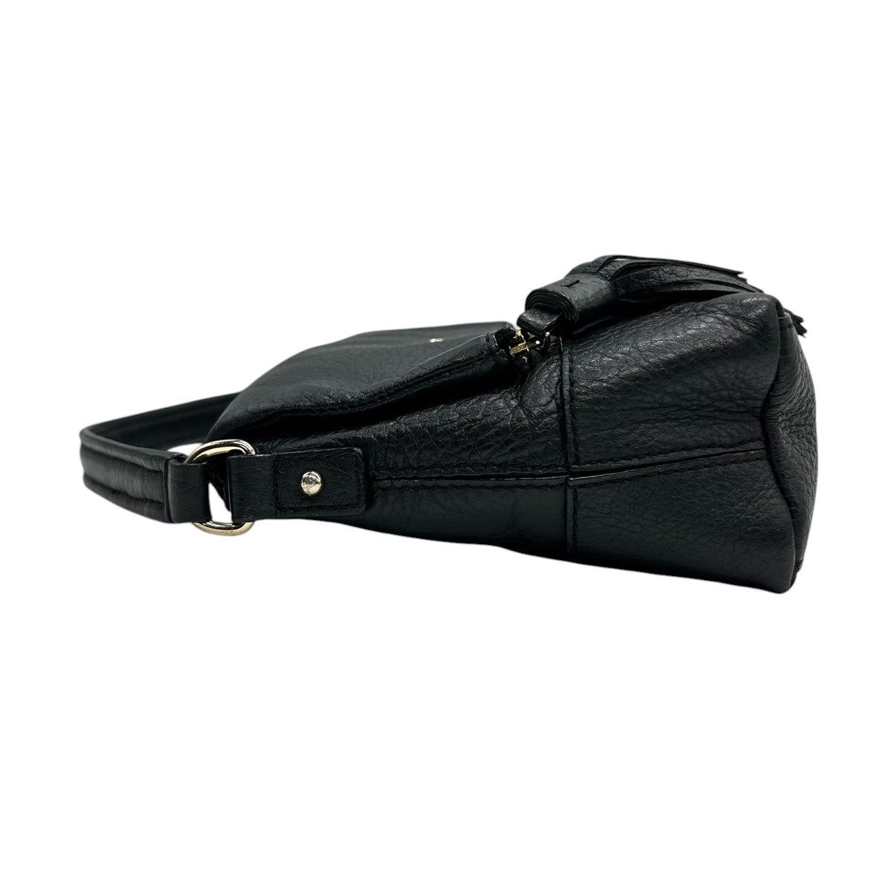 【美品】ケイトスペード 2WAY ハンドバッグ ショルダーバッグ フラップ 斜め掛け可 クラッチバッグ タッセル シボ革 レザー ブラック ロゴ レディース ゴールド金具 エレガント フォーマル デート パーティ s70