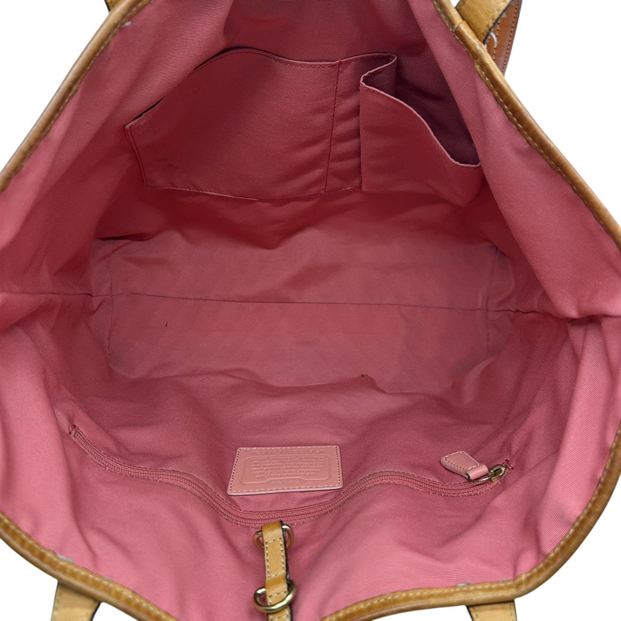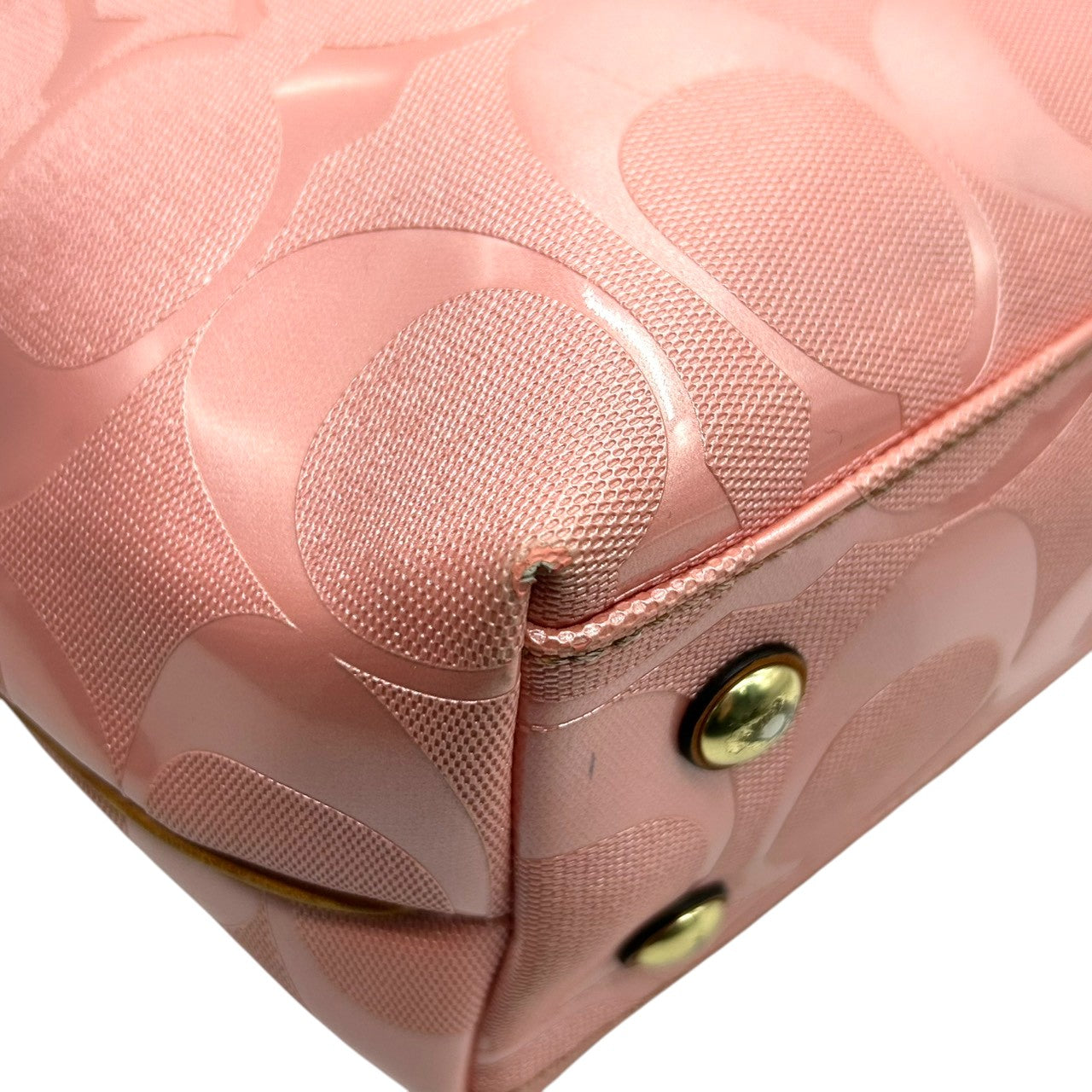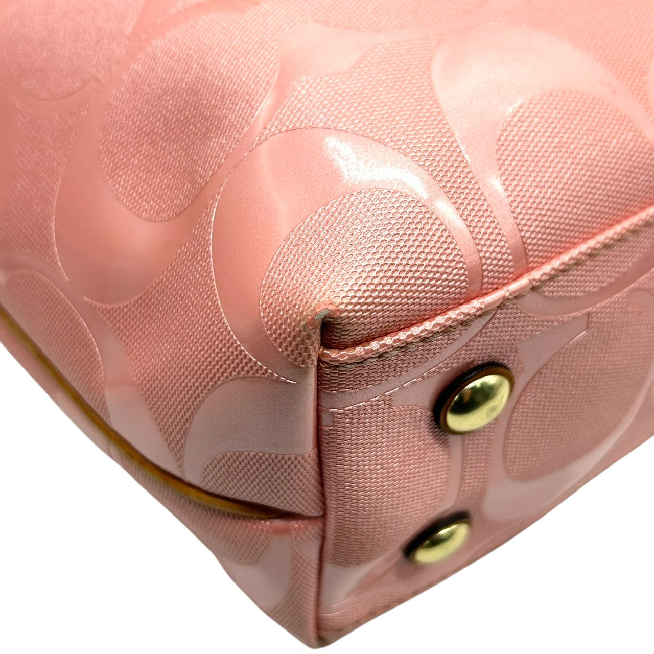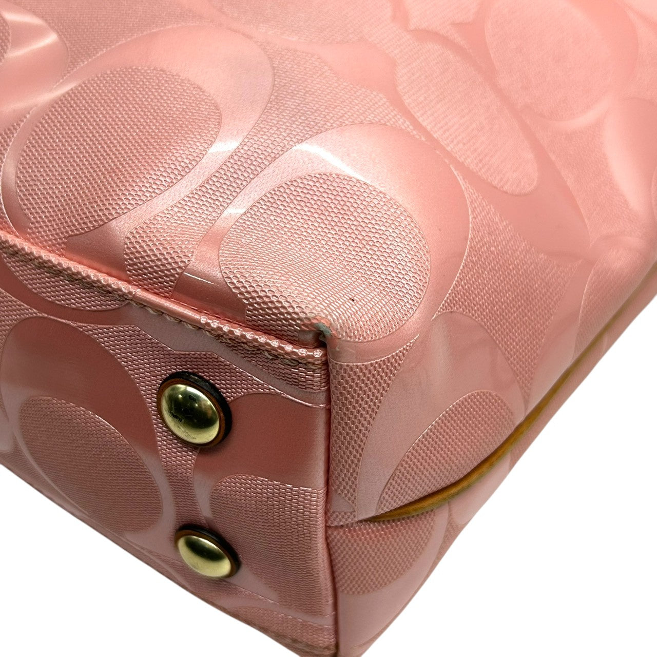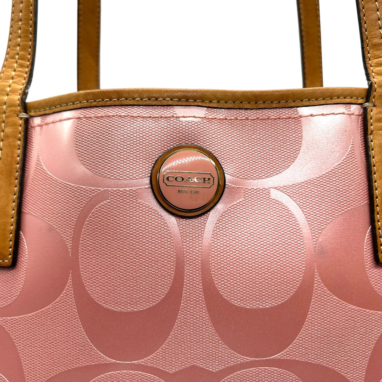 【美品】コーチ トートバッグ ハンドバッグ ワンショルダー F23621 A4収納可 シグネチャー PVC パテント レザー ピンク ブラウン レディース 大容量 軽量 通勤 通学 カジュアル フェミニン かわいい s80トートバッグ