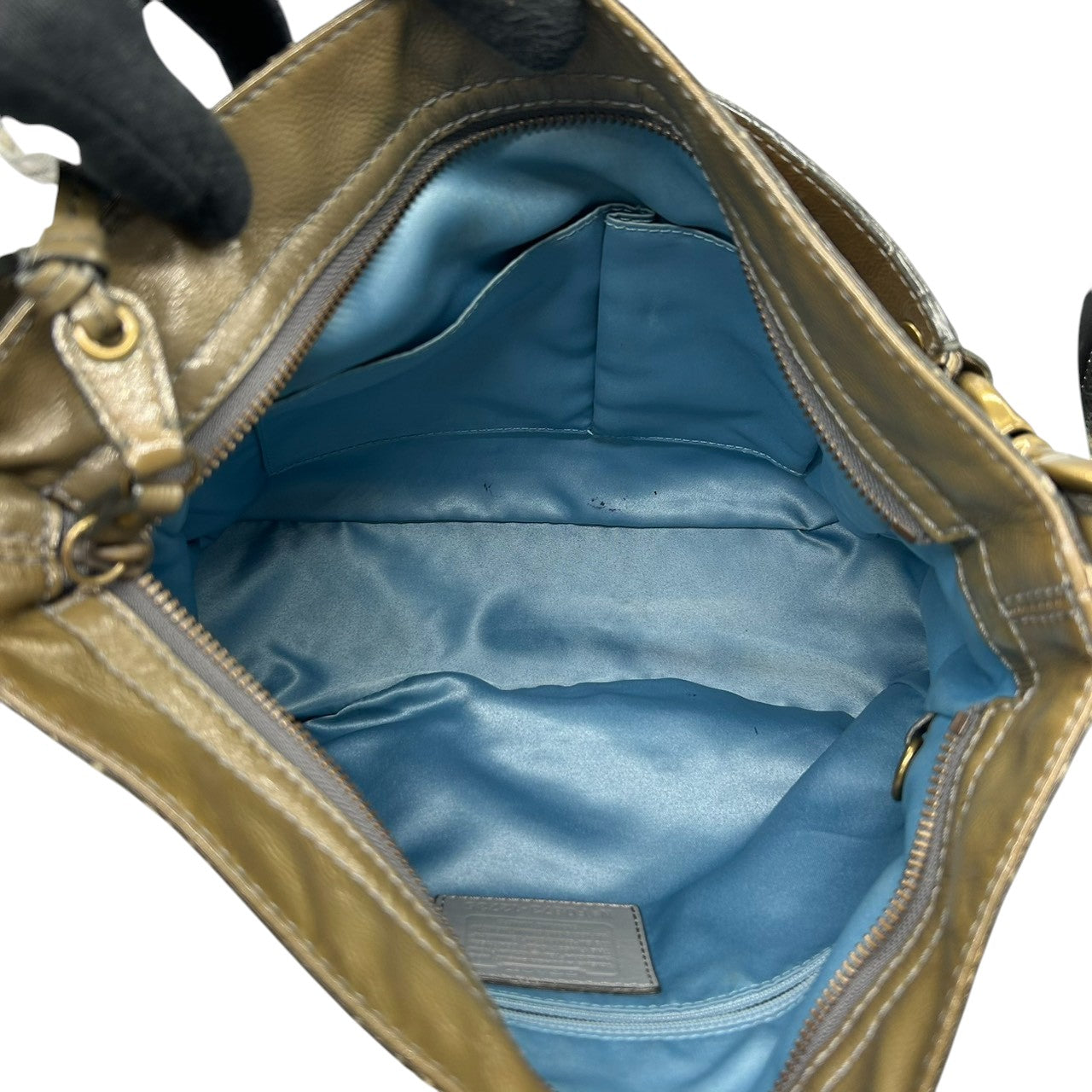 【美品】コーチ COACH ゾーイ ショルダーバッグ ワンショルダー ハンドバッグ F0873-12735 パテントレザー エナメル カーキ グリーン レディース ゴールド金具 エレガント クラシック カジュアル 通勤 通学 U3