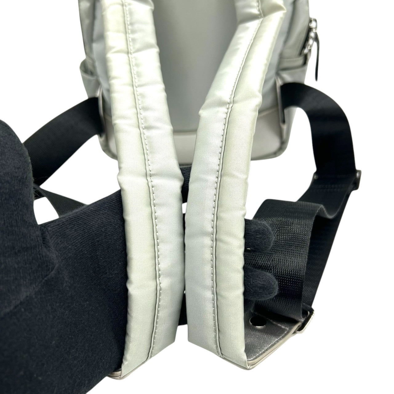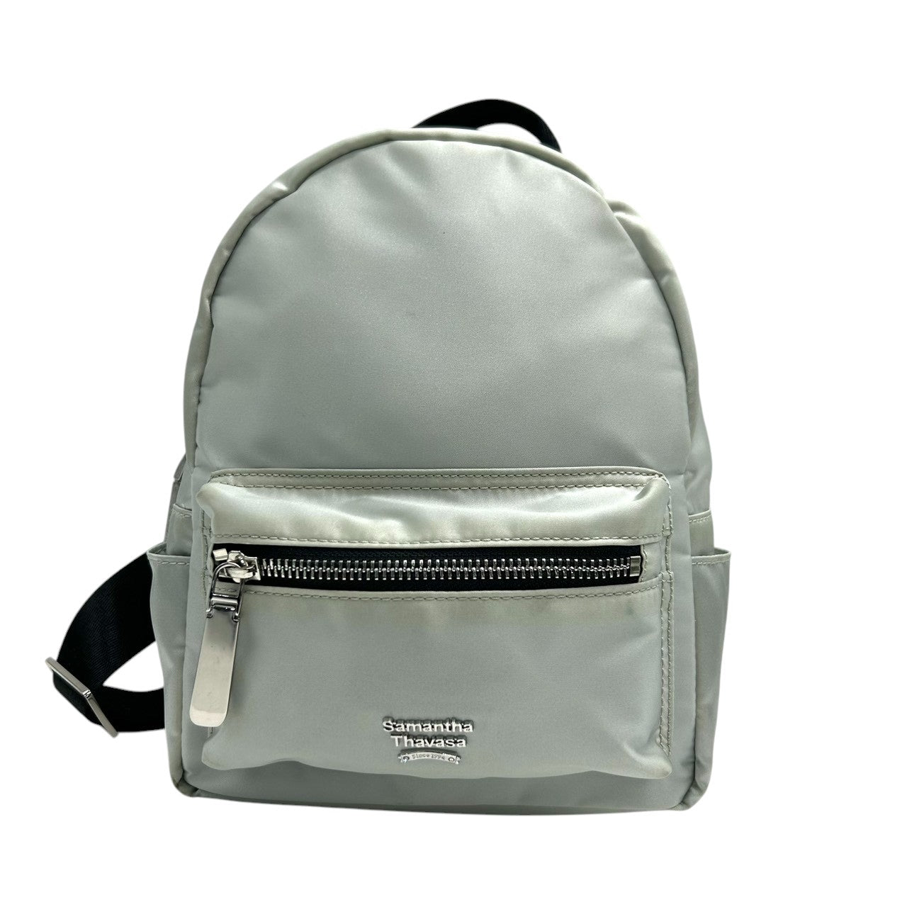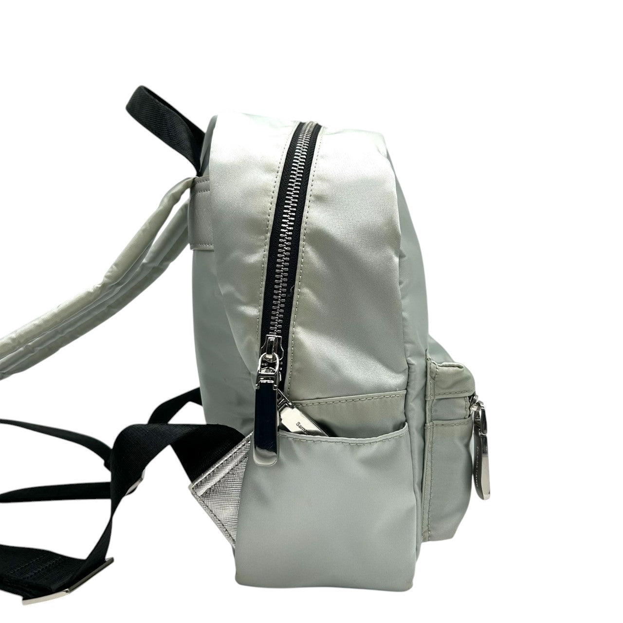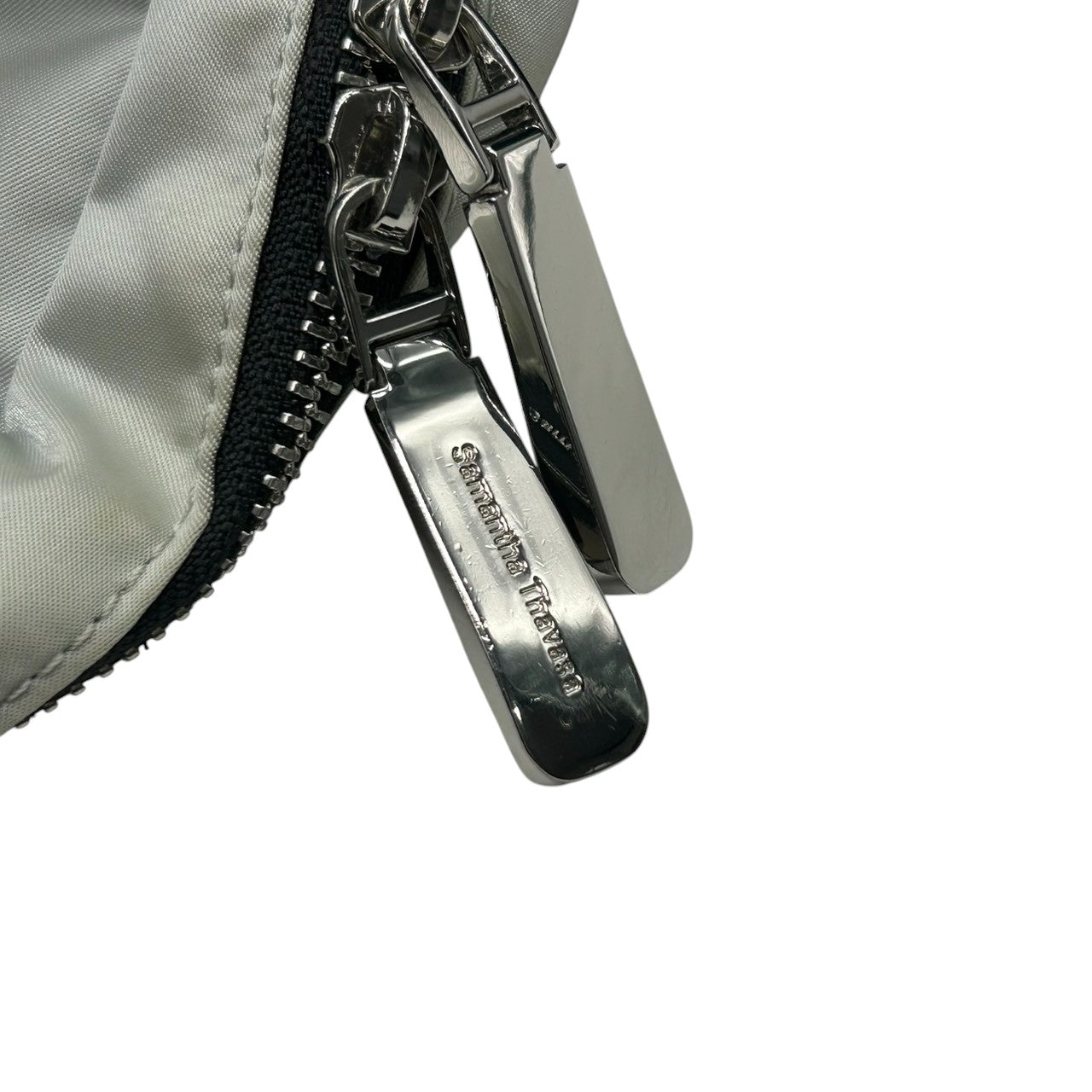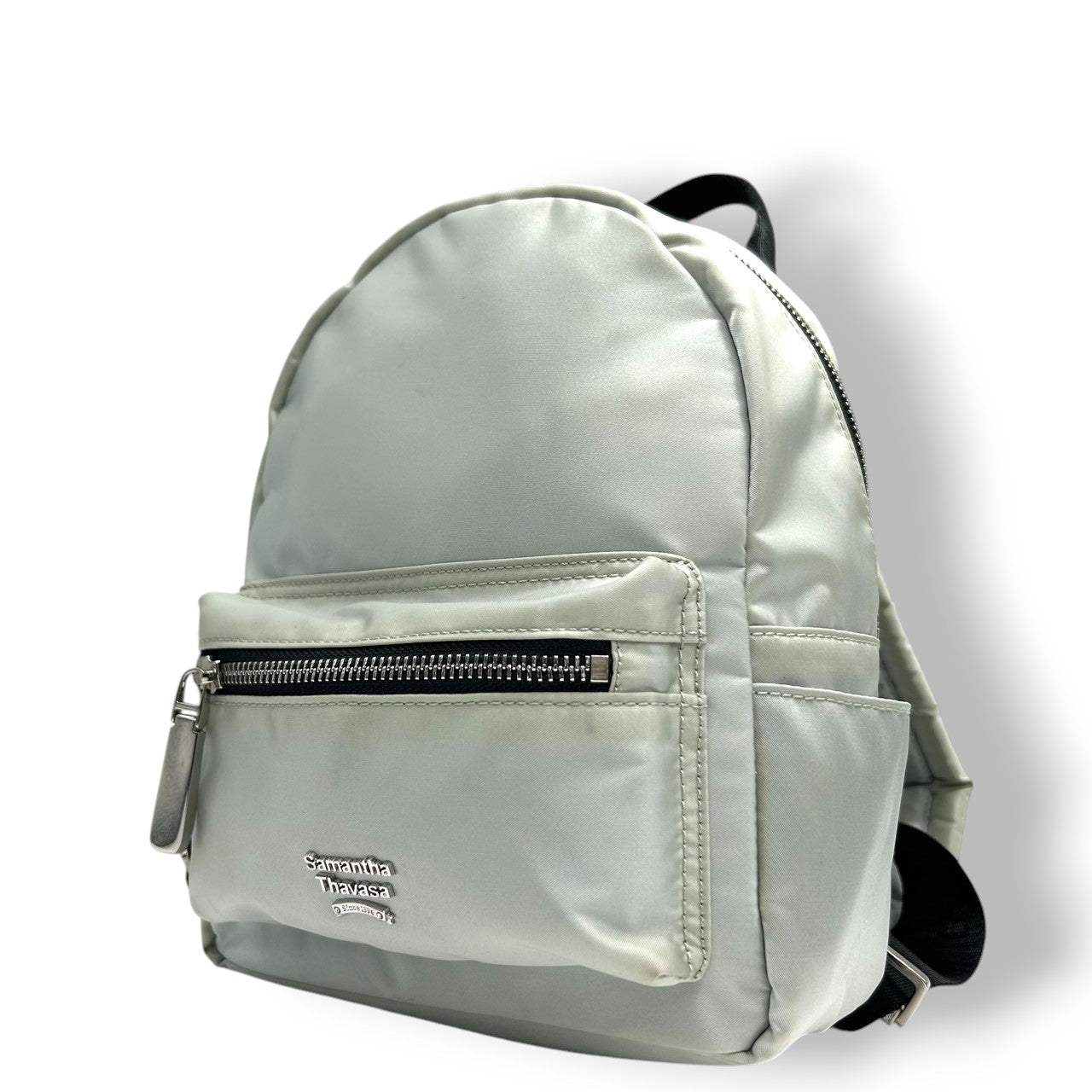 サマンサタバサ ミニリュック バックパック デイパック ナイロン メタリック シルバー ライトブルー ロゴ レディース 軽量 カジュアル フェミニン ガーリー 普段使い デート お出かけ U3