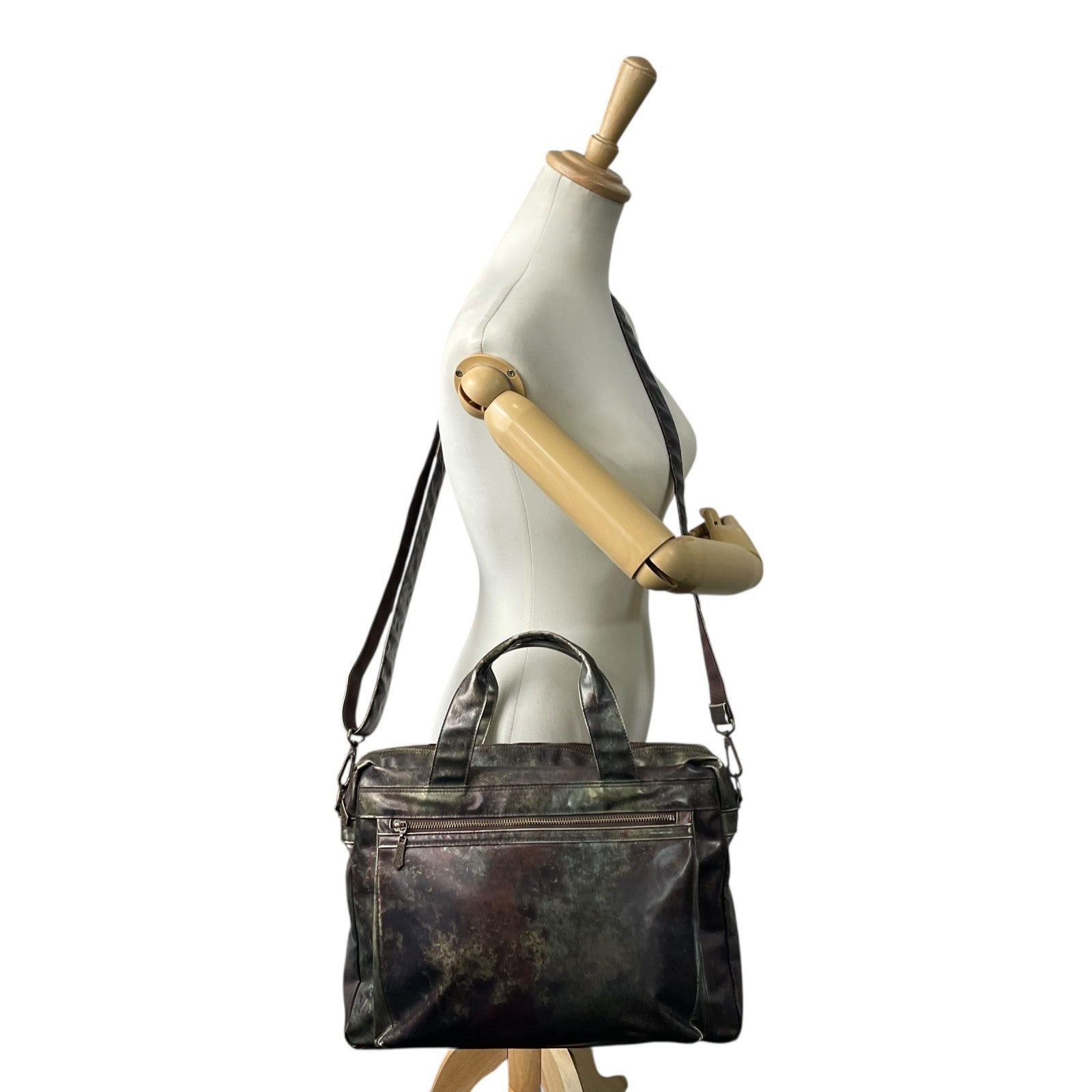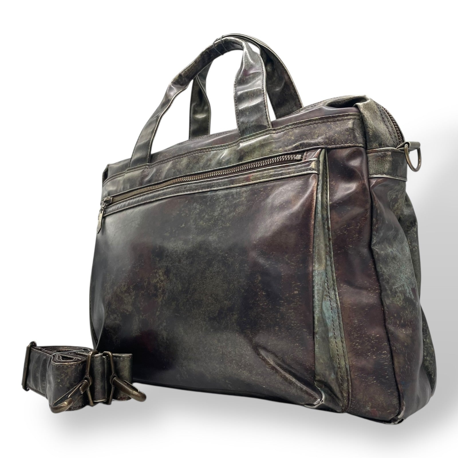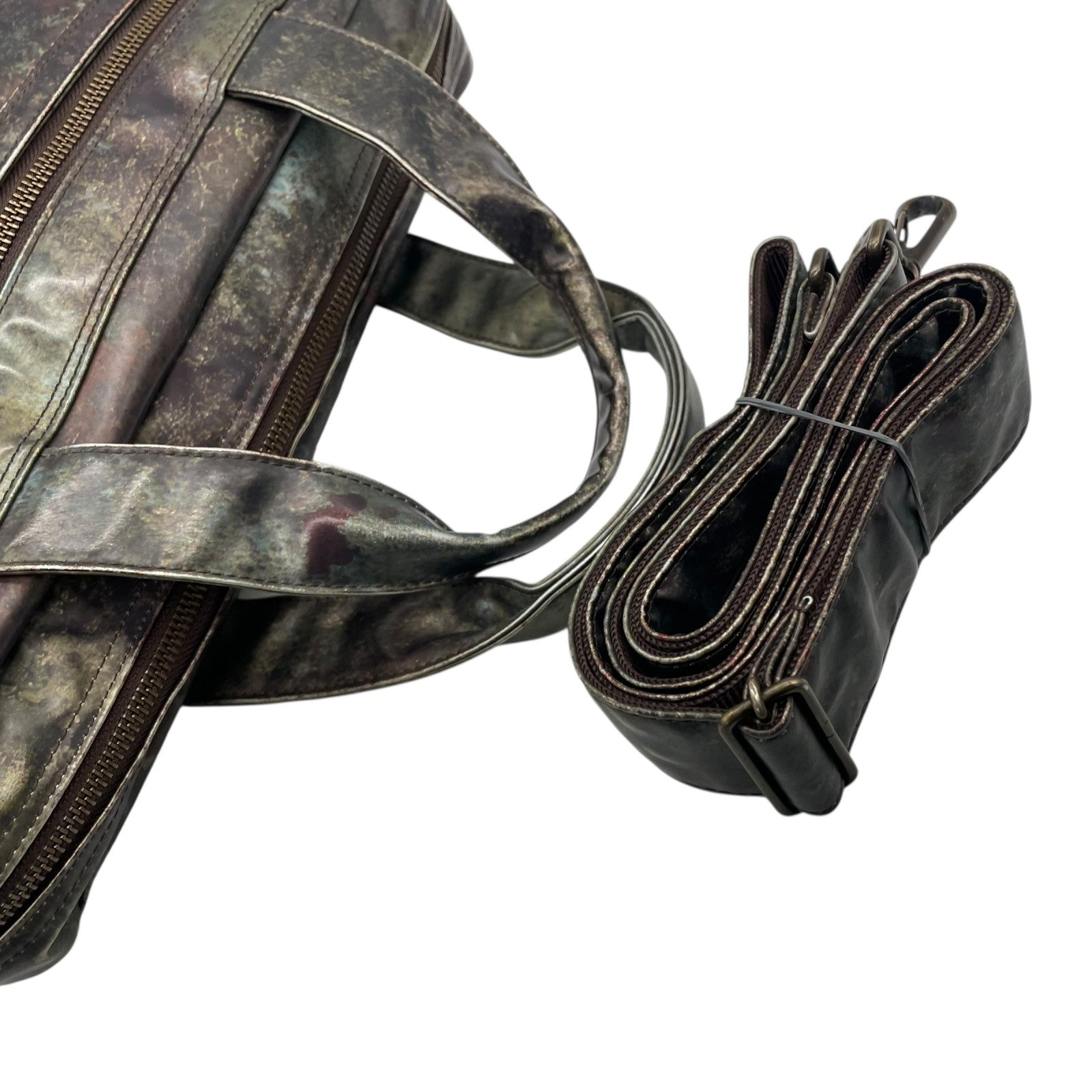 ジャンポールゴルチエ ビジネスバッグ 2WAY ショルダーバッグ Vサイバー 玉虫色 メタリック PVC レザー A4 PC収納可 廃盤 希少 メンズ レディース ユニセックス 通勤 通学 ブリーフケース ヴィンテージ 10