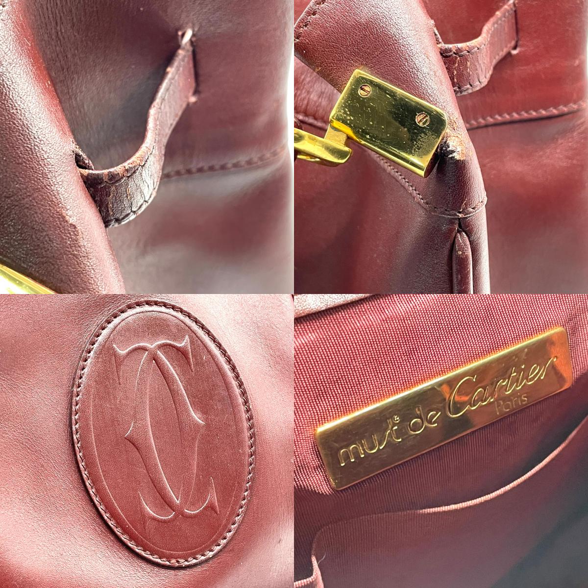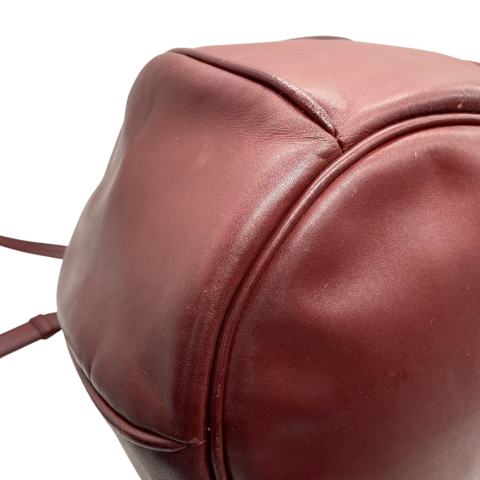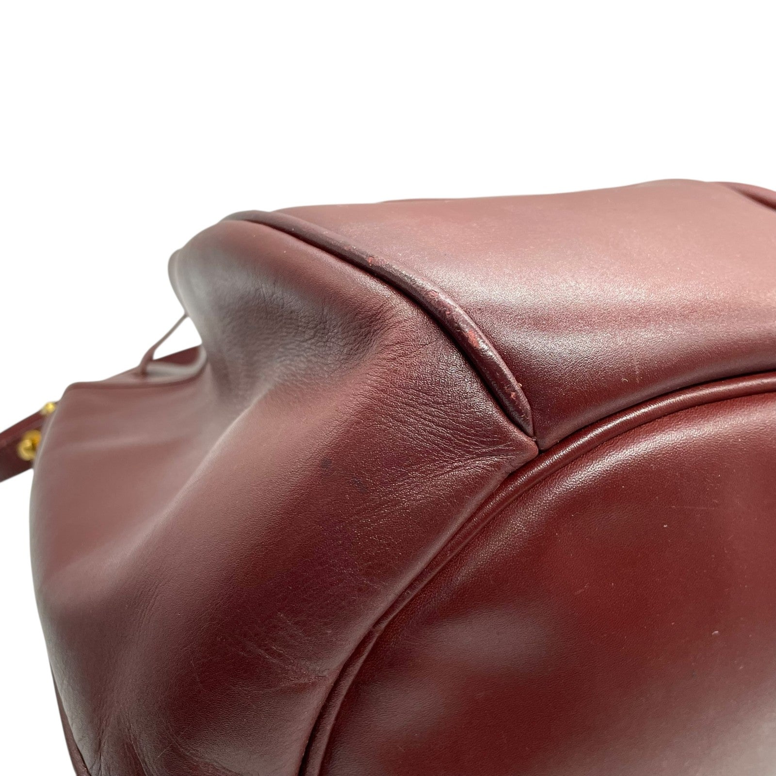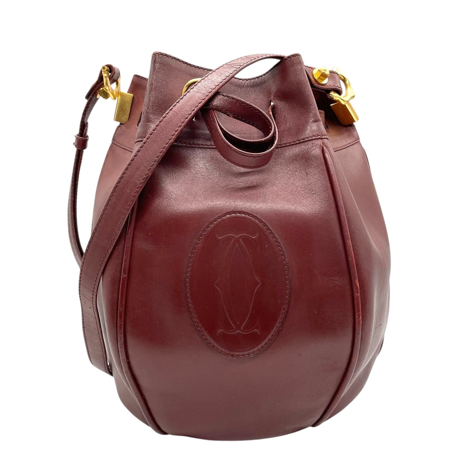 カルティエ マストライン ショルダーバッグ 巾着型 ボルドー ワインレッド レザー ゴールド金具 ロゴ型押し ヴィンテージ レディース A8