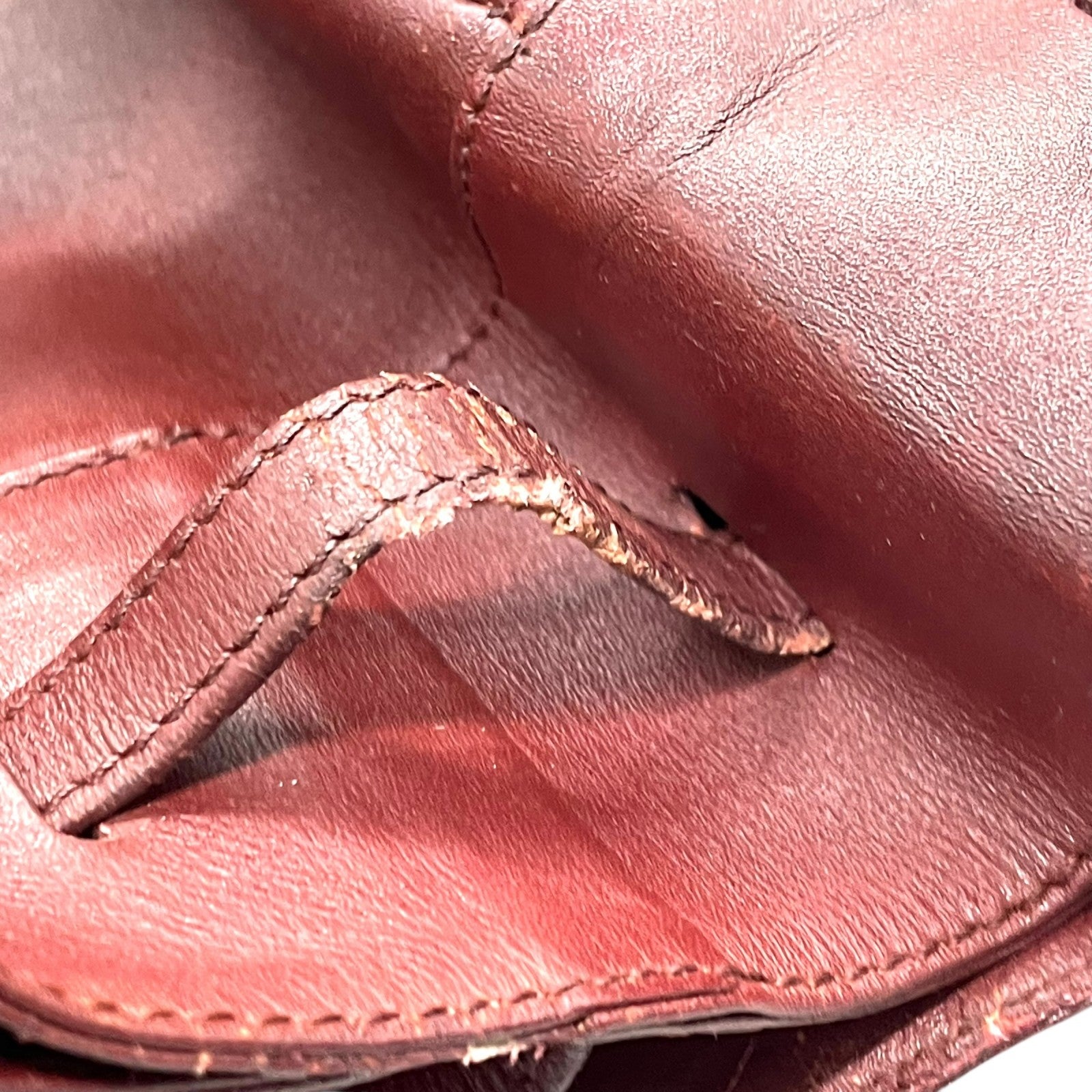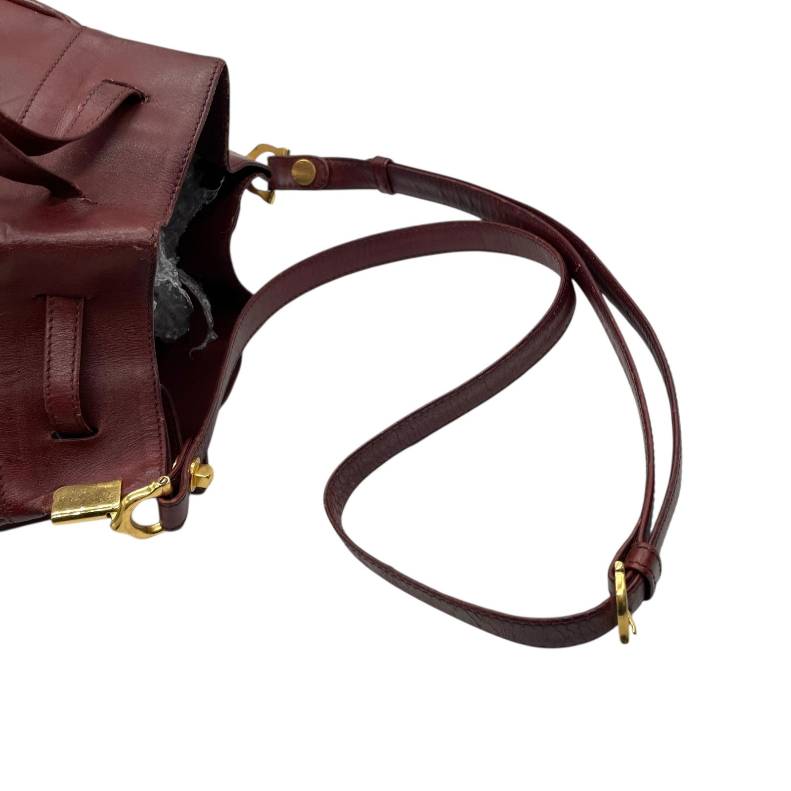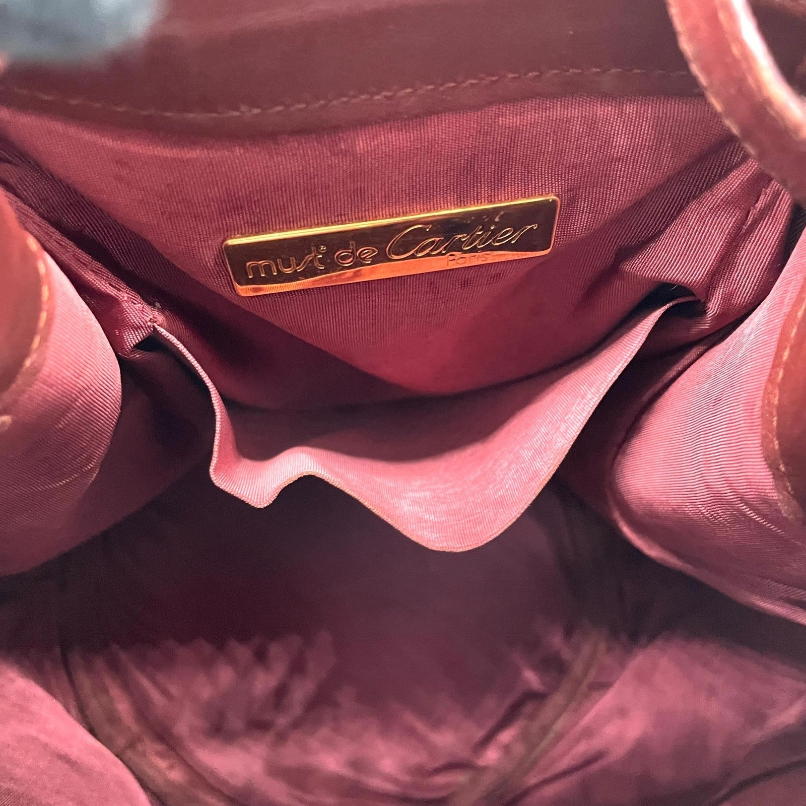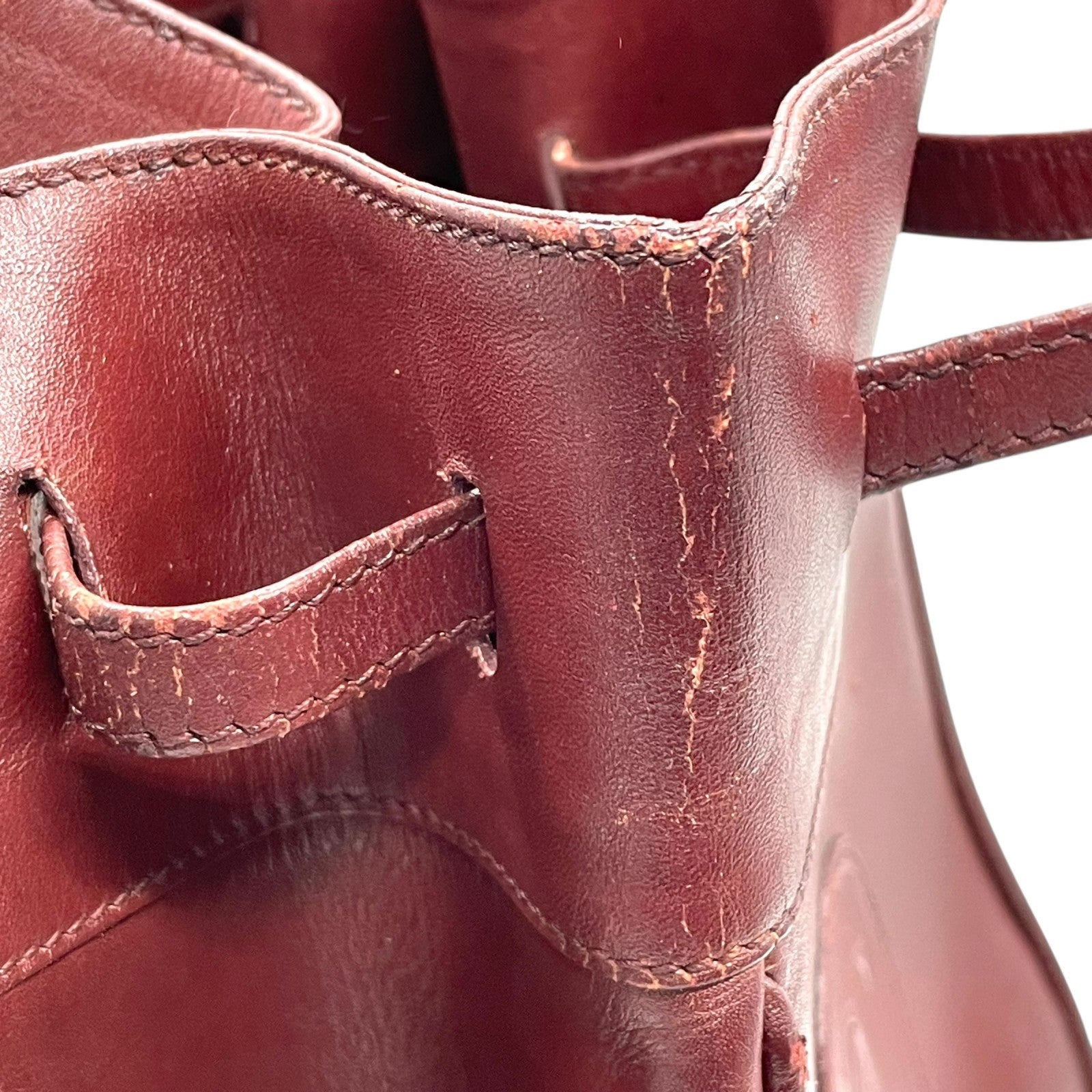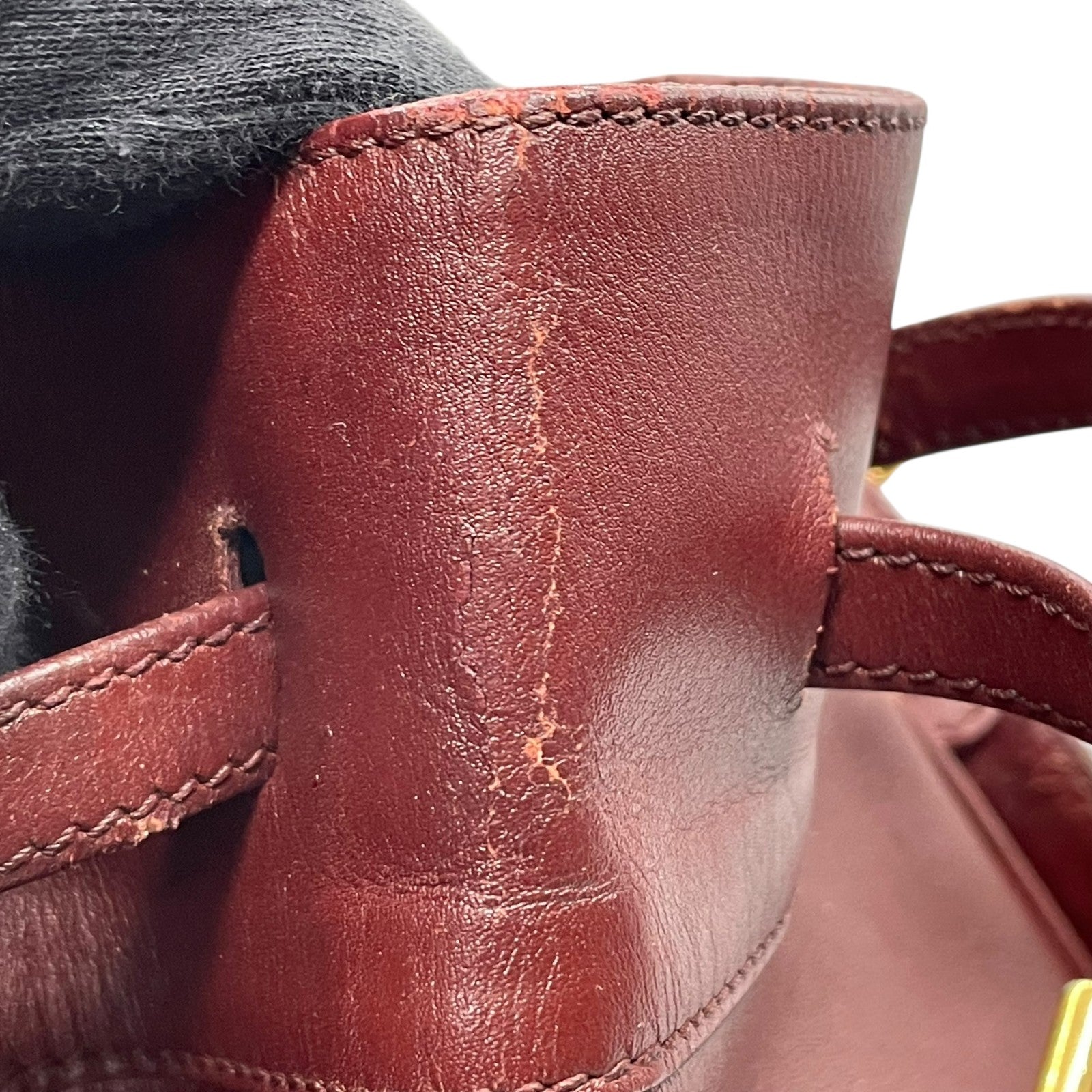 カルティエ マストライン ショルダーバッグ 巾着型 ボルドー ワインレッド レザー ゴールド金具 ロゴ型押し ヴィンテージ レディース A8