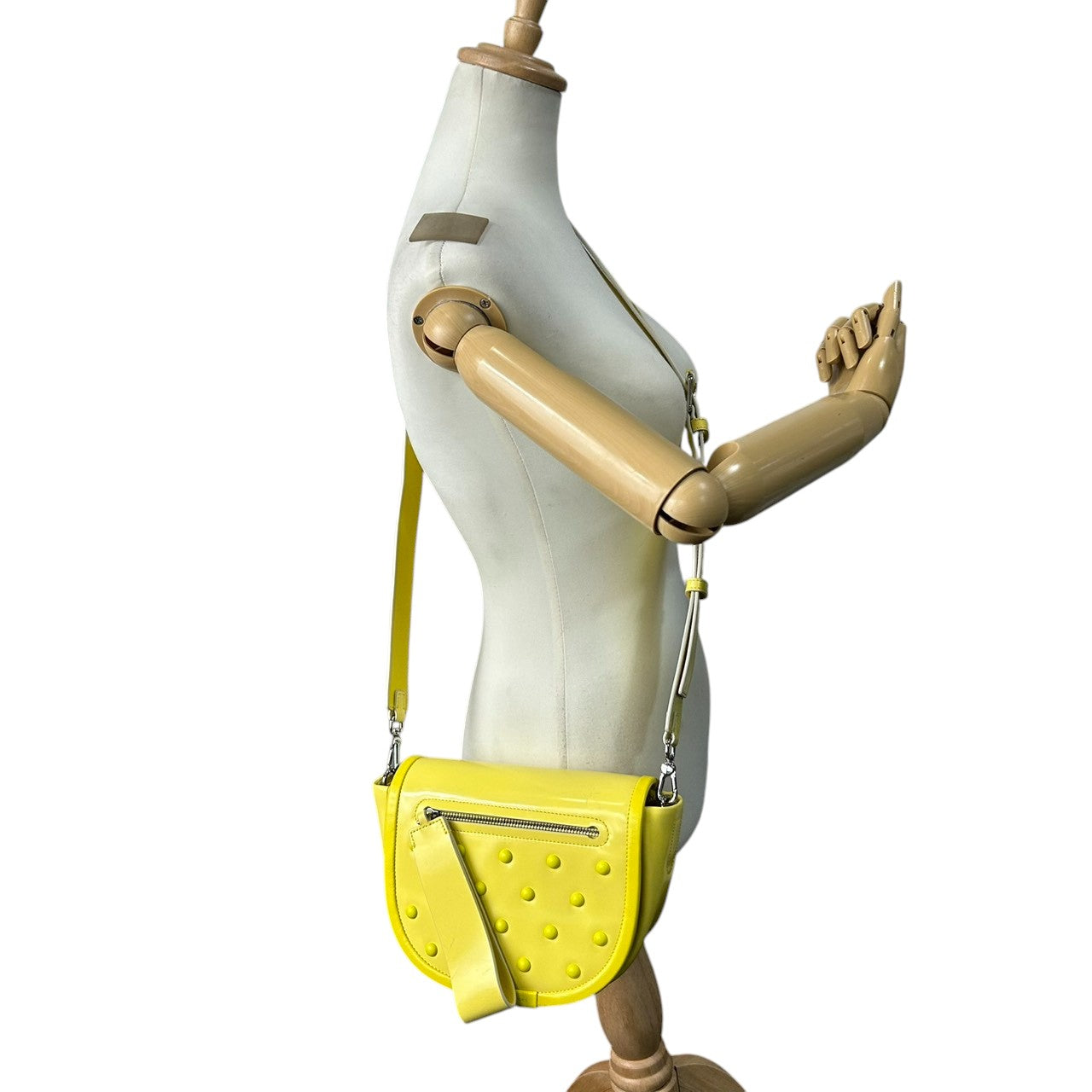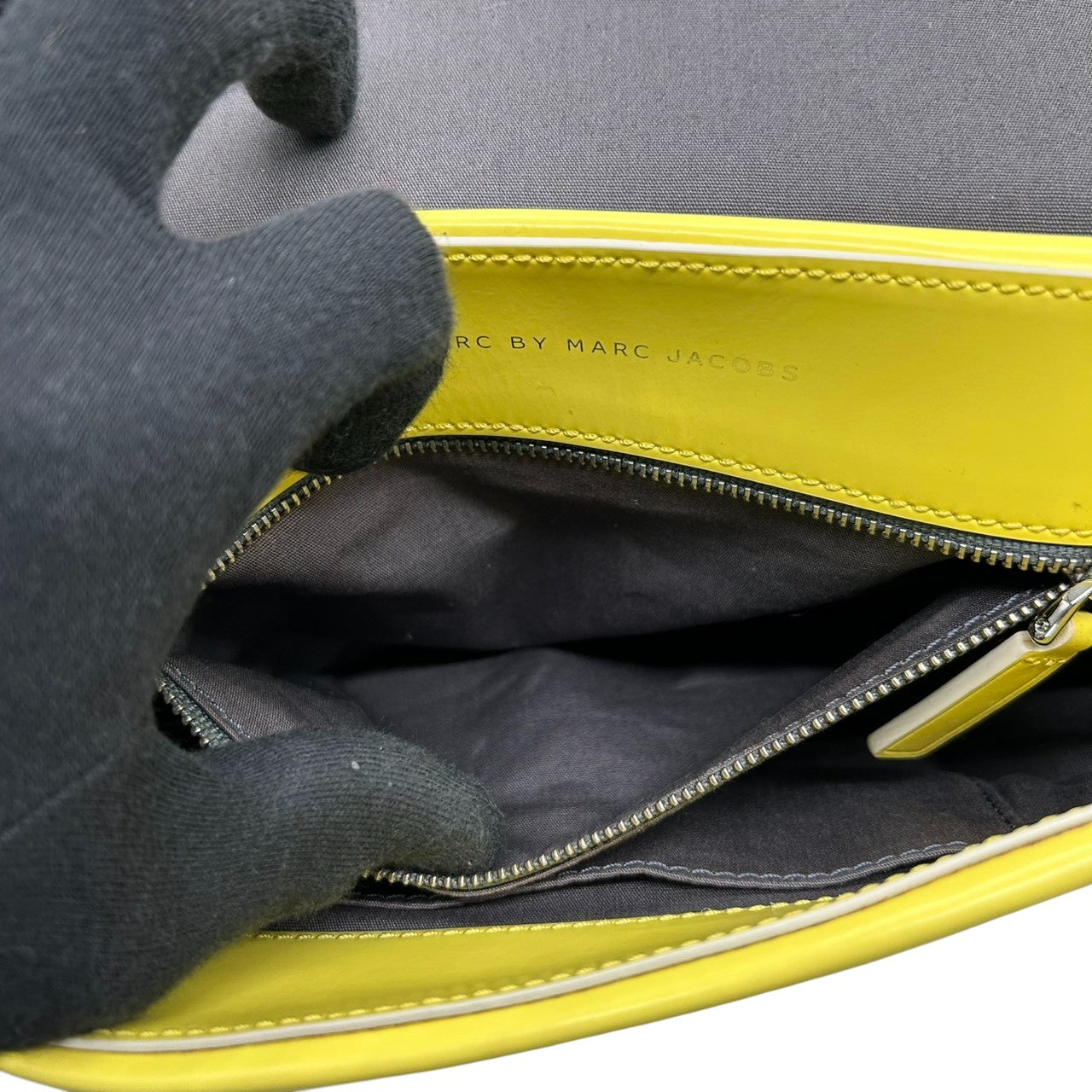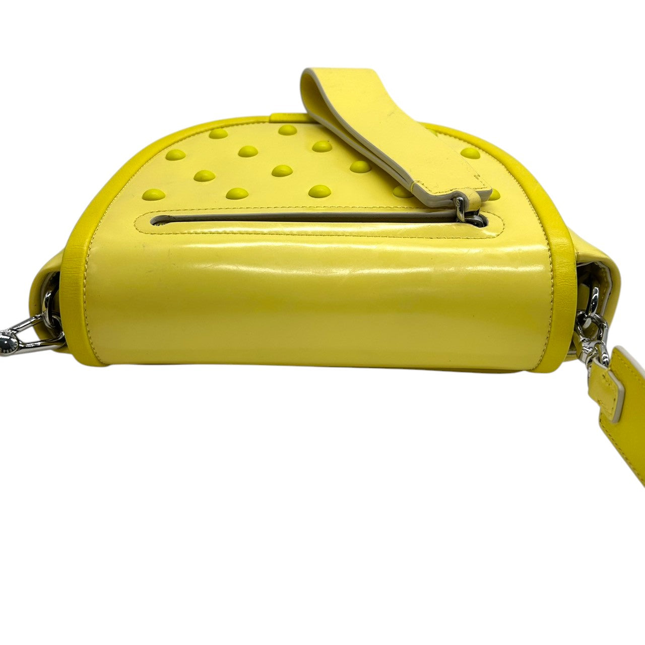マークバイマークジェイコブス ショルダーバッグ ポシェット クロスボディ 斜め掛け可 サドル フラップ スタッズ エナメル パテントレザー イエロー シルバー金具 レディース コンパクト ポップ カジュアル フェミニン お出かけ デート s5