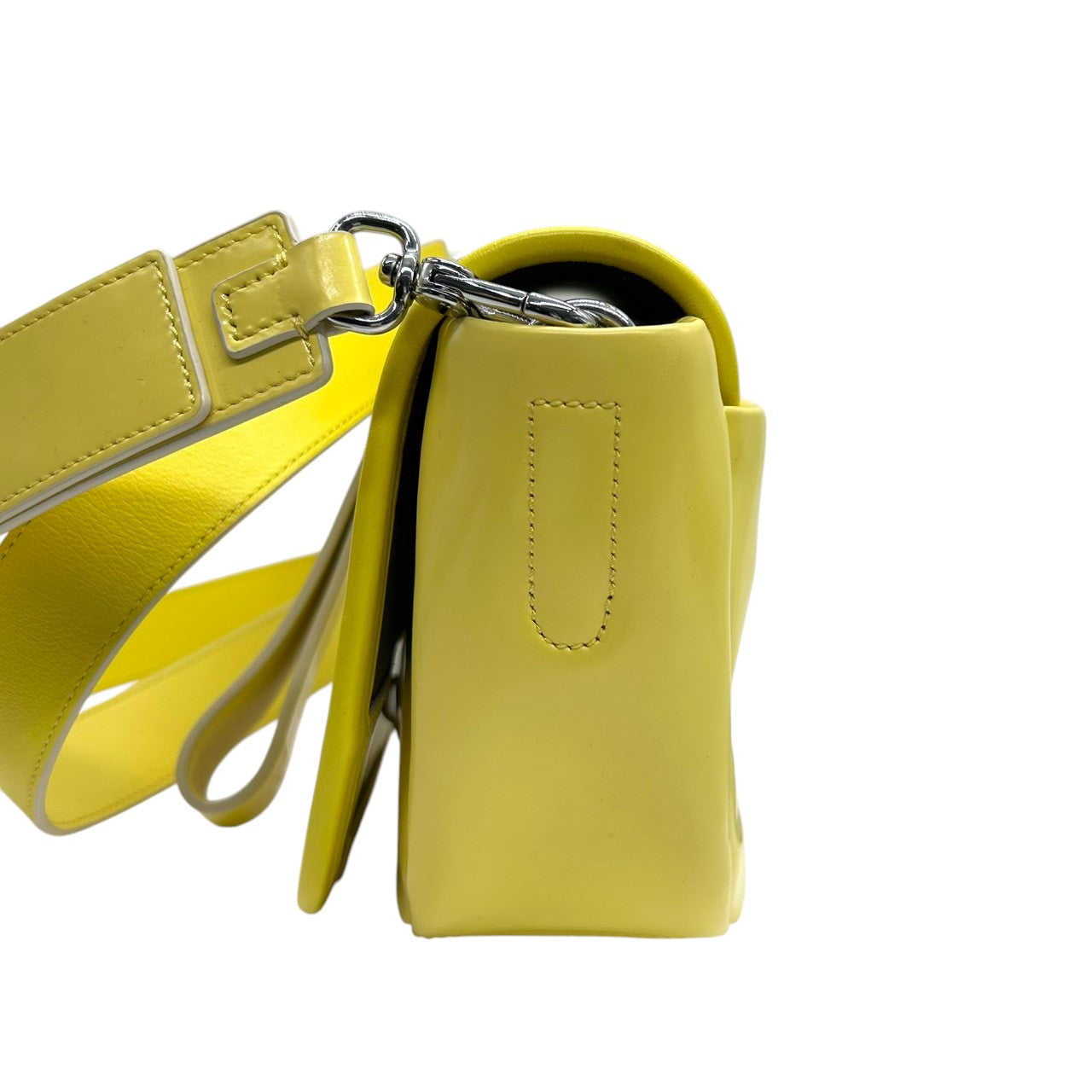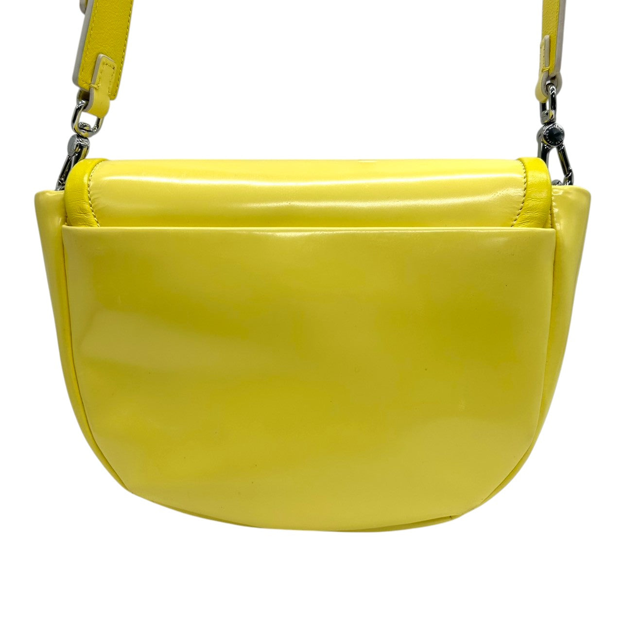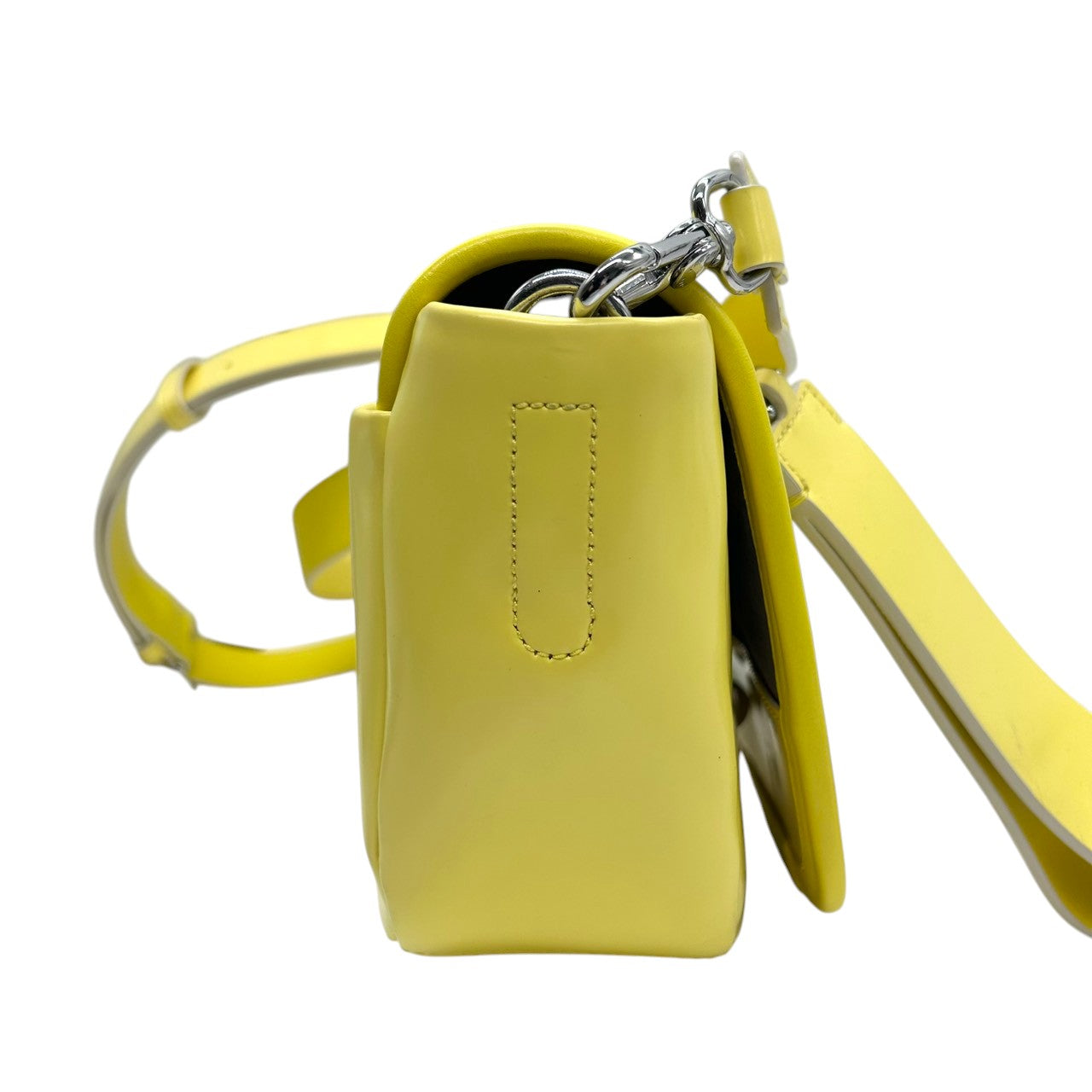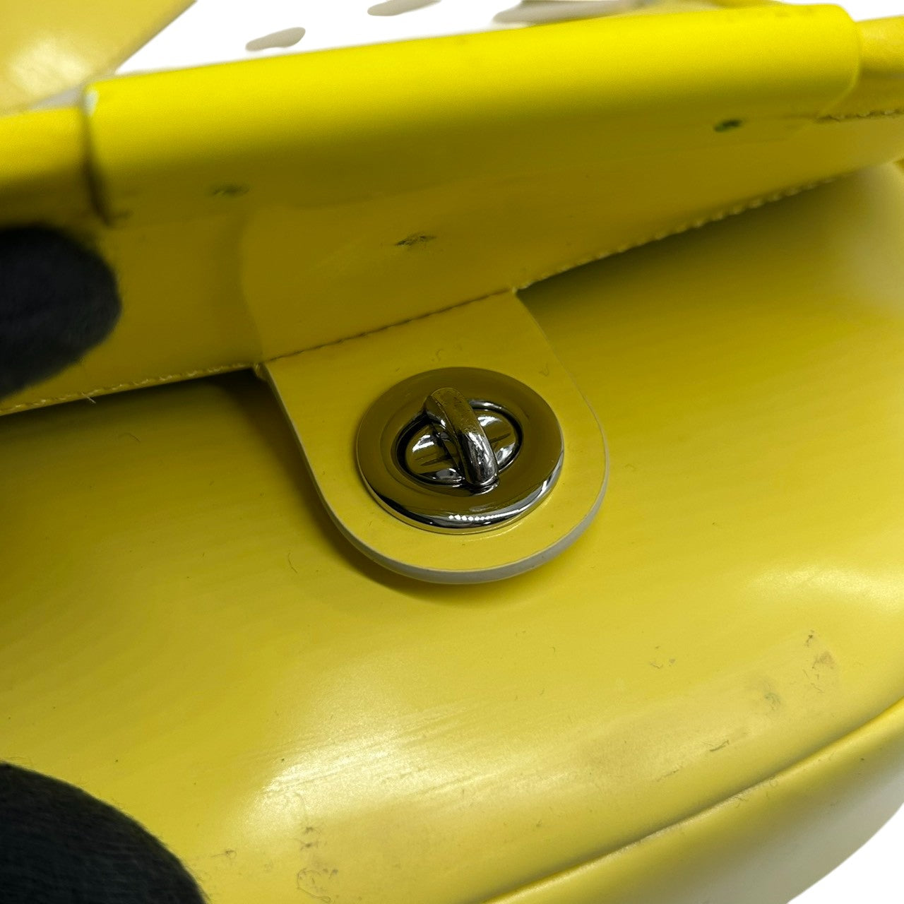 マークバイマークジェイコブス ショルダーバッグ ポシェット クロスボディ 斜め掛け可 サドル フラップ スタッズ エナメル パテントレザー イエロー シルバー金具 レディース コンパクト ポップ カジュアル フェミニン お出かけ デート s5